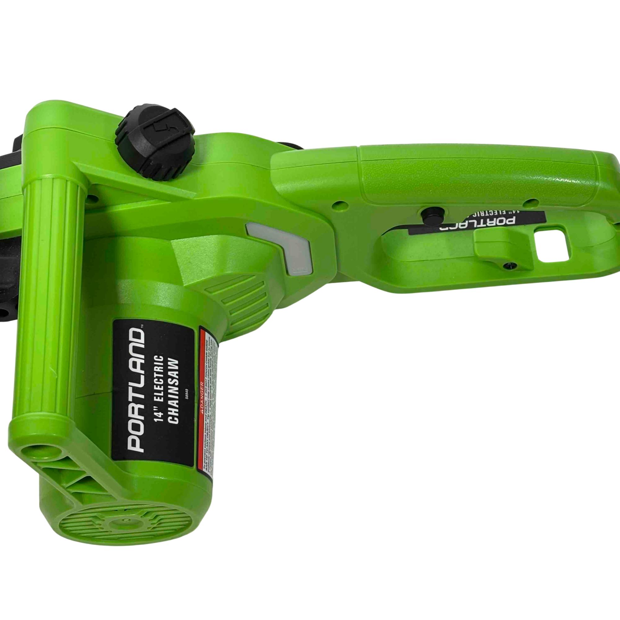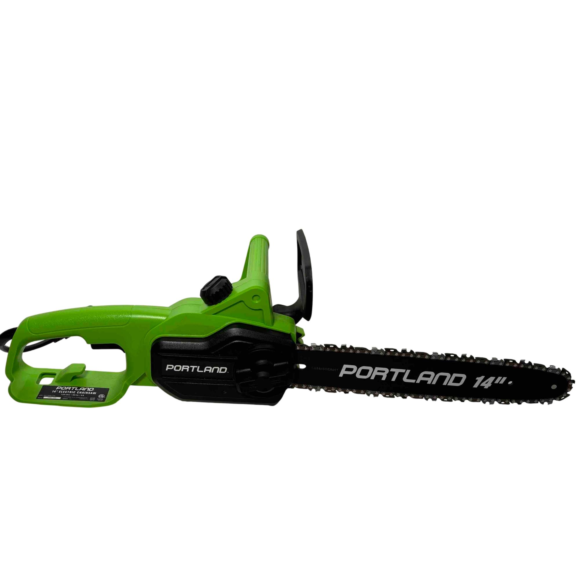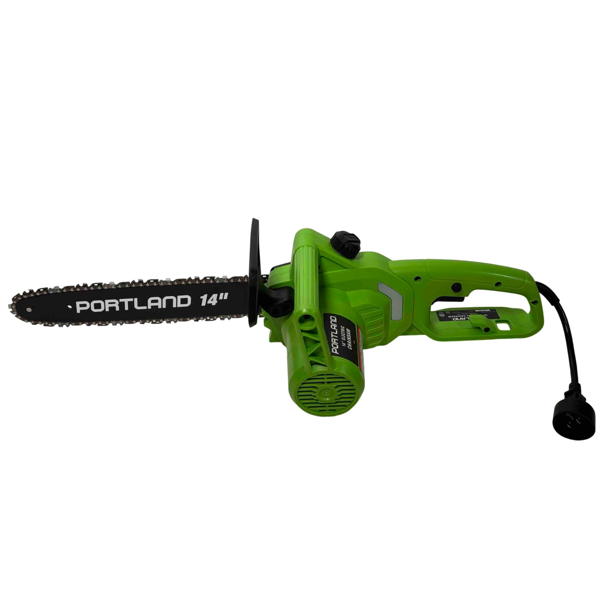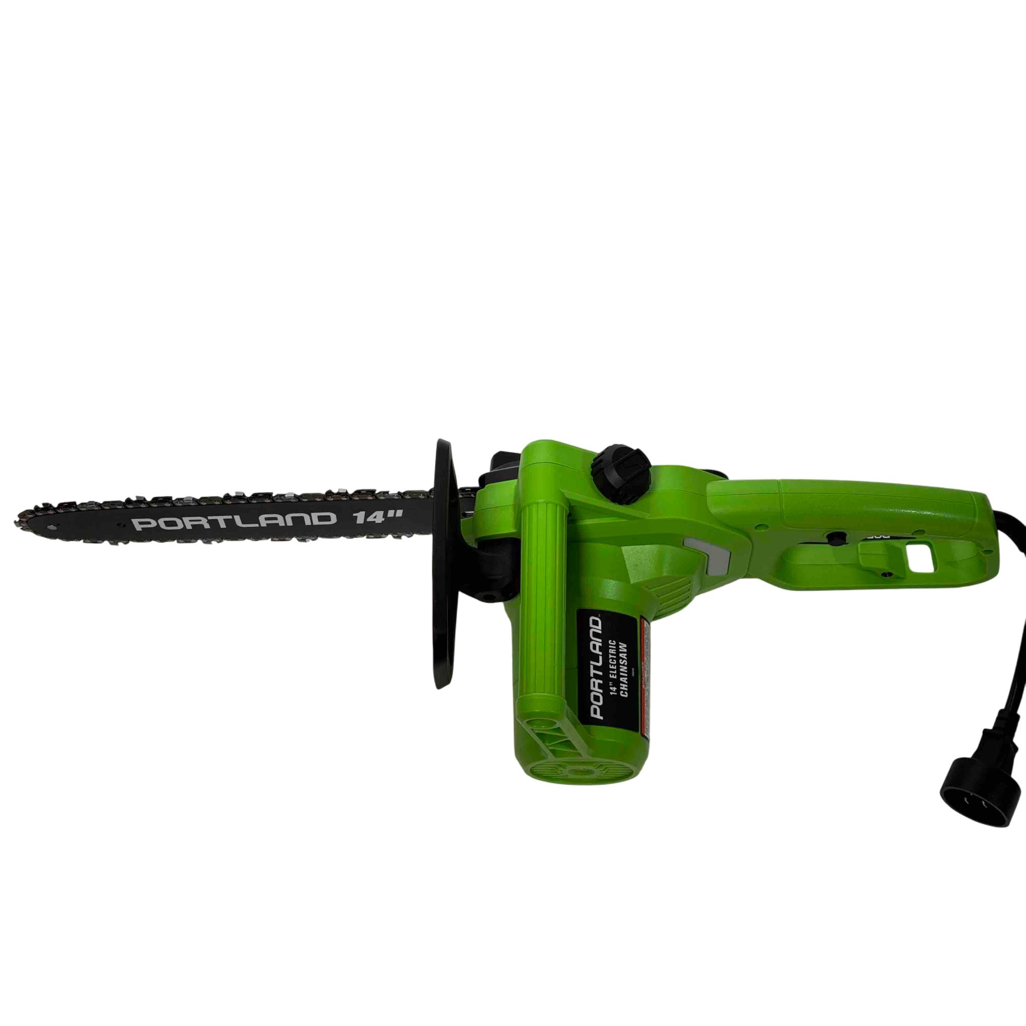 Unleash the power of precision cutting with the Portland 14" Electric Chainsaw, Model 58949. Designed with safety in mind, this robust chainsaw features a vibrant green and black design that stands out while delivering reliable performance for all your cutting needs. Whether youre tackling big jobs or small, this electric chainsaw ensures efficient and safe operation every time.