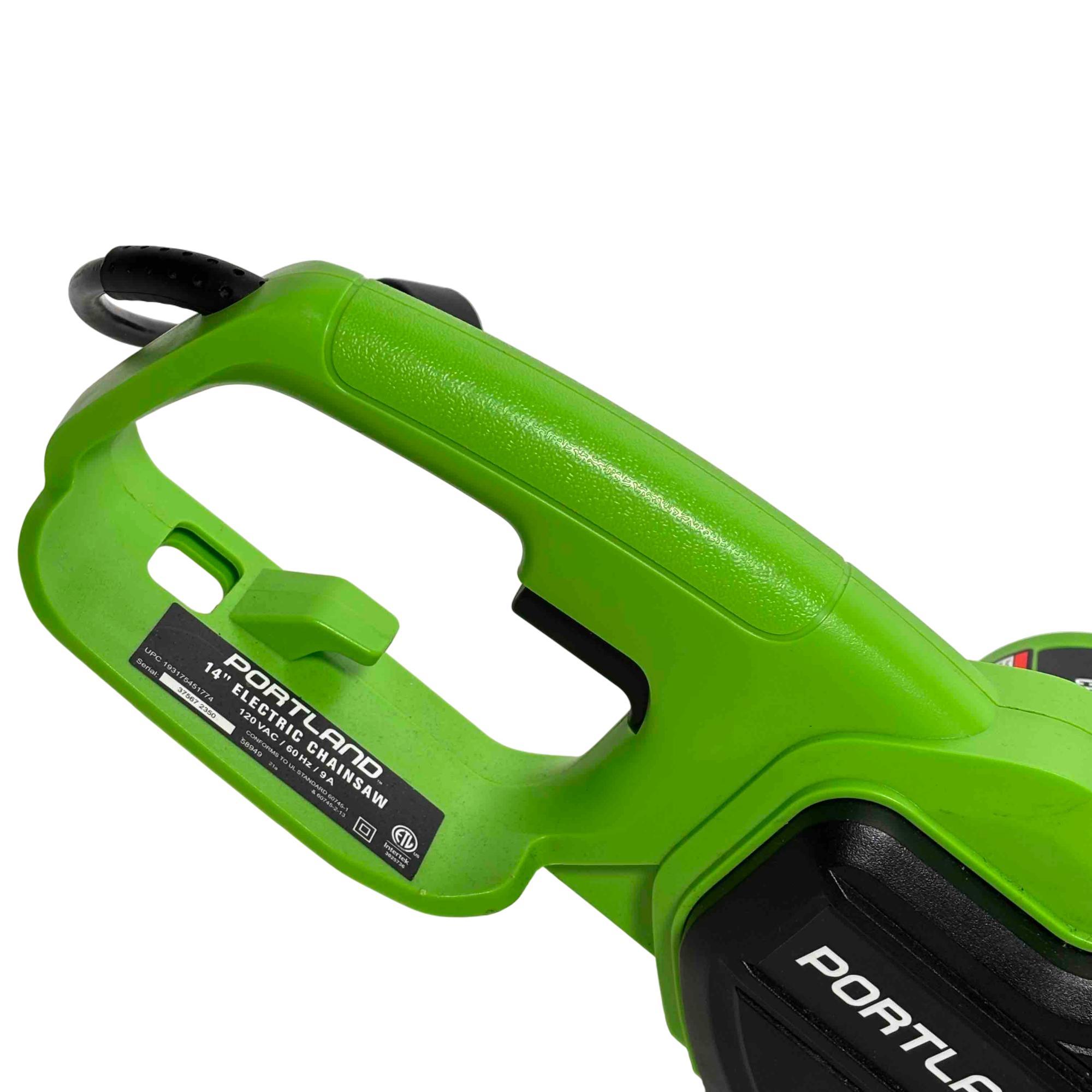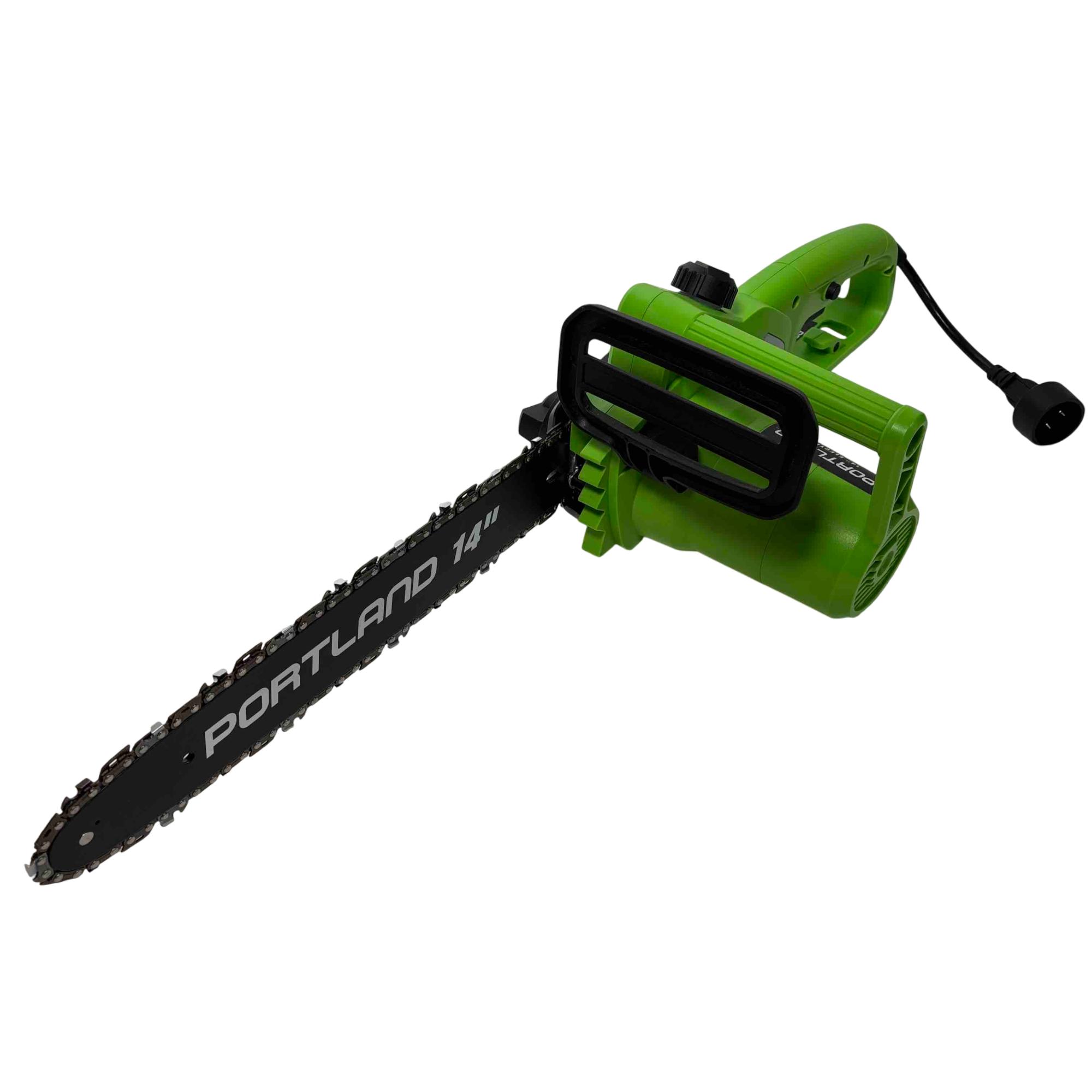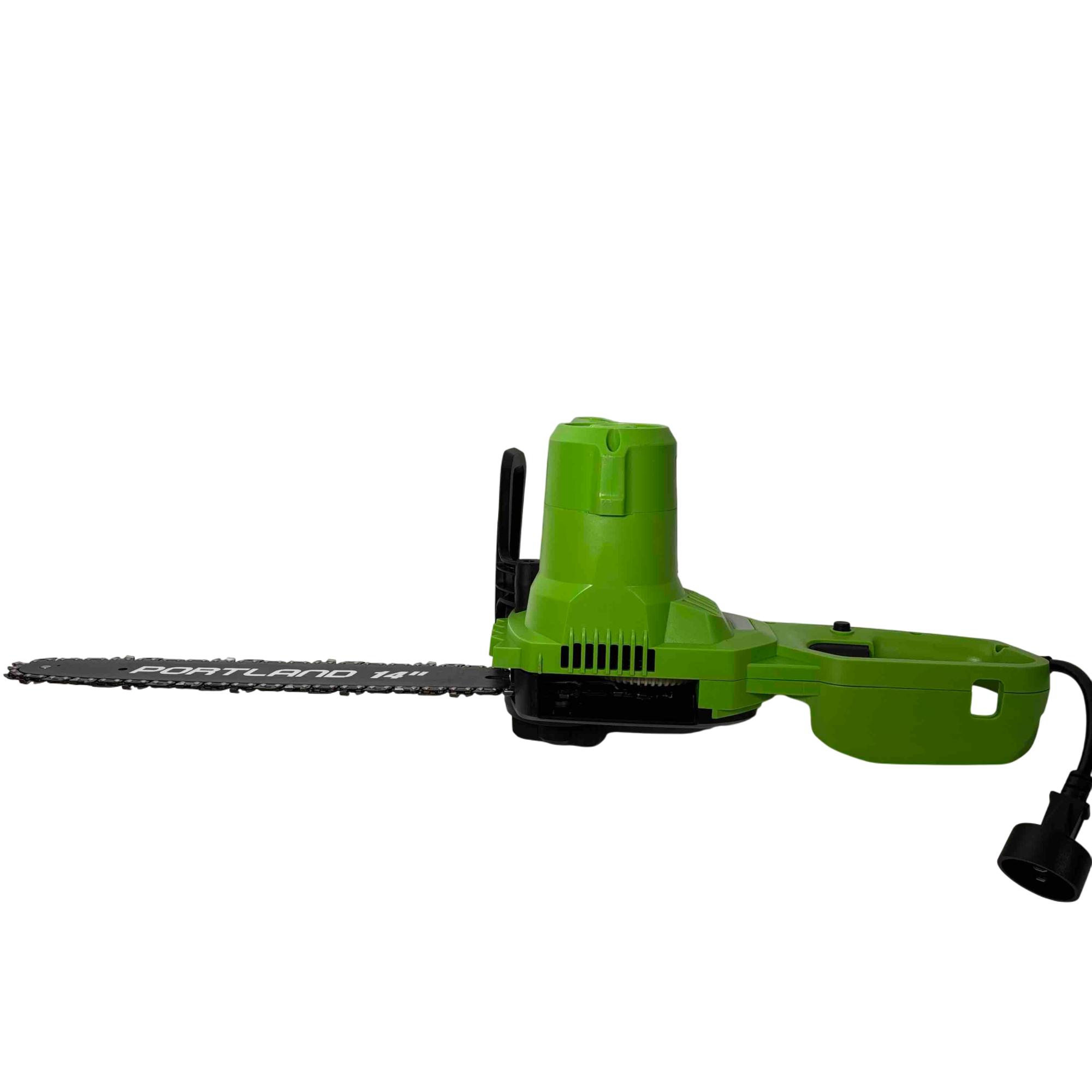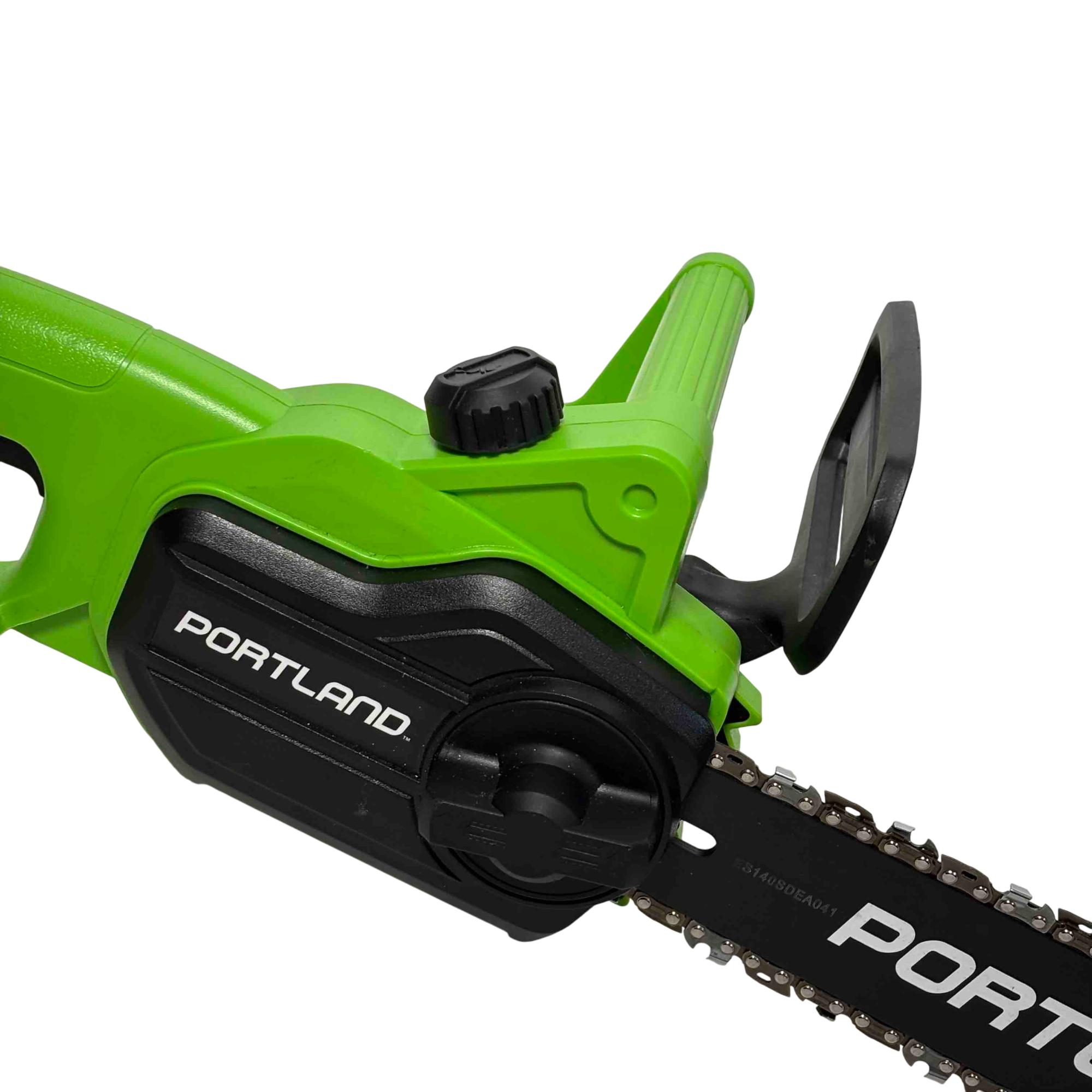 Unleash the power of precision cutting with the Portland 14" Electric Chainsaw, Model 58949. Designed with safety in mind, this robust chainsaw features a vibrant green and black design that stands out while delivering reliable performance for all your cutting needs. Whether youre tackling big jobs or small, this electric chainsaw ensures efficient and safe operation every time.