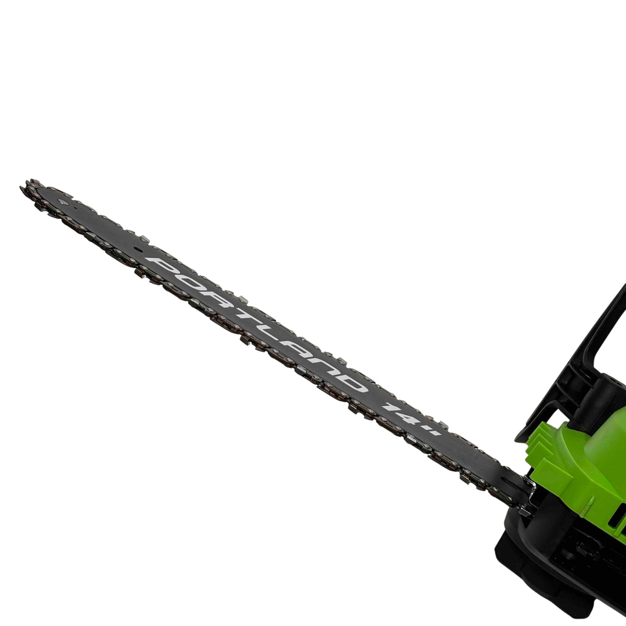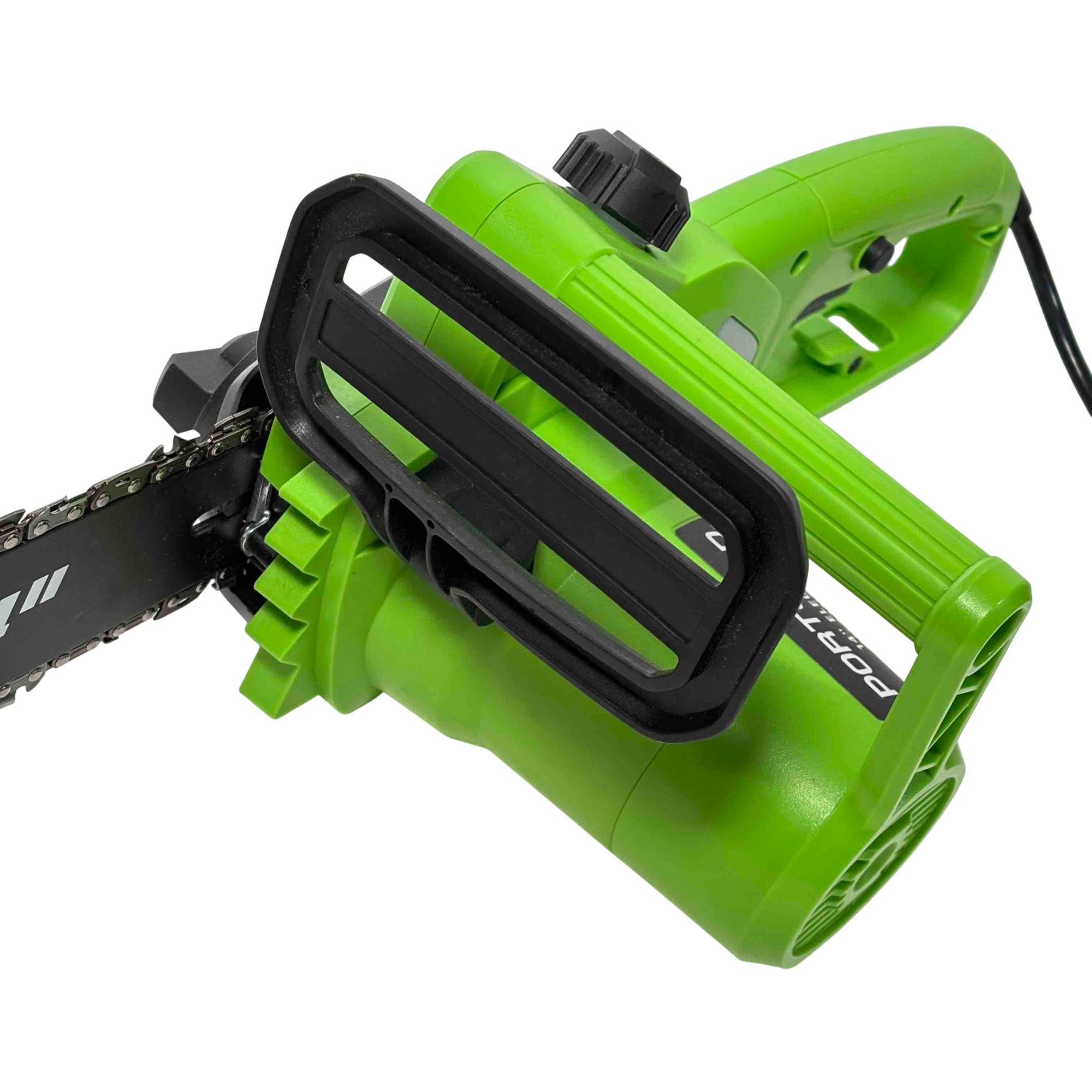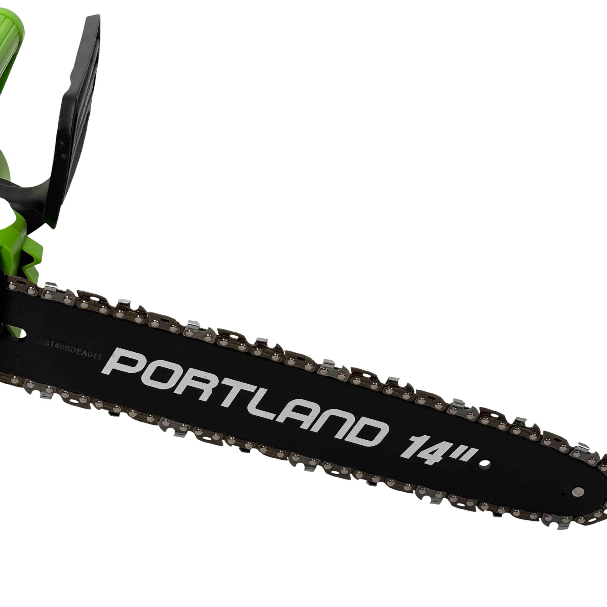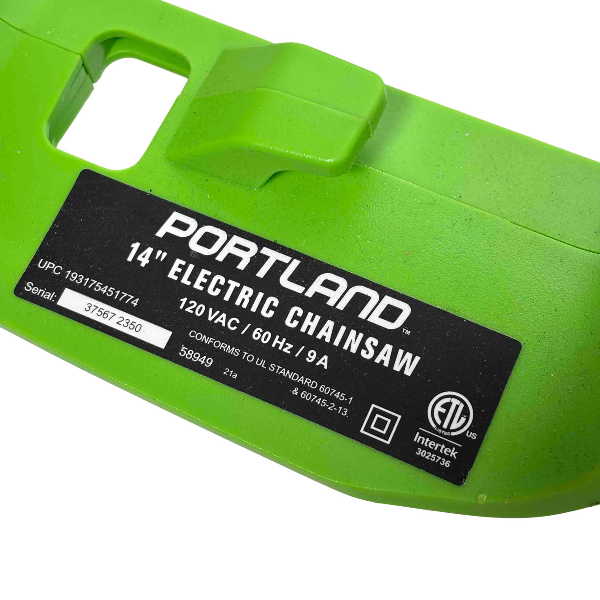 Unleash the power of precision cutting with the Portland 14" Electric Chainsaw, Model 58949. Designed with safety in mind, this robust chainsaw features a vibrant green and black design that stands out while delivering reliable performance for all your cutting needs. Whether youre tackling big jobs or small, this electric chainsaw ensures efficient and safe operation every time.