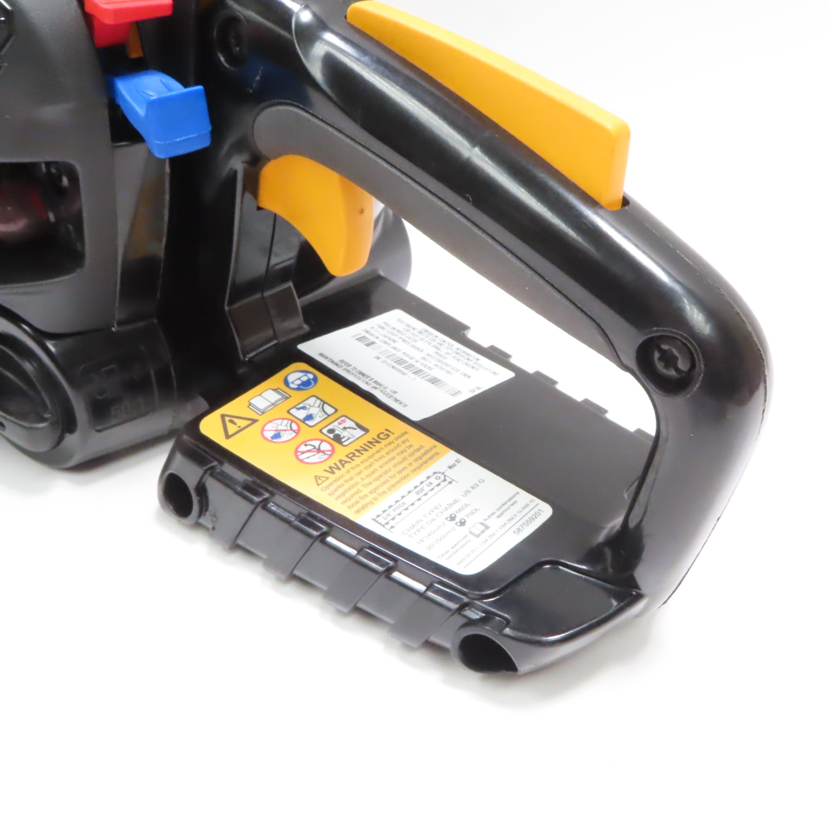 Chainsaw has been previously owned and used, and shows some signs of usage and cosmetic wear. There are some small markings along the handle and the main unit of the chainsaw, while the bar has some scratches and other scuffs from usage. Tested in working condition, refer to the pictures for more details.