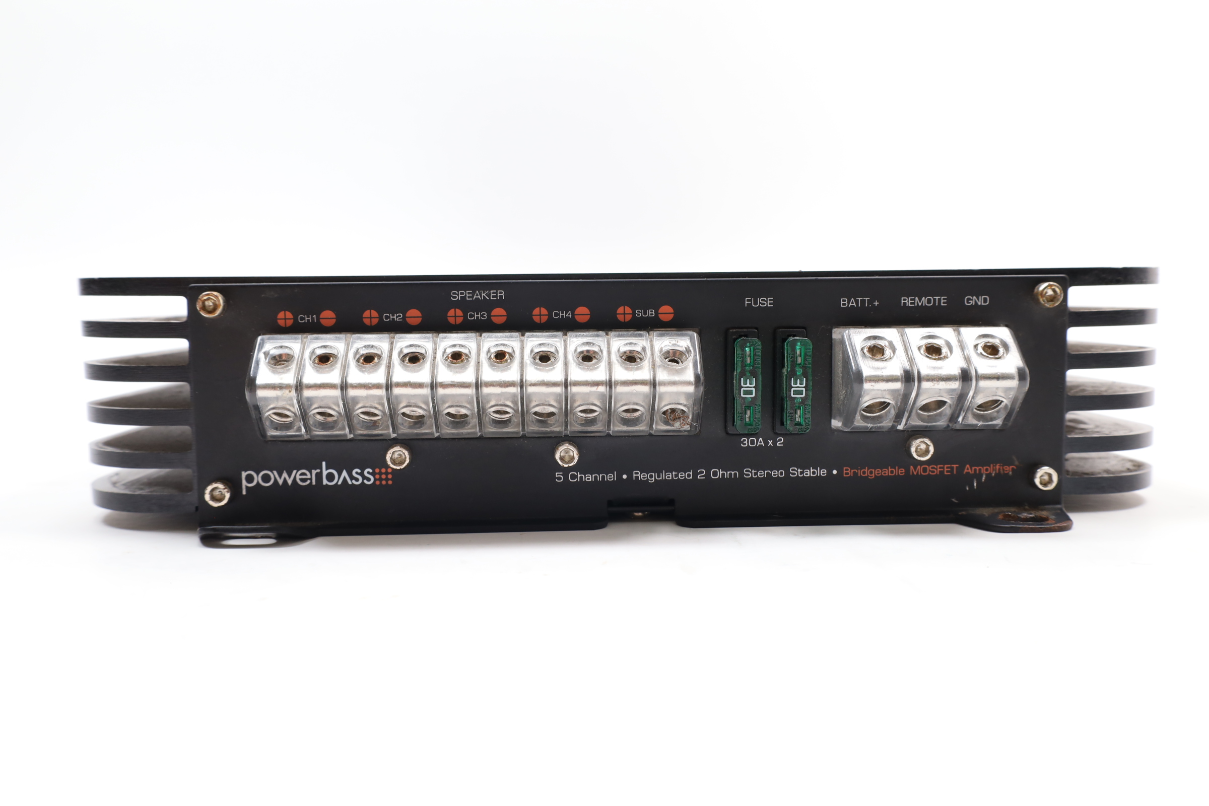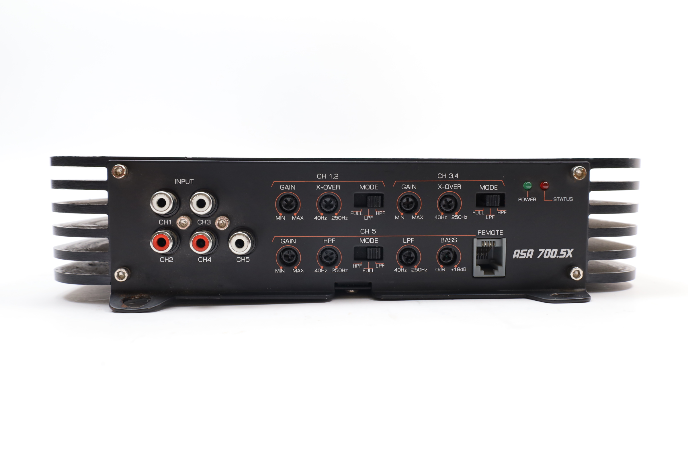 Designed for serious audiophiles, offering a range of features typically found in high-end models. It has a sleek, brushed satin black finish with clean lines and rounded edges. This amplifier provides variable 12 dB high/low pass electronic crossover for versatile system applications and a MOSFET power supply for efficient, distortion-free sound. It is 2-ohm stereo and 4-ohm mono stable, delivering 4 x 50 watts + 200 x 1 at 4 ohms and up to 1400 watts peak power. User-friendly features include a variable bass boost control with 18 dB boost at 40 Hz and an optional remote gain control. The ASA 700.5X maintains a low total harmonic distortion of under 0.05%, a frequency response of 20 Hz to 22,000 Hz, a signal-to-noise ratio over 94 dB, and a damping factor over 150.