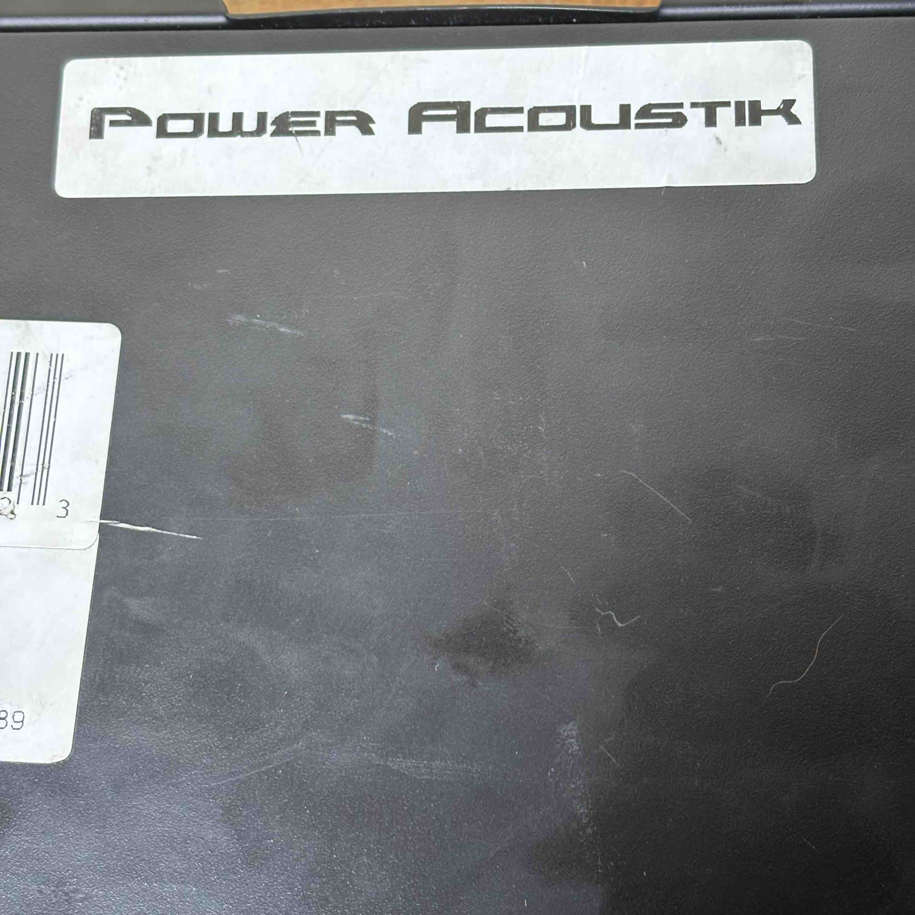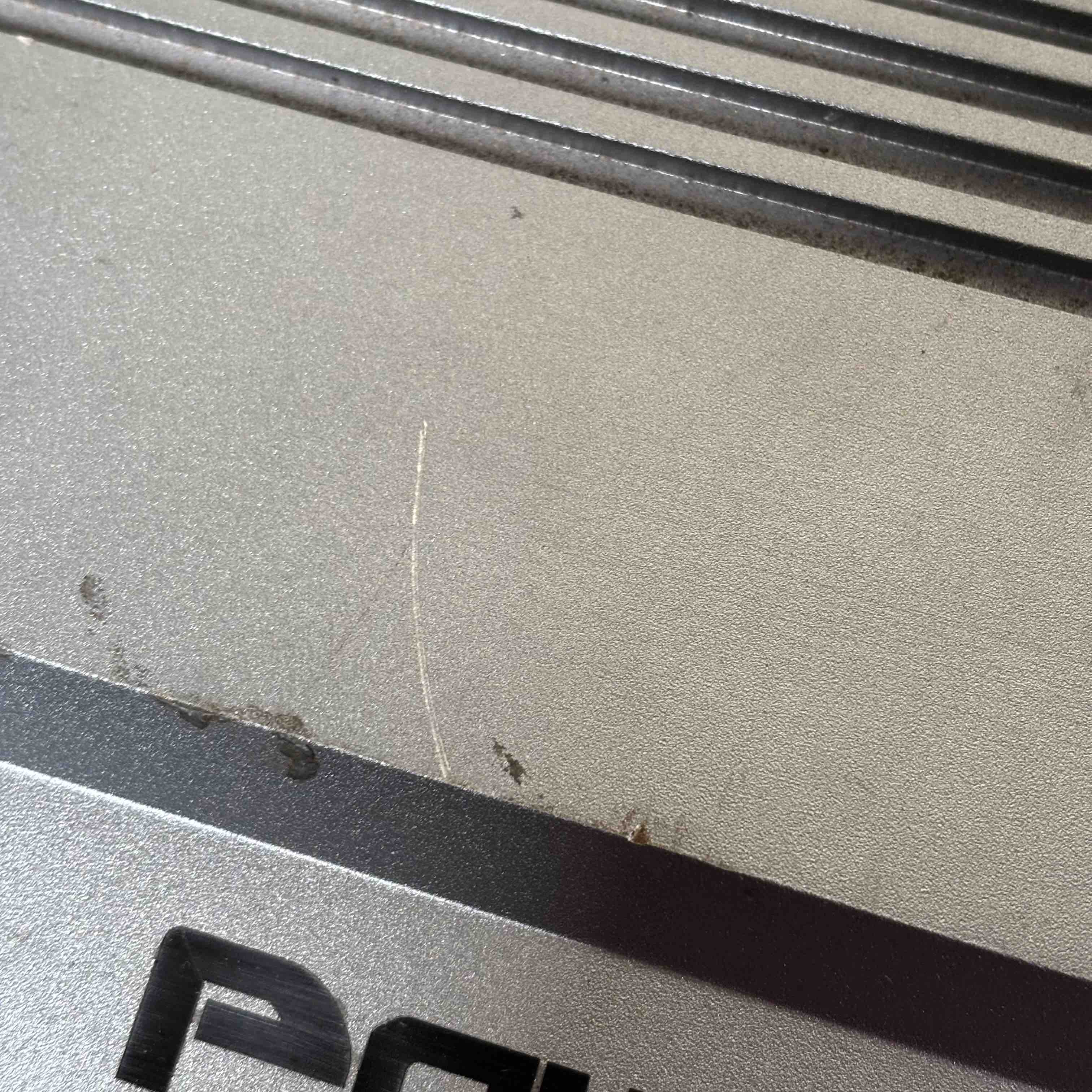 This car amplifier was previously owned and shows signs of normal use. It is in fair condition. It has been tested and works. There is a foamy residue on the bottom corner of the amp. There are also lines and scratches above the residue. There is sticker residue below the word overdrive. There are deep scratches on the top half of the top of it.