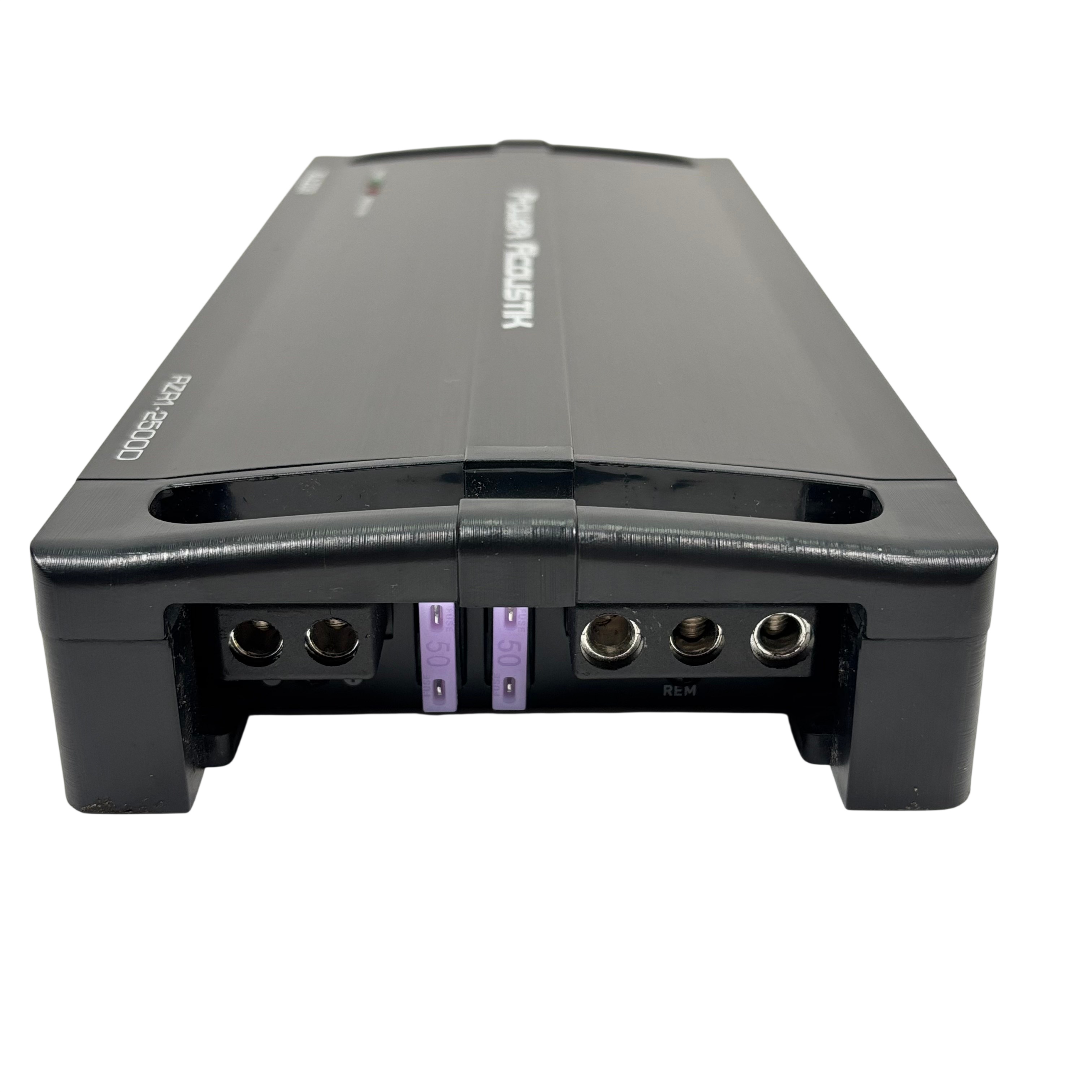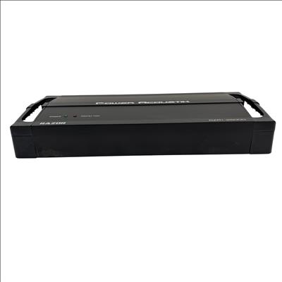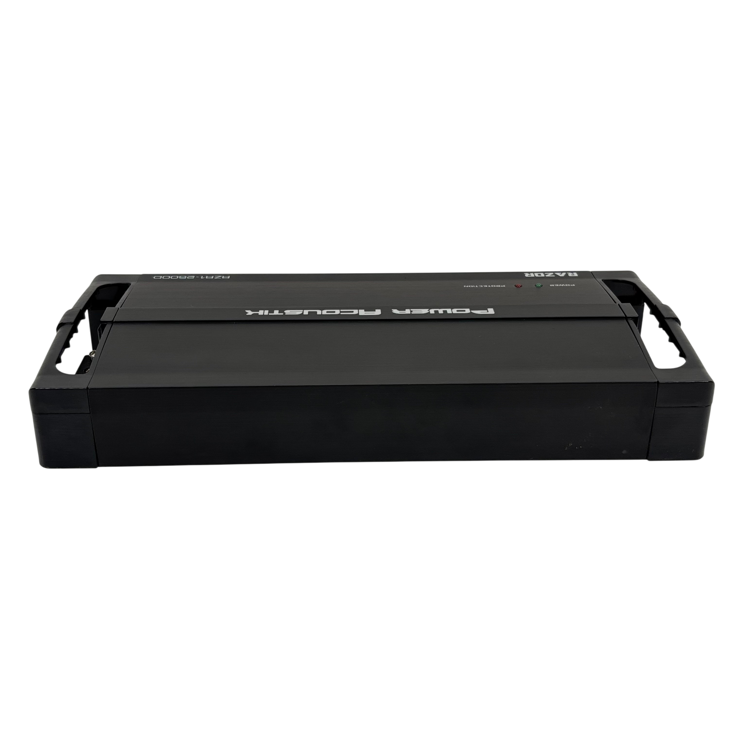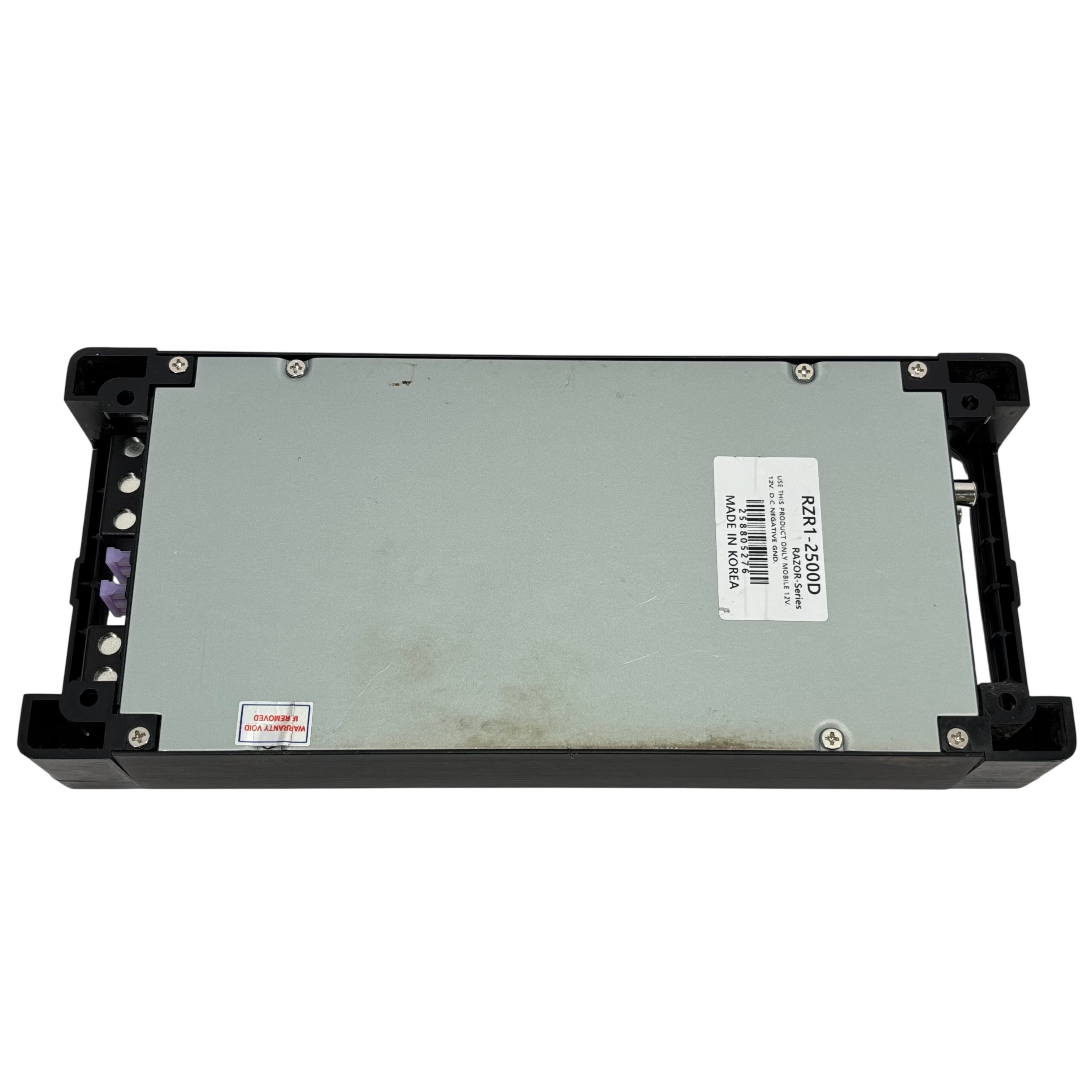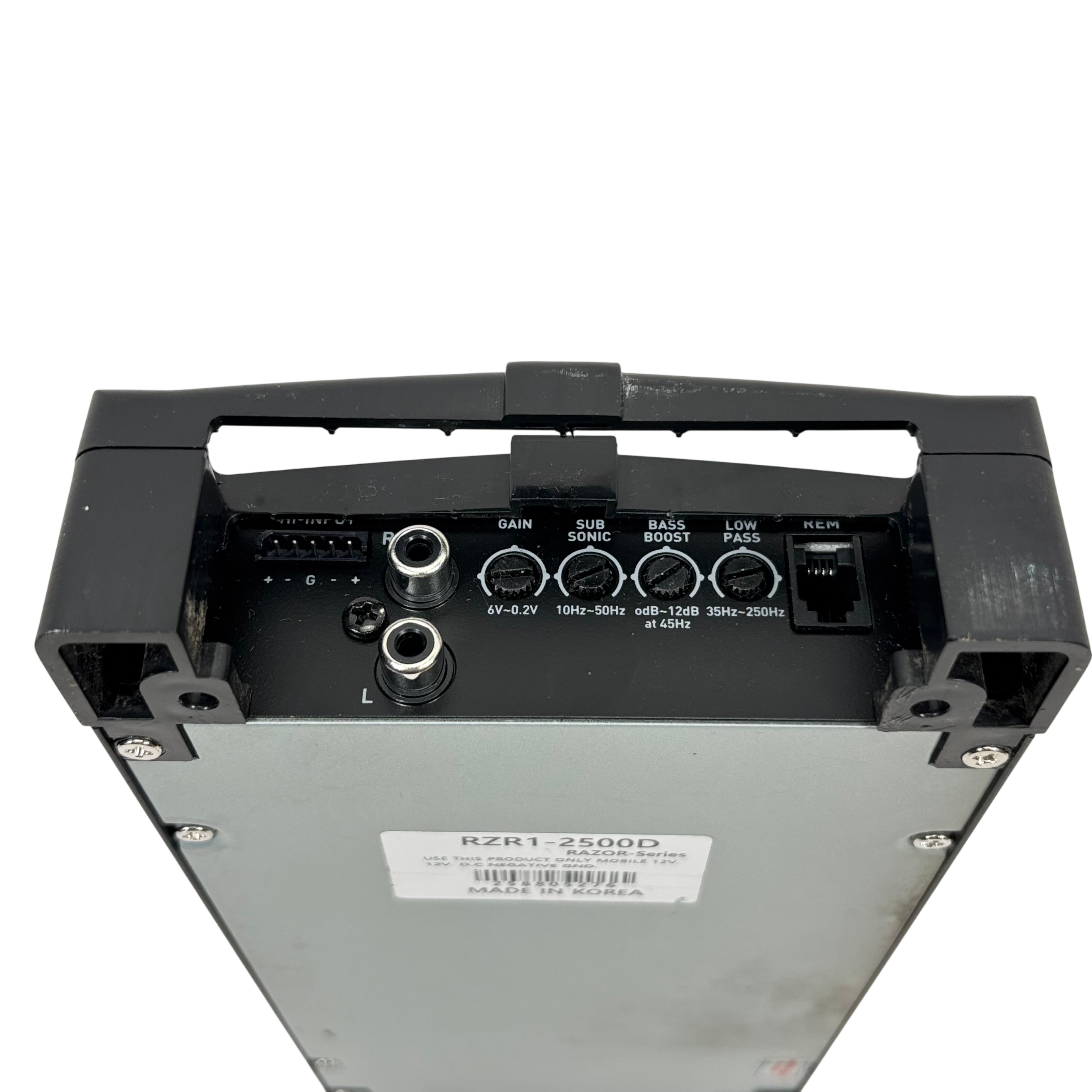 Power Acoustik Razor RZR1-2500D car audio amplifier is designed for 12V mobile use, delivering powerful sound enhancement with adjustable gain, bass boost, sub sonic, and low pass filters. This amplifier features protection circuitry to ensure reliable operation and includes a remote control with cable for easy bass adjustment from the drivers seat. Its compact black metal design measures approximately 14 inches in length, 7 inches in width, and 2 inches in height, making it a versatile addition to any car audio system.
