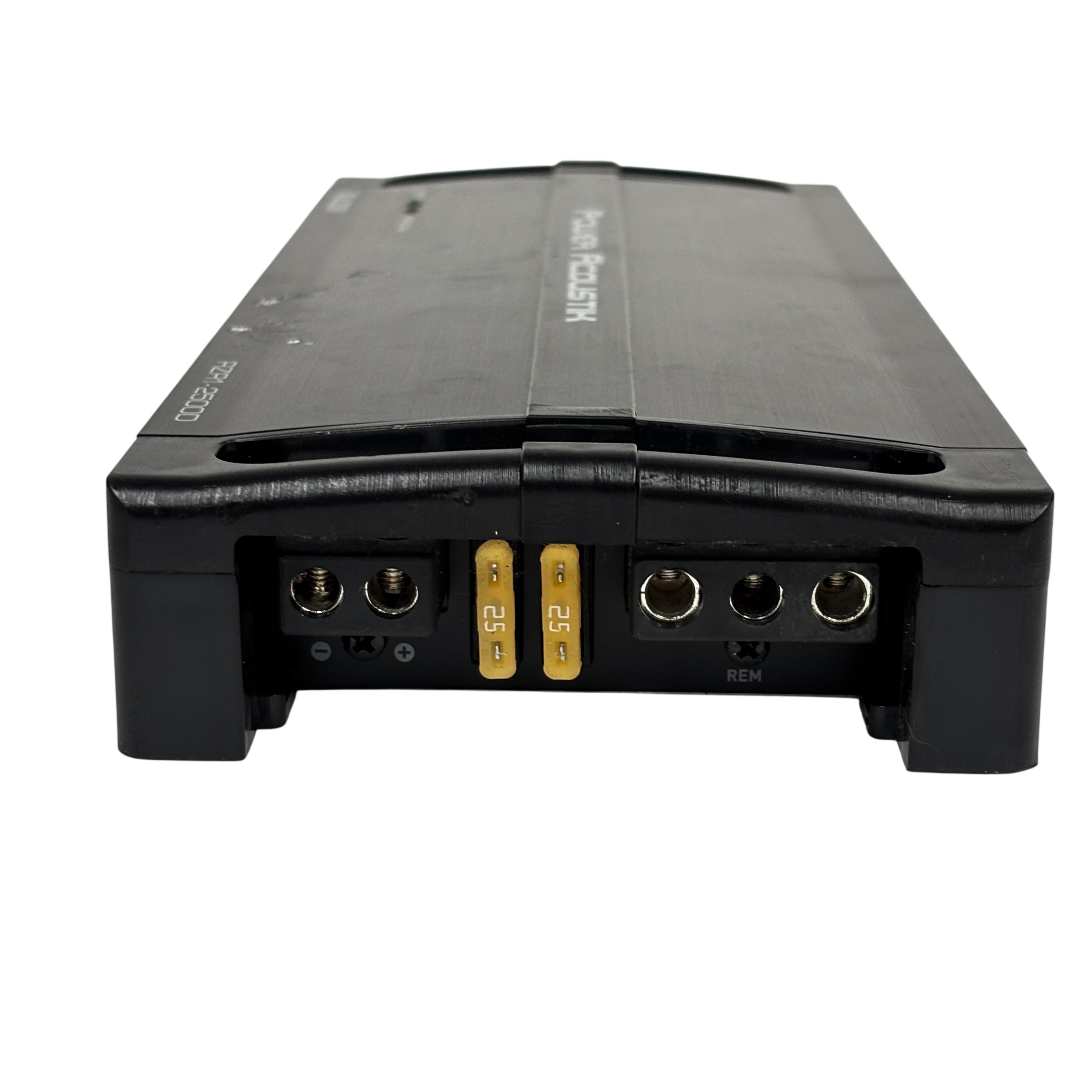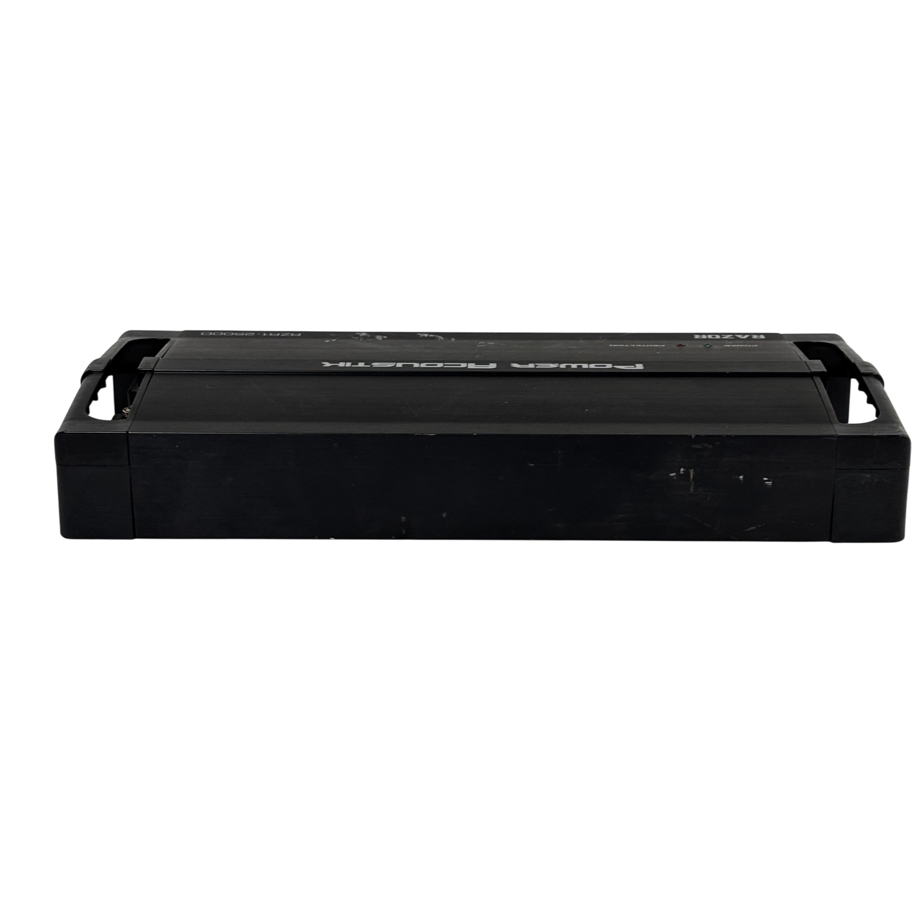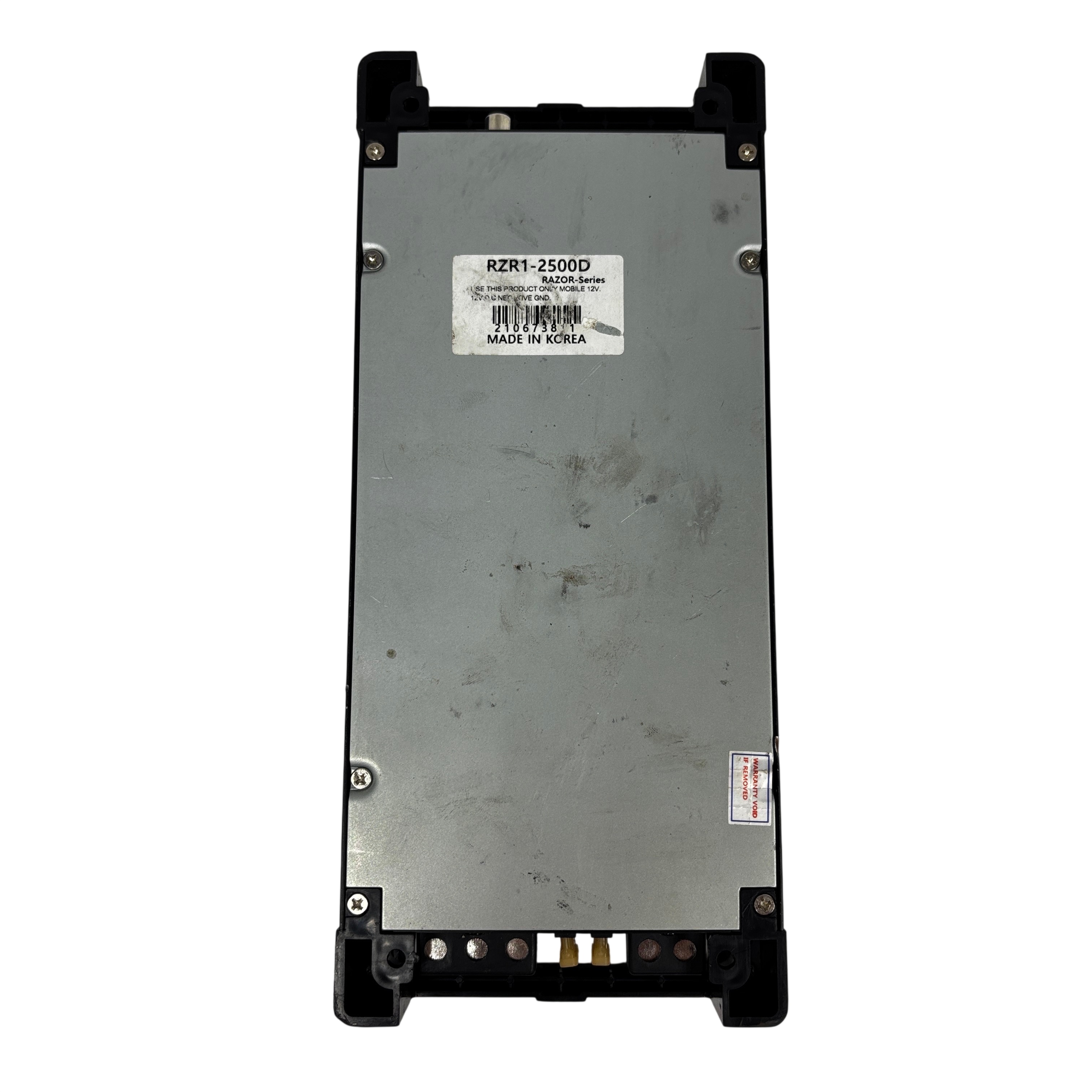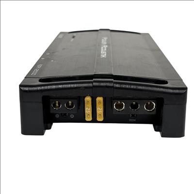 This Power Acoustik Razor RZR1-2500D Amplifier is a high-performance car audio amplifier designed to deliver powerful and clear sound. Featuring a frequency response range of 10Hz to 50Hz and adjustable gain from 0dB to 12dB, this amplifier allows fine-tuning for optimal audio output. The bass boost control covers 35Hz to 250Hz, enhancing low-frequency performance. Equipped with dual 25 Amp fuses and power/protection indicator LEDs, it ensures reliable operation and protection. Its compact black metal design measures approximately 2.00 inches in height, 6.00 inches in width, and 14.00 inches in length, weighing around 4.50 pounds, making it suitable for various car audio setups.