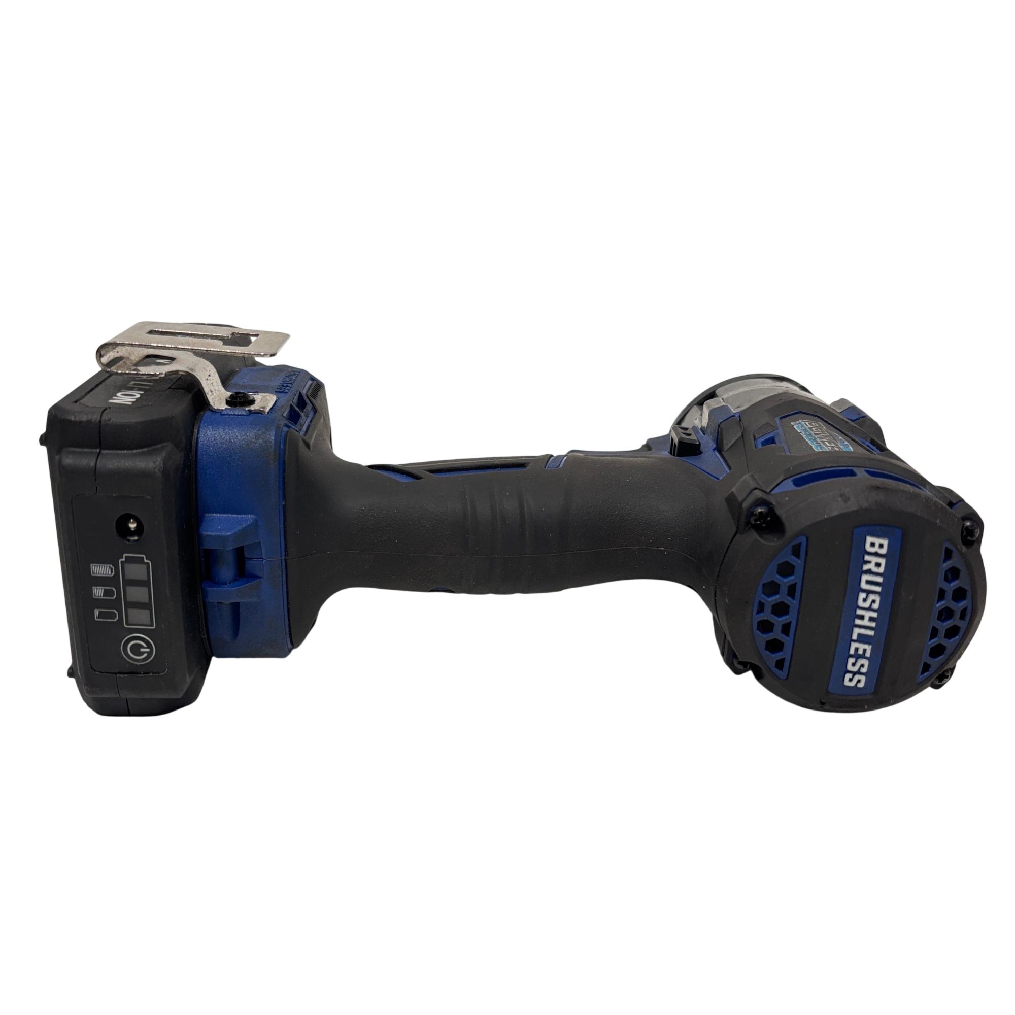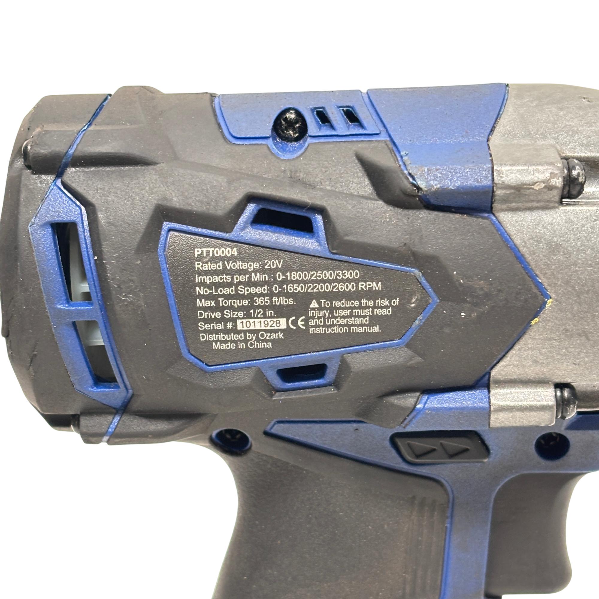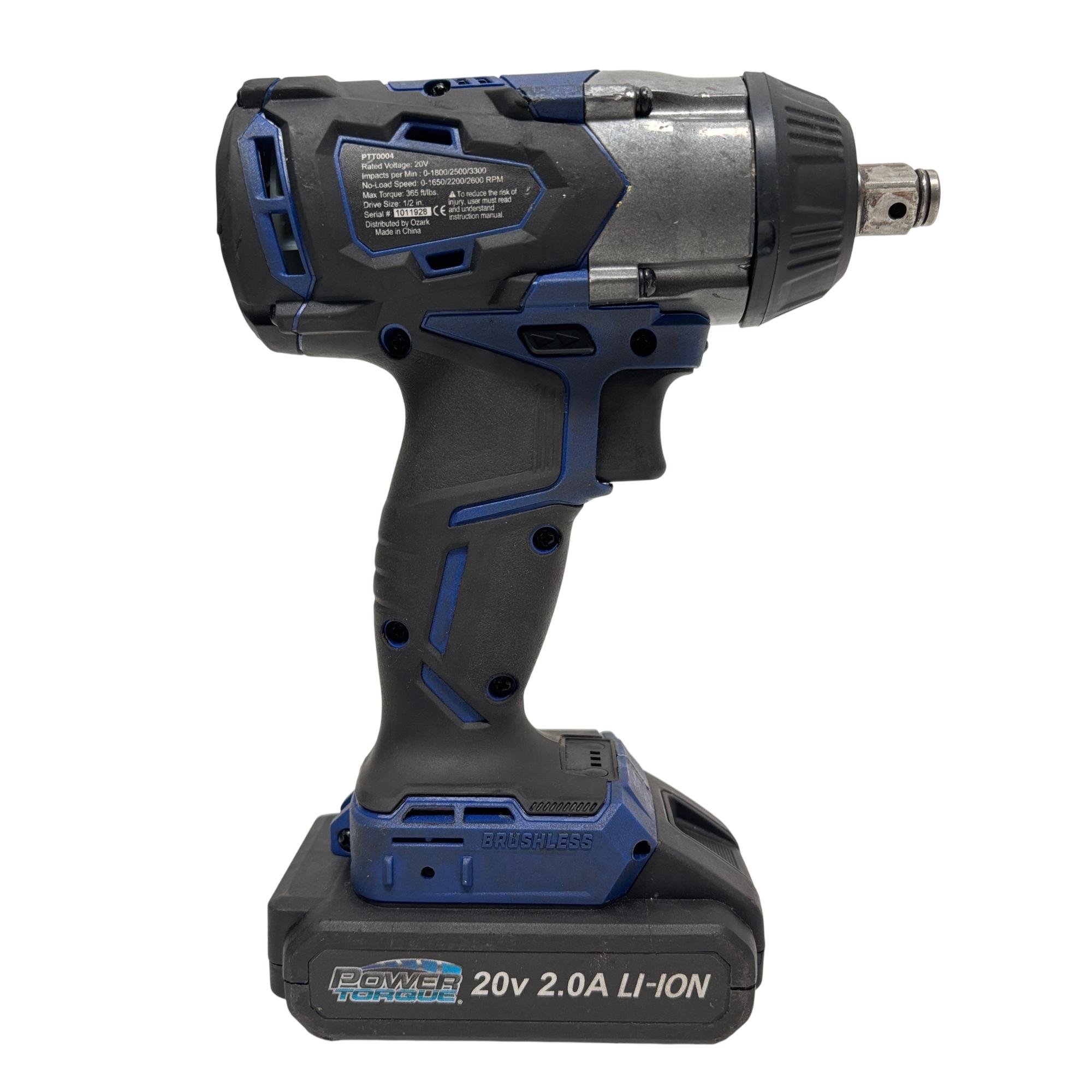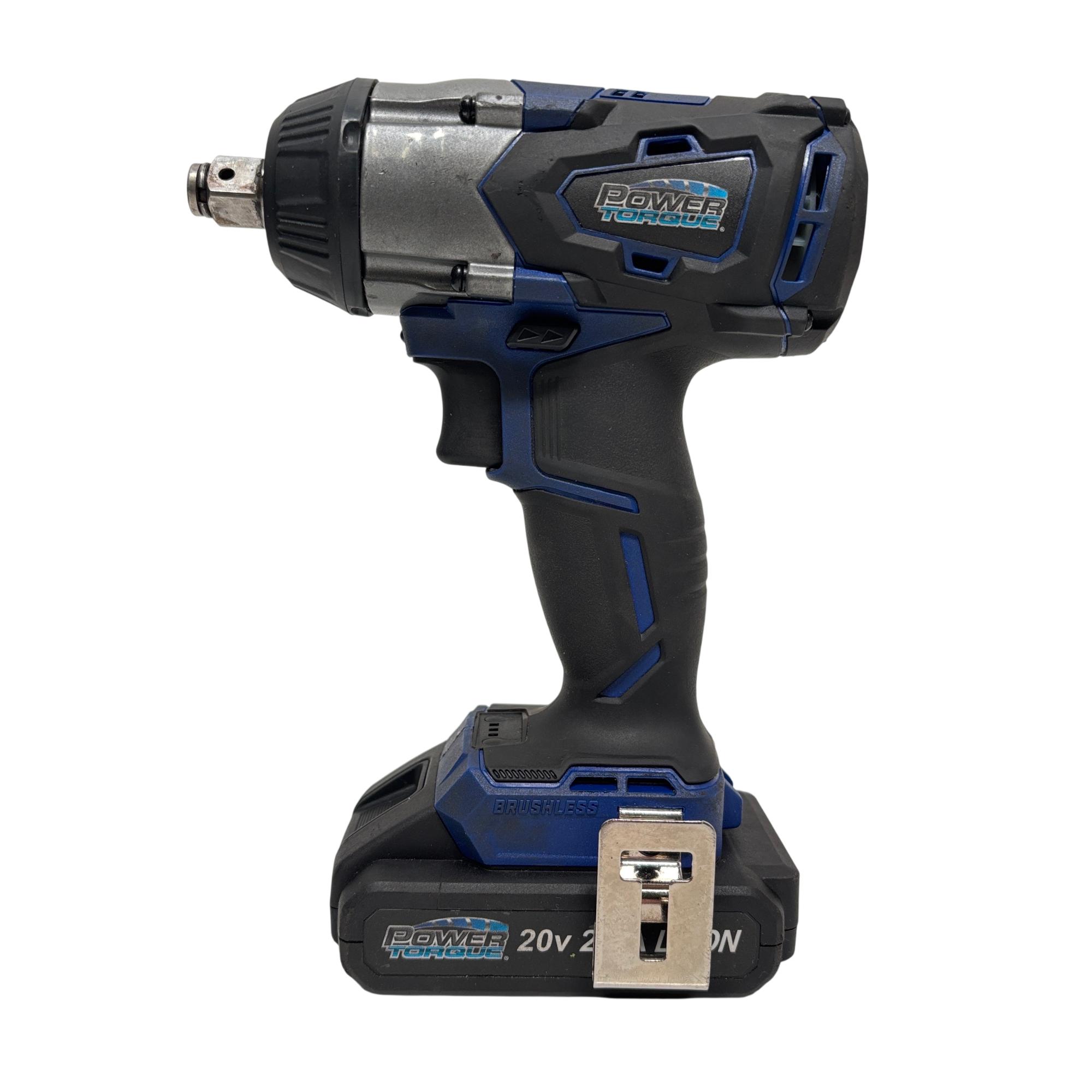 A 20V Lithium-Ion 1/2" Cordless Impact Wrench Kit designed to offer versatile and efficient performance for various vehicular applications. Equipped with a brushless motor, this tool can deliver up to 365 foot-pounds of maximum torque, making it suitable for a range of tasks. The impact wrench features three adjustable speeds, allowing users to choose from 0-1650 RPM in low, 0-2200 RPM in medium, and 0-3300 RPM in high, catering to different requirements. Additionally, it incorporates a unique auto brake mechanism that helps prevent reverse motion and eliminates bolt stripping, ensuring a smoother operation.