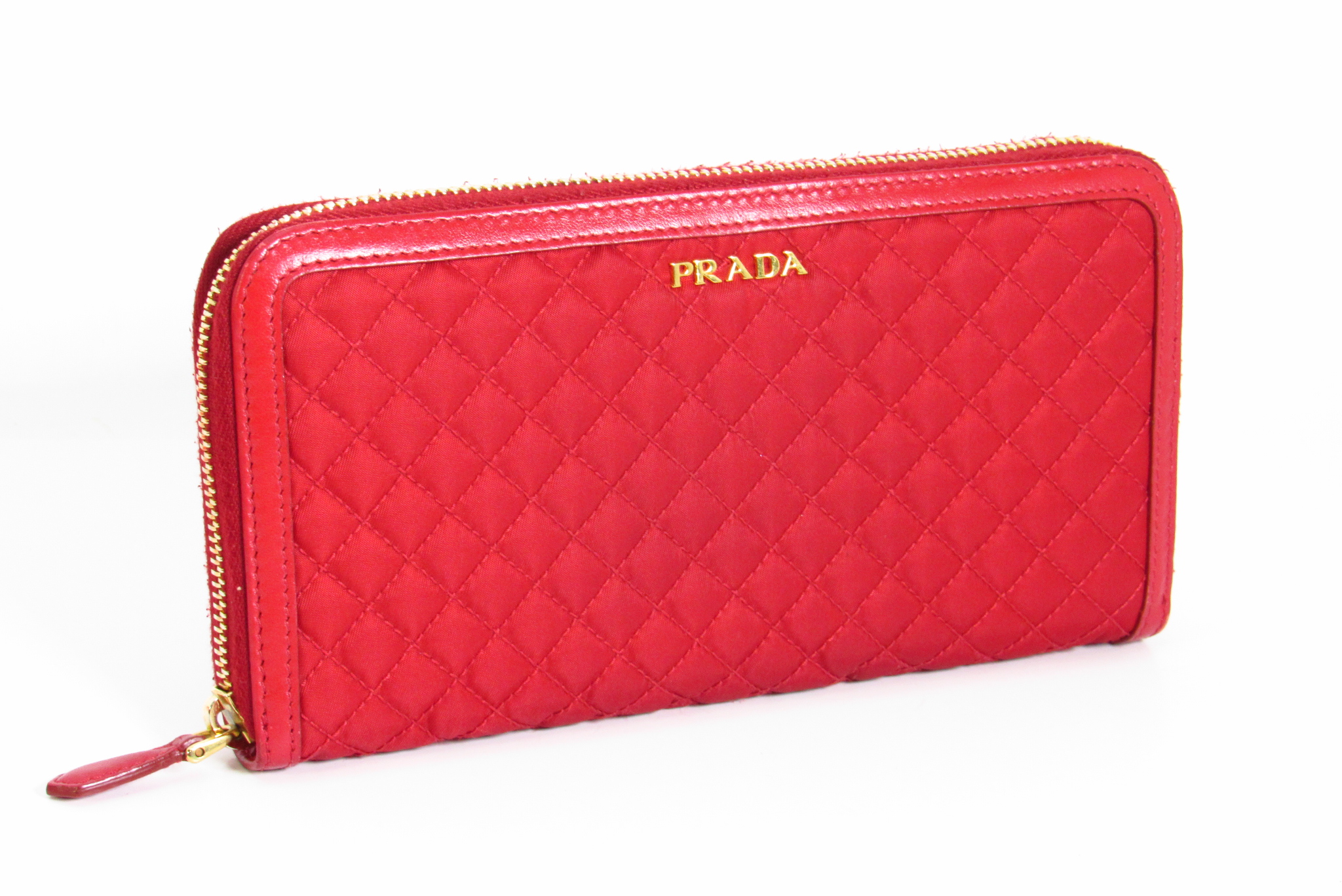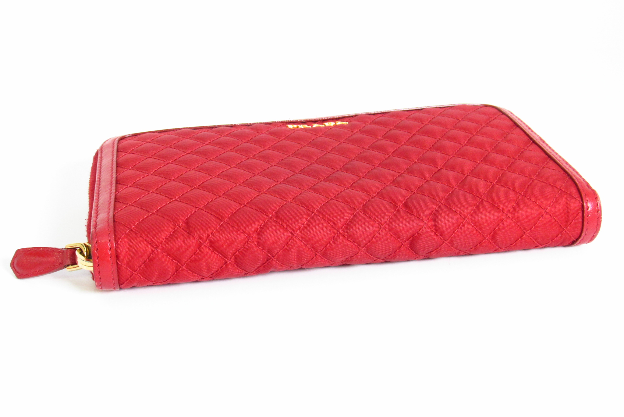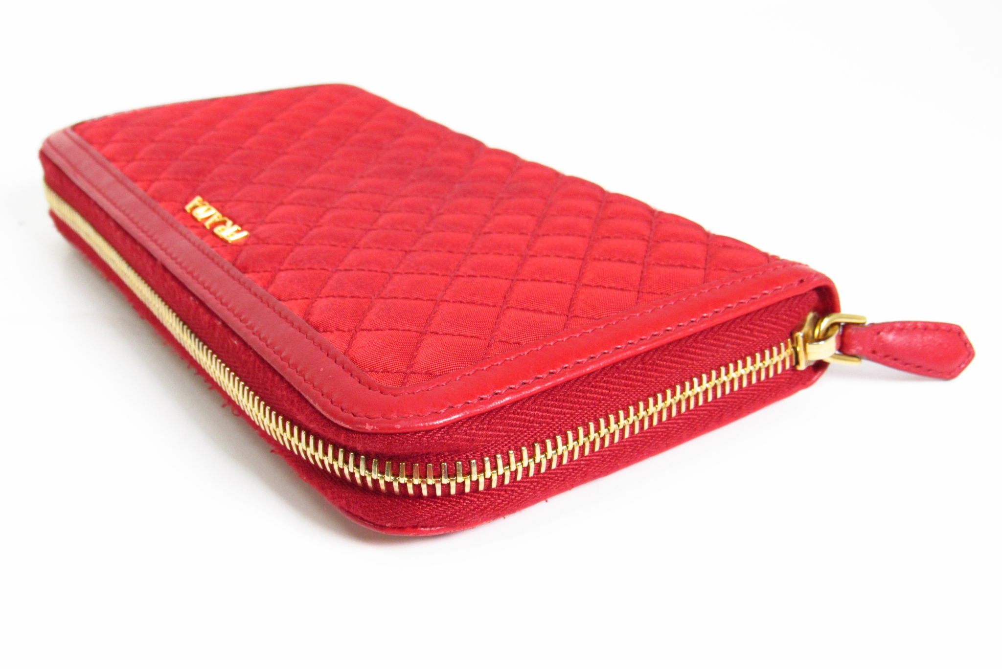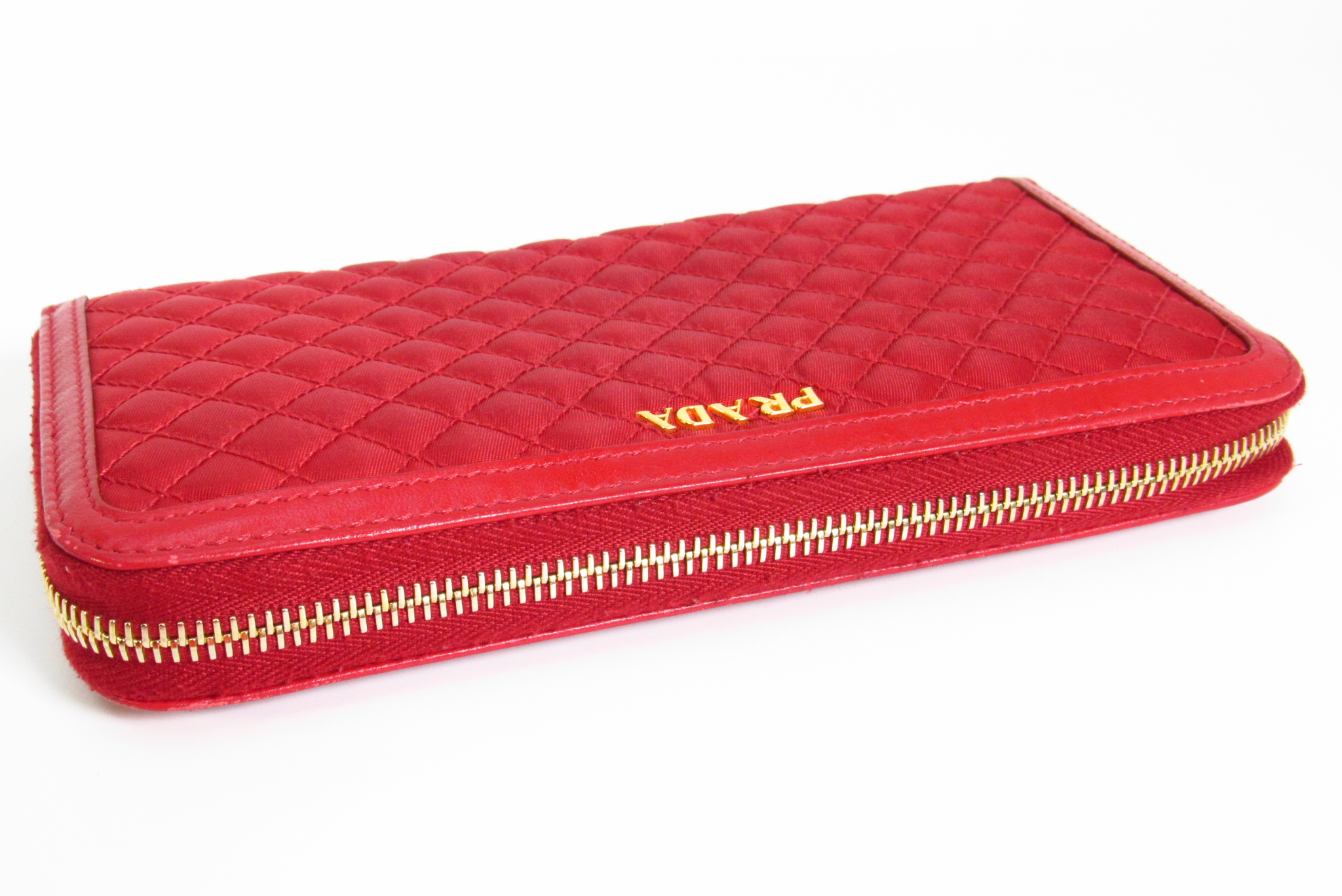 Prada Milano Quilted Zip Around Wallet - Red - Entrupy Authenticated