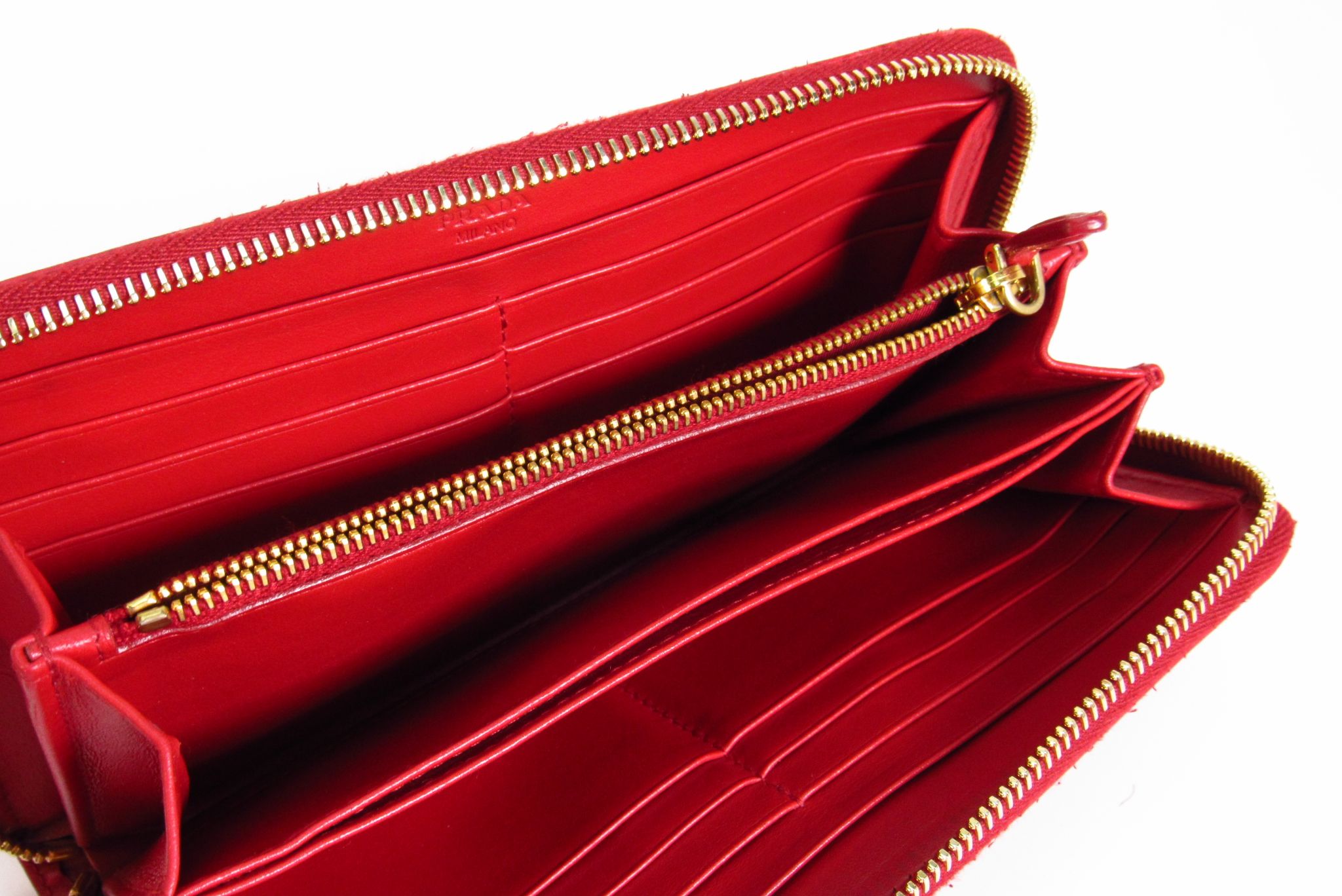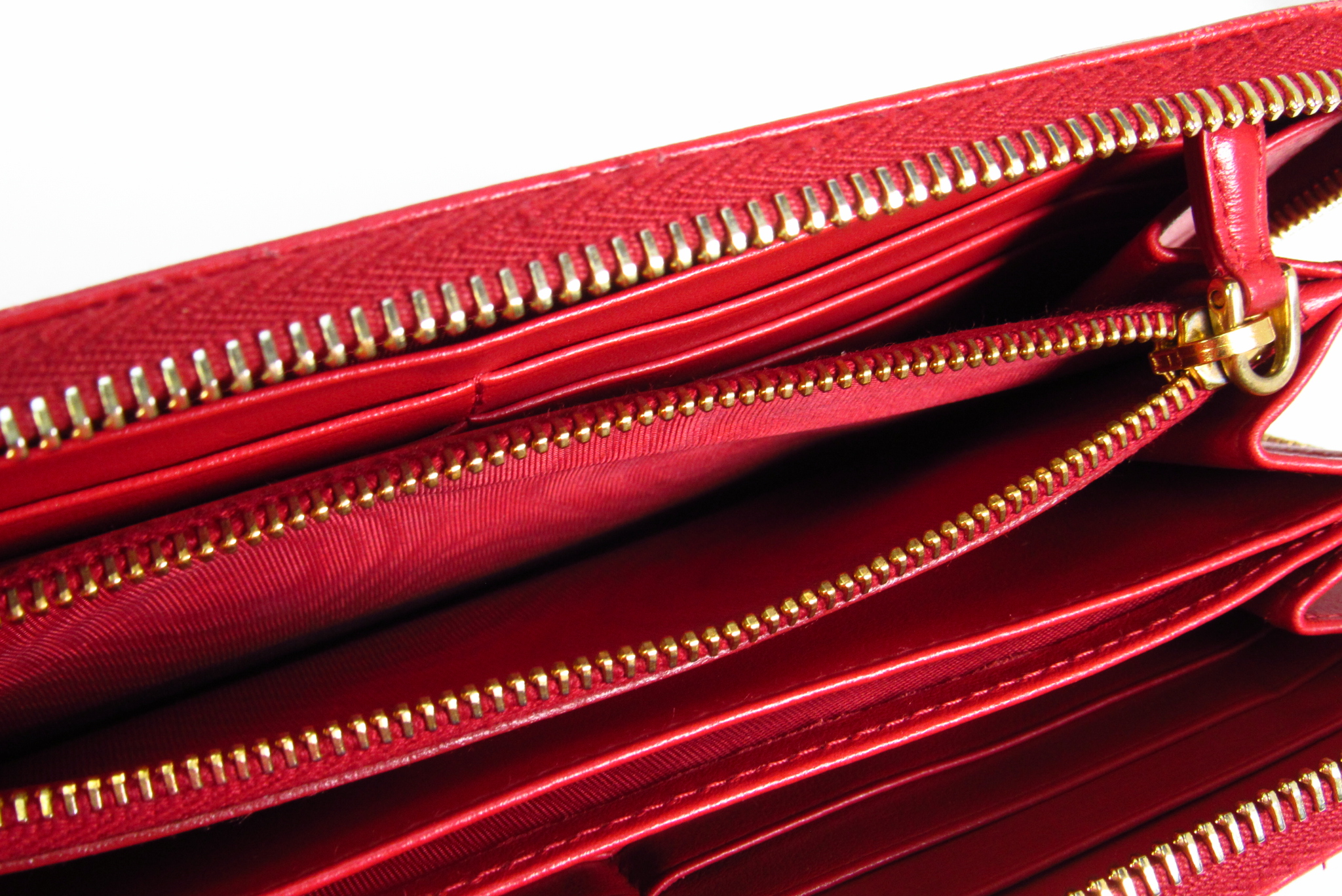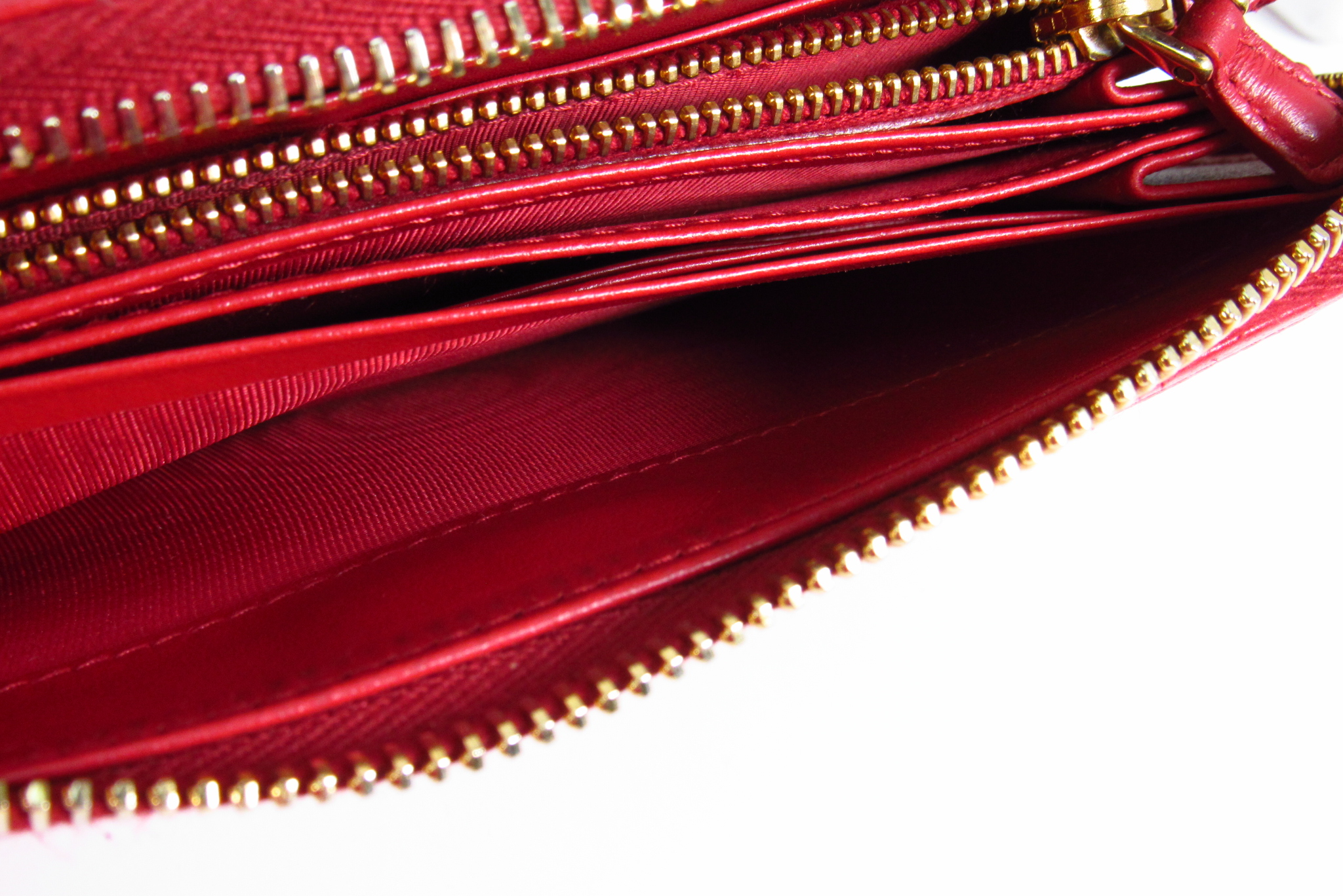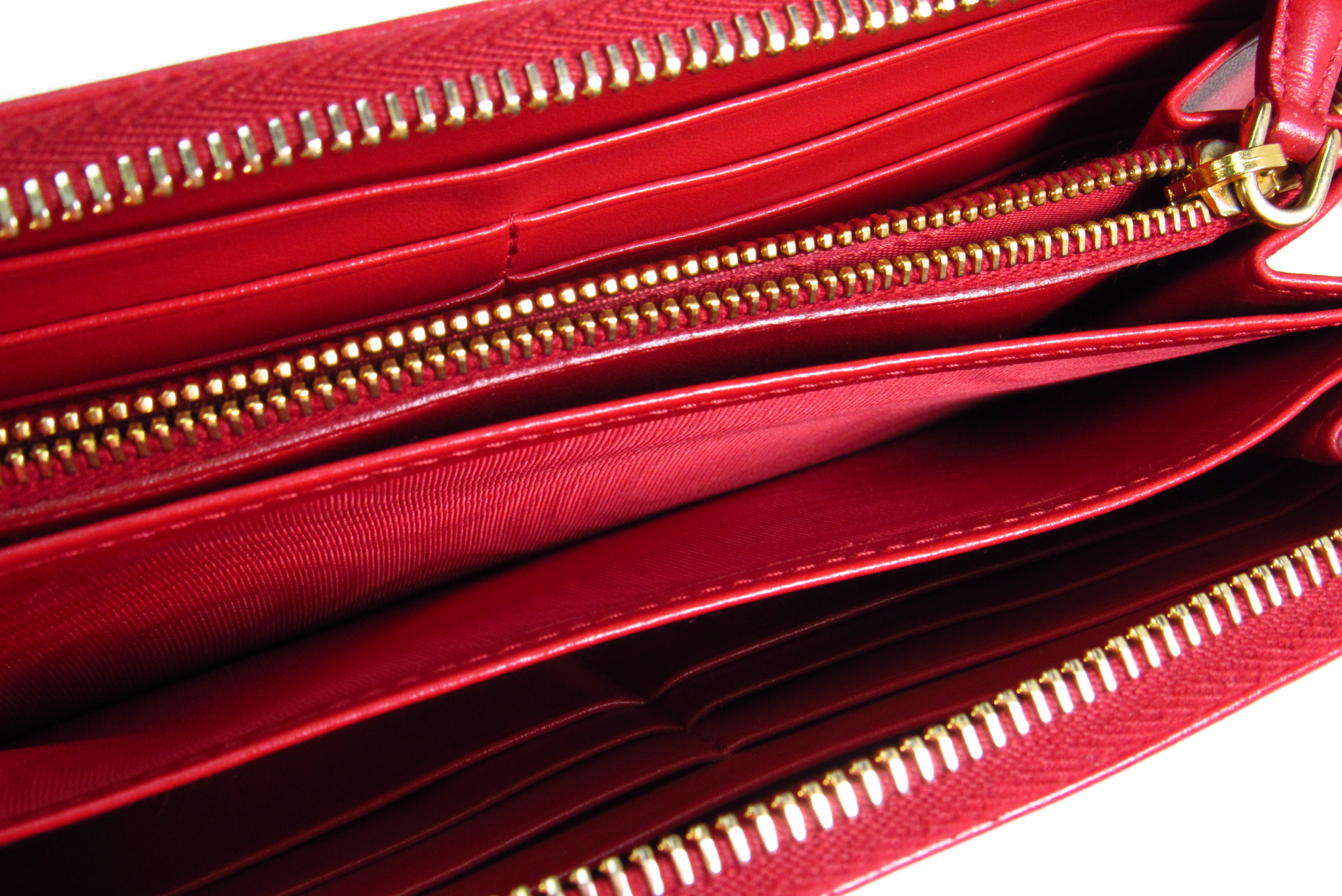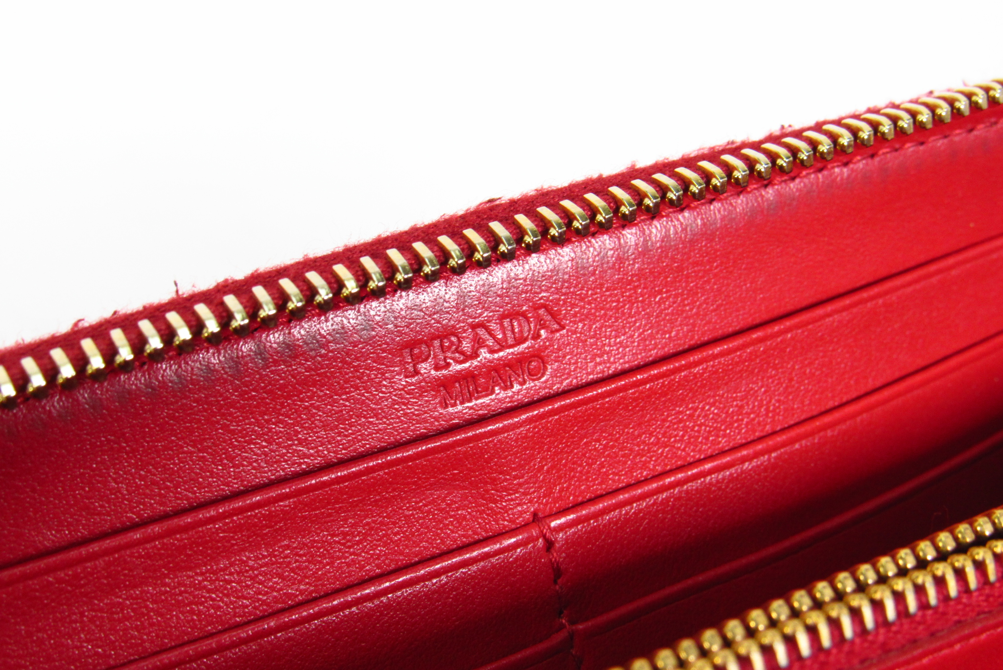 Prada Milano Quilted Zip Around Wallet - Red - Entrupy Authenticated