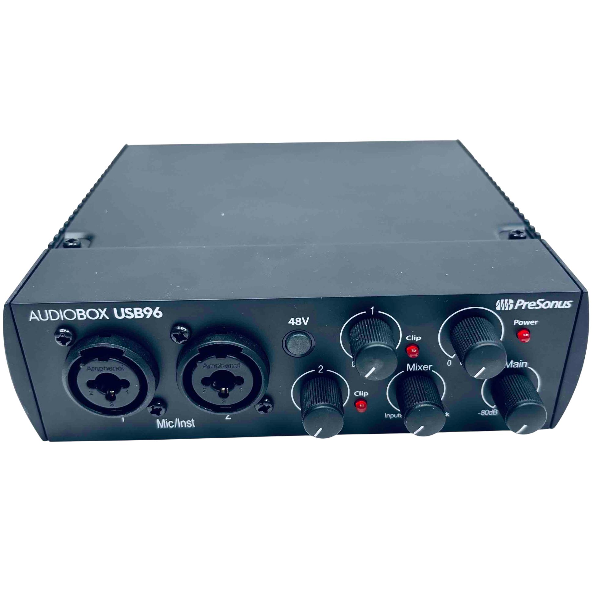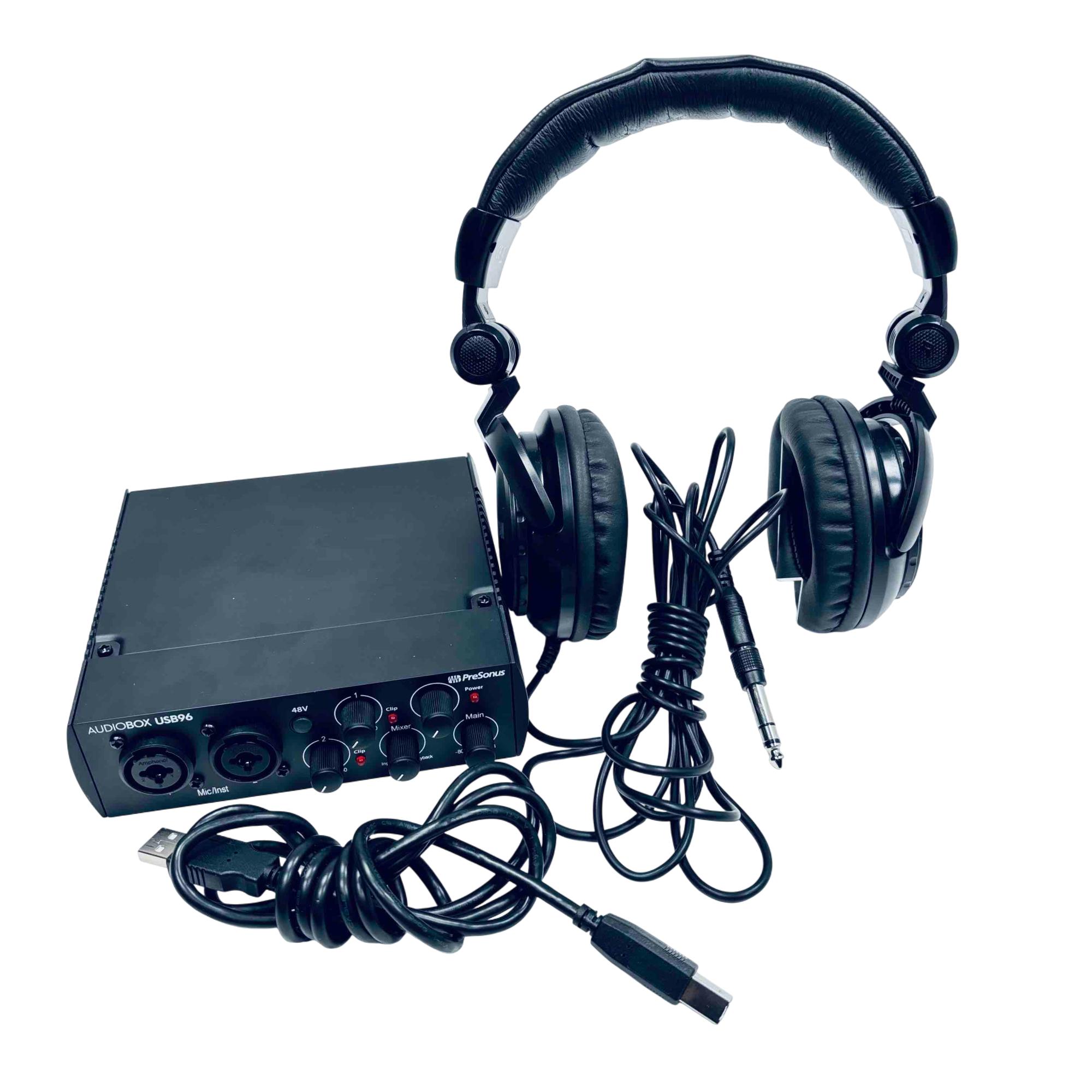 Unlock studio-quality sound with the PreSonus AudioBox USB 96 USB Audio Interface, paired with the TASCAM TH-02 Closed-Back Headphones. Perfect for musicians and podcasters, this compact device offers high-quality 24-bit audio and comes complete with elegant black headphones, ensuring you have everything you need for professional audio recording at home or on the go.