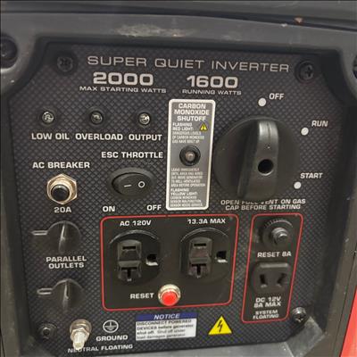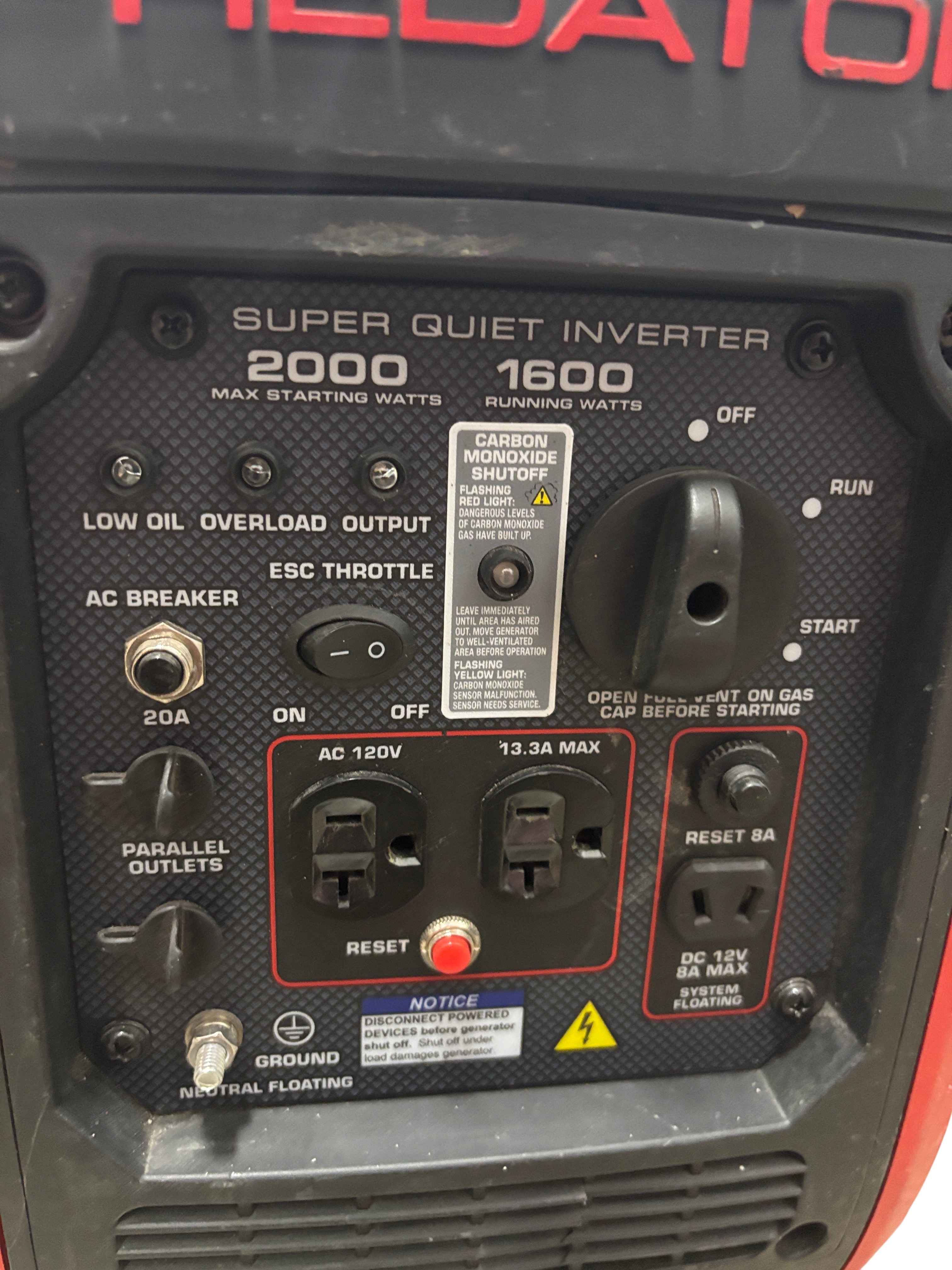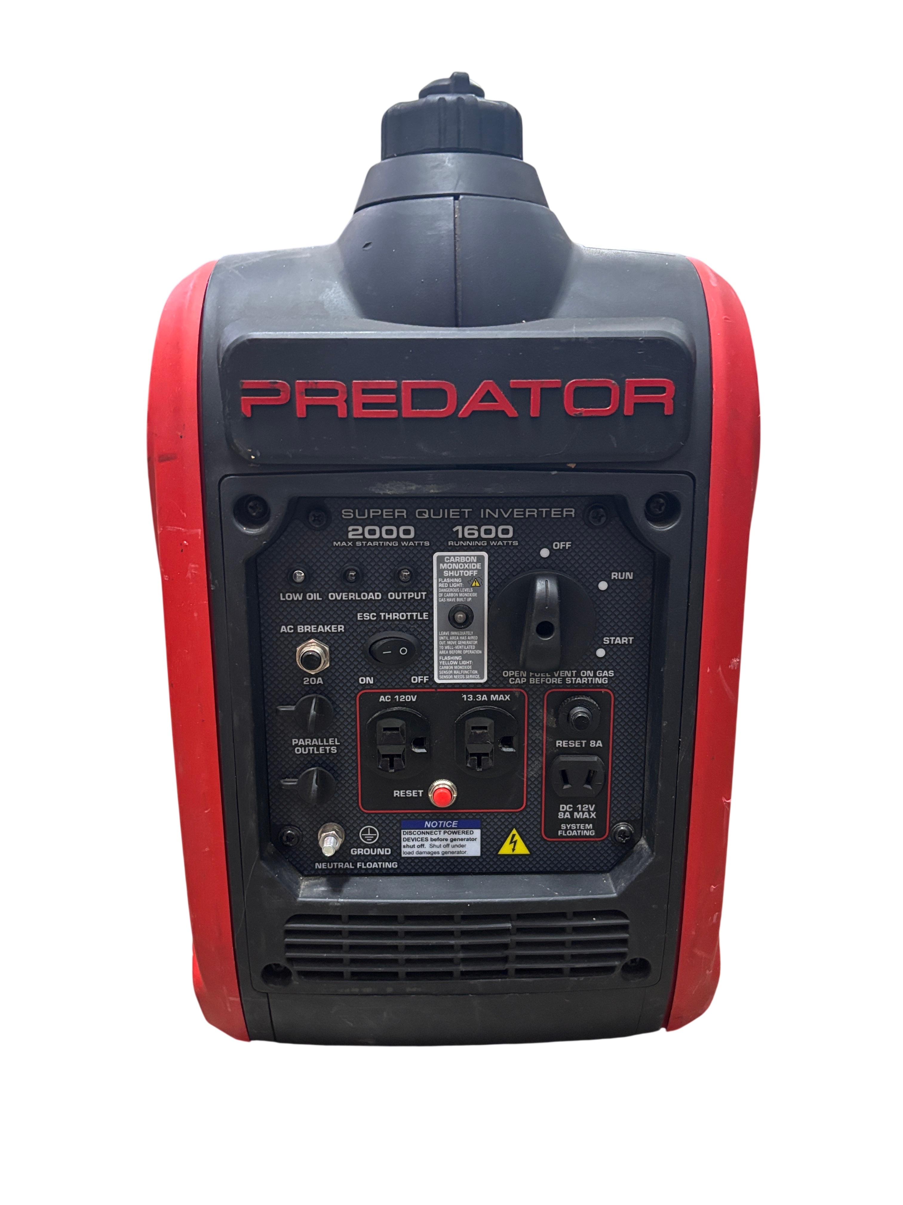 The Predator Super Quiet Inverter 2000 Generator is designed for reliable and quiet power. With 2000 watts of starting power and 1600 watts of running power, this portable generator is perfect for camping, tailgating, and emergency backup. Its compact design and parallel capability allow for easy transport and increased power output when needed.