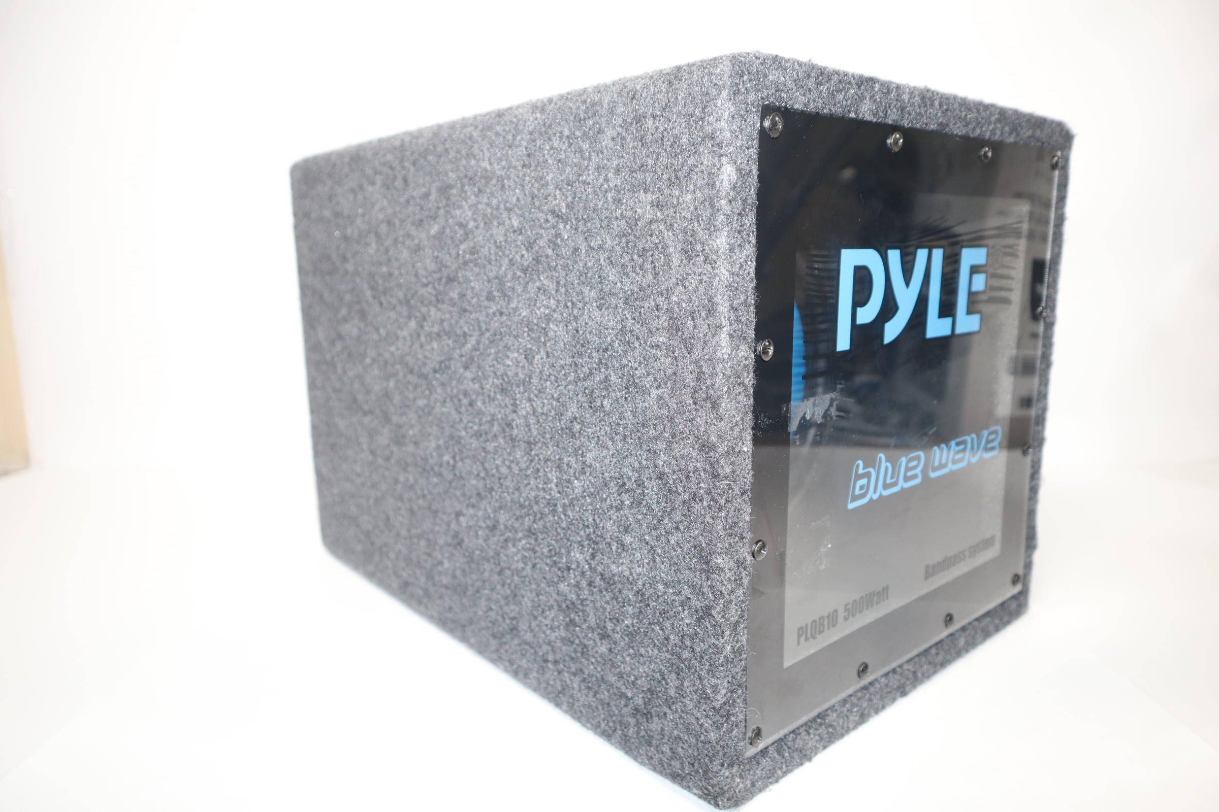 Bring the bone-crushing bass to your neighborhood while keeping appearances tight with the Pyle 10-Inch 500-Watt Enclosed Subwoofer System in your ride. This 10-inch car subwoofer has a peak power of 500 watts that delivers high sound resonance with a punch to your sound system. This sleek sub also has a 2-inch aluminum voice coil that maximizes your sound quality while minimizing noise and distortion. The powerful bass speaker hallmarks bandpass alignment for added sub-bass response and is designed with a specially treated rubber edge suspension to keep your equipment safe from damage. This clean-cut enclosed car subwoofer not only sounds great but looks great too with a blue injection-molded cone and carpeted construction, plus plexiglass front window panel. This dynamic woofer is easy to install into your vehicle and easily enhances your current speaker situation. Start thumping and bumping your favorite beats now with the Pyle 10-Inch 500-Watt Enclosed Carpeted Car Audio Subwoofer Speaker.