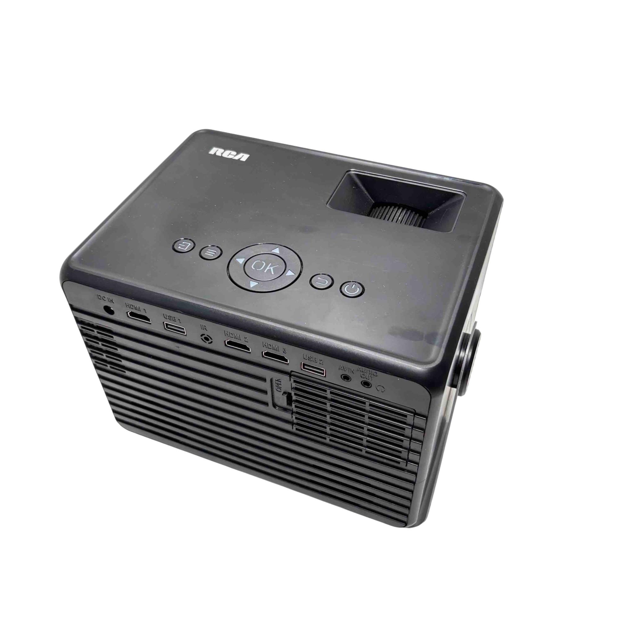 Experience stunning visuals and versatility with the RCA RPJ227 Home Theater Swivel Projector. Featuring Full HD 1080p resolution, portable design, and multiple HDMI, USB, AV, and audio ports for seamless connectivity, this projector is perfect for home entertainment. With built-in speakers, a cooling system, and handy swivel functionality, it’s ideal for immersive movie nights or streaming marathons.