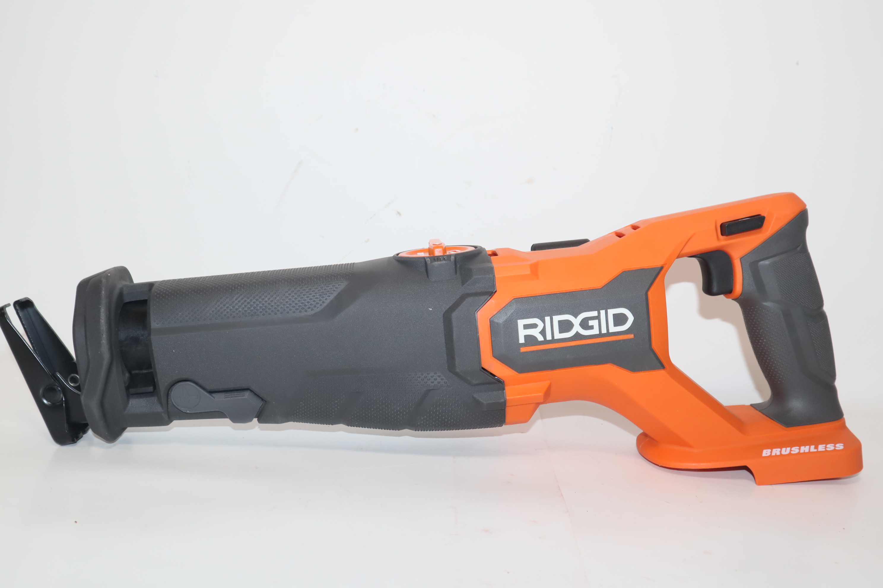 - Introducing the R8647B 18V Brushless Reciprocating Saw. RIDGID's brushless motor technology delivers maximum performance and longer runtime. The RIDGID 18V Brushless Reciprocating Saw offers 20% faster cutting compared to the previous model (R8643) and features a premium orbital action switch for fast wood cutting. The R8647B has a conveniently located side-lever tool-free blade release for quick and easy blade changes. This 18V brushless reciprocating saw features an integrated rafter hook for easy storage, as well as a superior ergonomic handle for enhanced user comfort. As always, this RIDGID 18V Brushless Reciprocating Saw is 100% compatible with all RIDGID 18V batteries.
