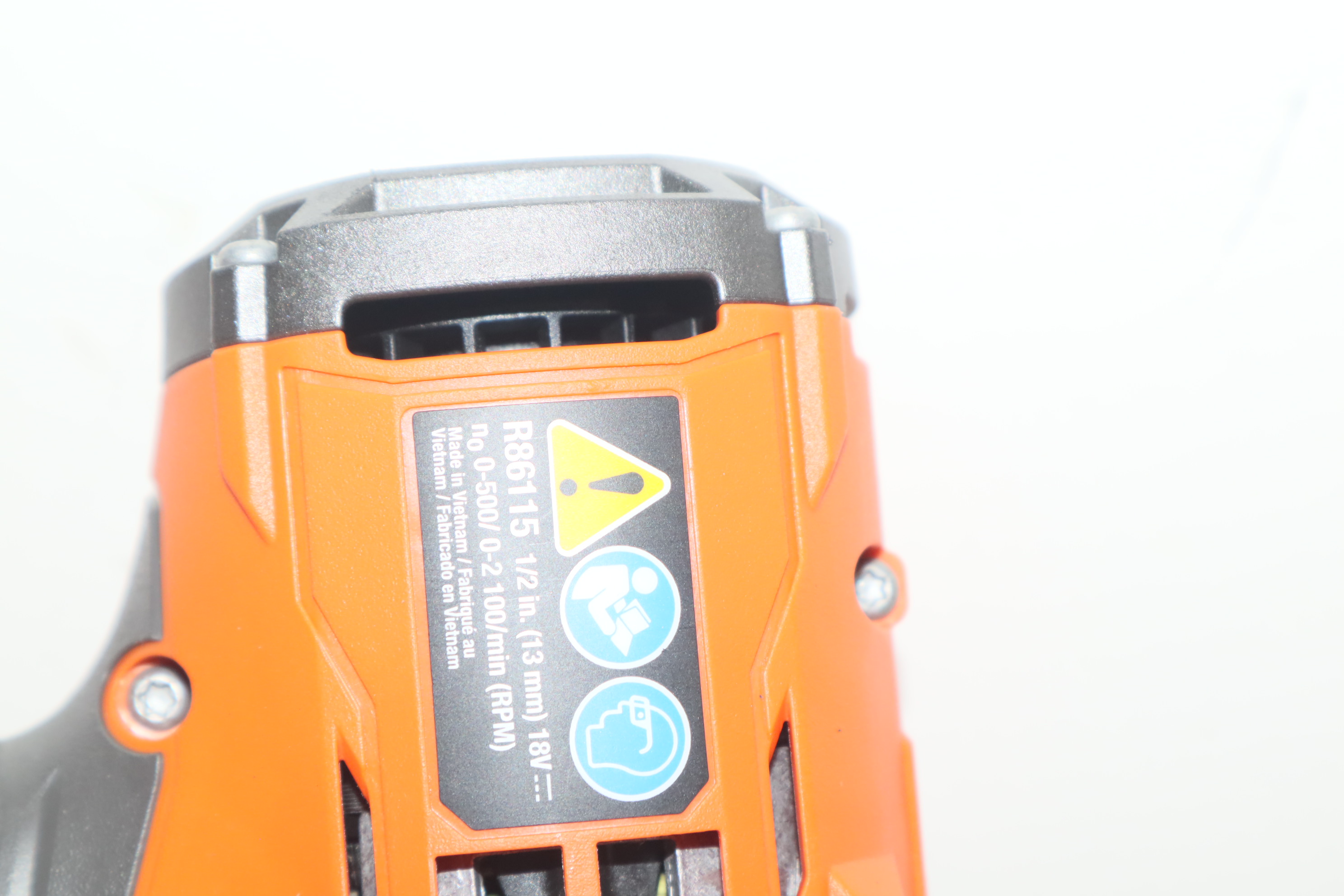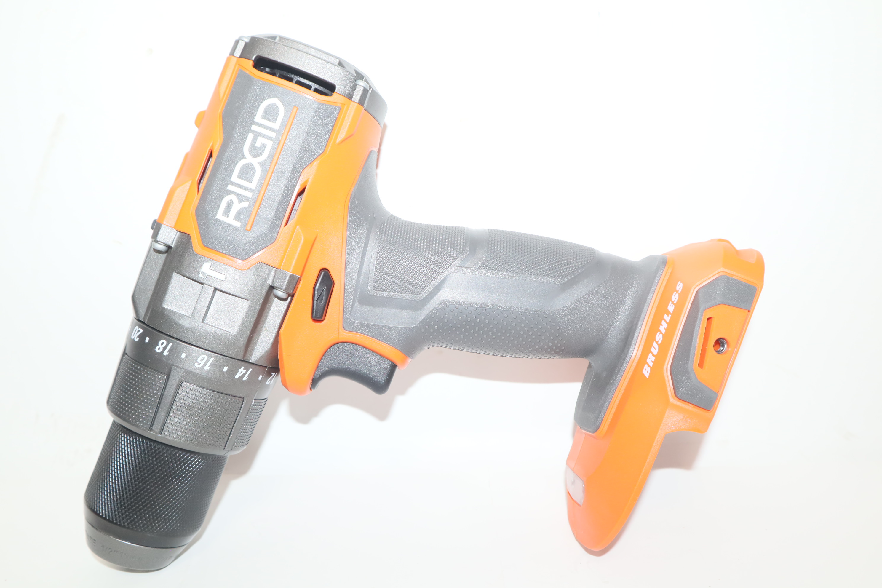 - Introducing the R86115B 18V Brushless 1/2 in. Hammer Drill/Driver. RIDGID's brushless motor technology delivers maximum performance and longer runtime. The RIDGID 18V Brushless 1/2 in. Hammer Drill delivers up to 800 in./lbs. of torque for maximum power. With a 2-speed gearbox and max RPM of 2,100, this 18V brushless hammer drill can handle the complete range of drilling application like drilling and driving into wood and metal as well as drilling into masonry. The R86115B was designed with superior ergonomics for enhanced user comfort. This 18V brushless hammer drill is 35% more compact and 20% lighter weight than the previous model (R8611506), and still powers through even the most demanding applications. The RIDGID 18V Brushless ½ in. Hammer Drill features an all-metal 1/2 in. ratcheting chuck and metal gearcase for maximum jobsite durability. As always, this RIDGID 18V Brushless 1/2 in. Hammer Drill/Driver is 100% compatible with all RIDGID 18V batteries.