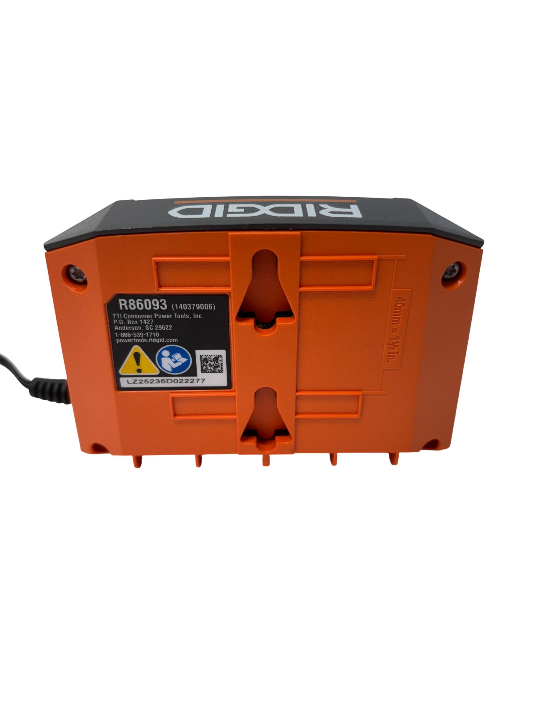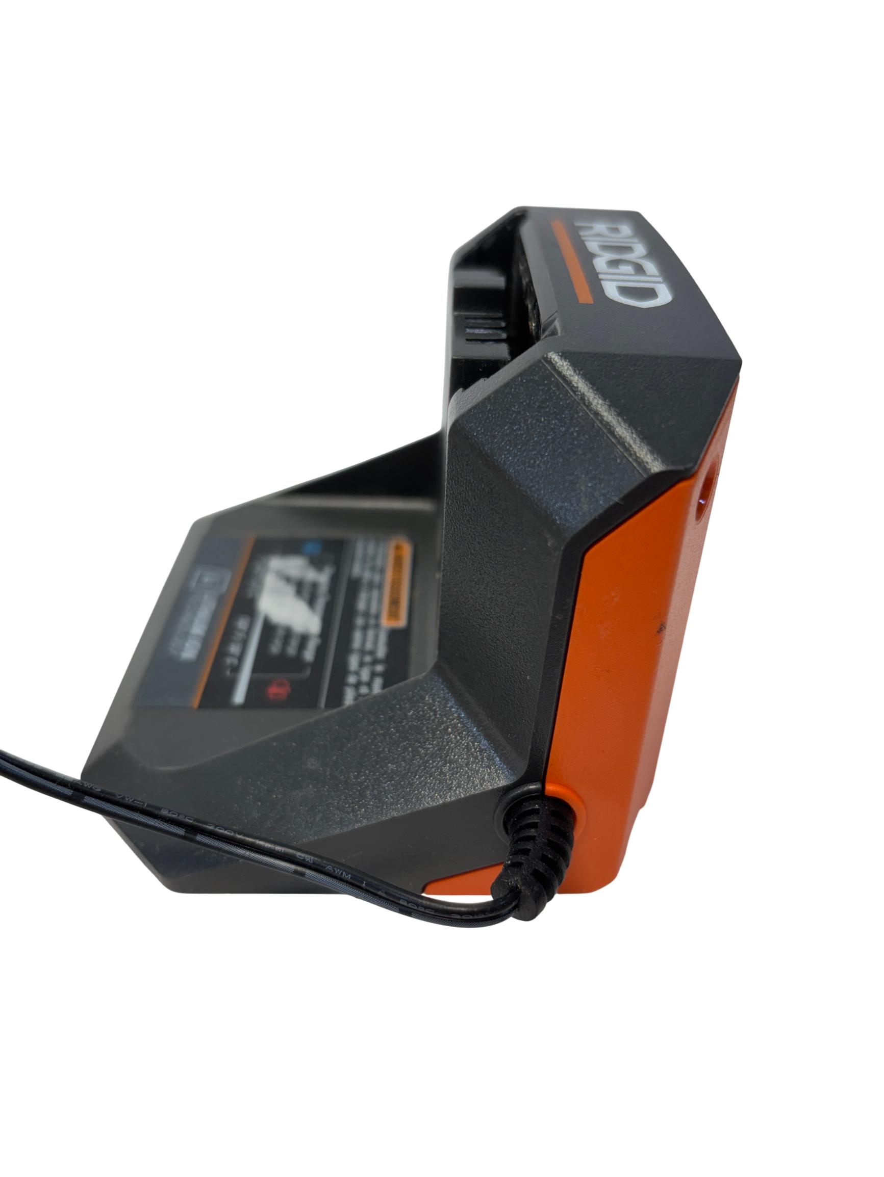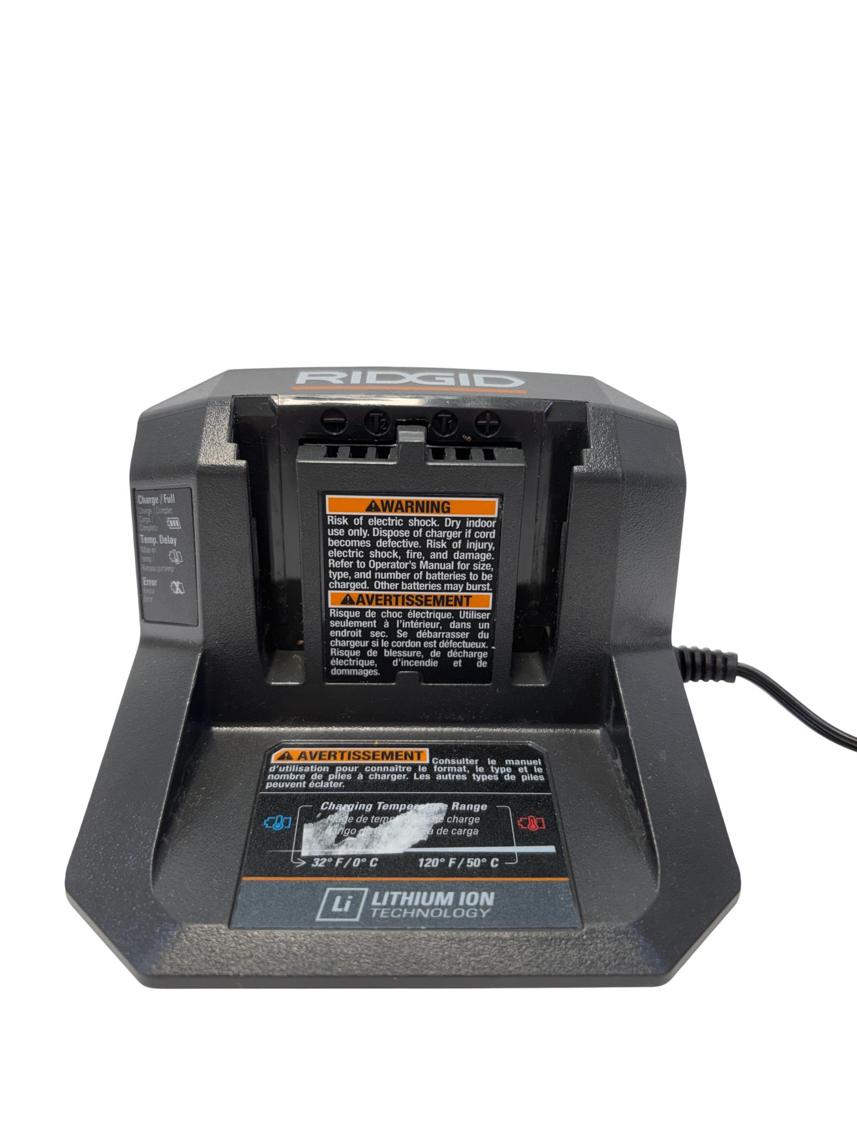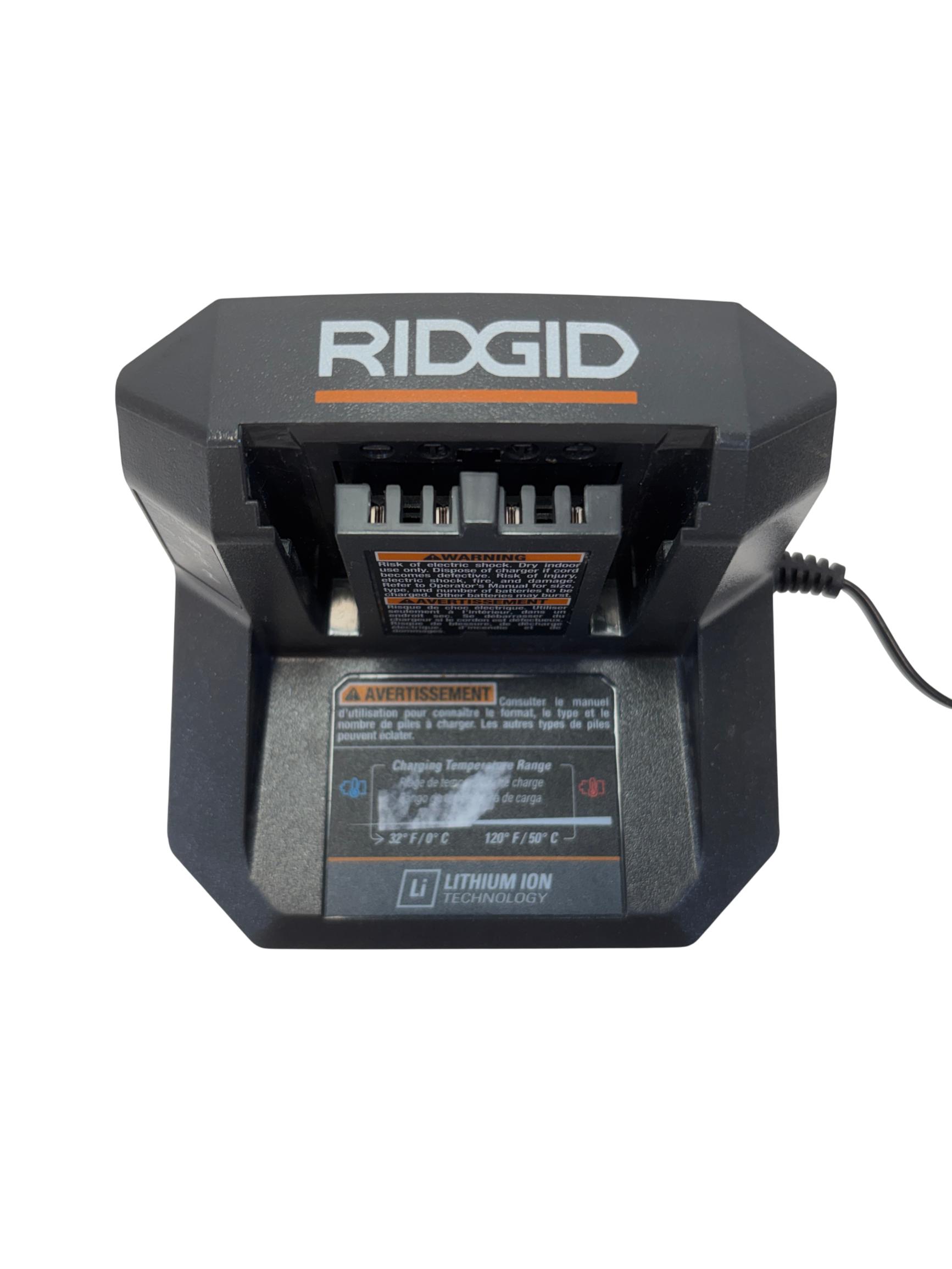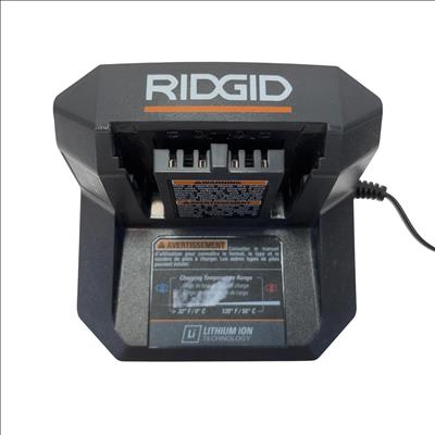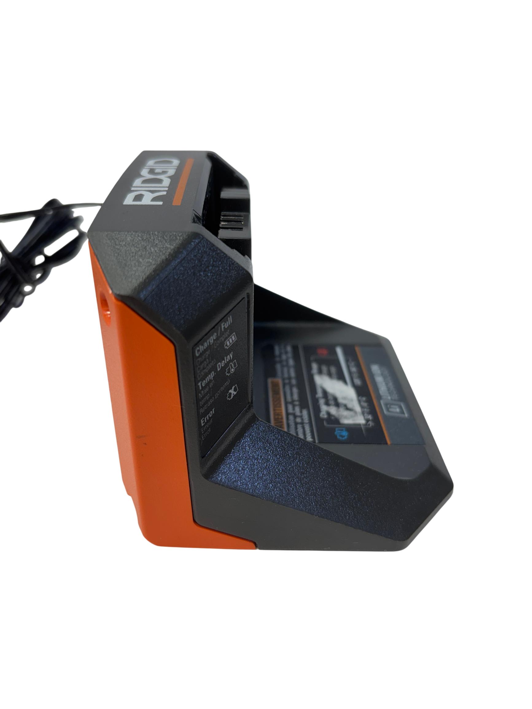 The RIDGID 18V Lithium-Ion Battery Charger is designed to efficiently charge 18-volt lithium-ion batteries with a focus on safety and reliability. Featuring temperature delay and protection features, this charger helps prevent overheating and ensures optimal battery performance during use. Its compact design with a durable cord makes it a practical accessory for powering RIDGID cordless tools.