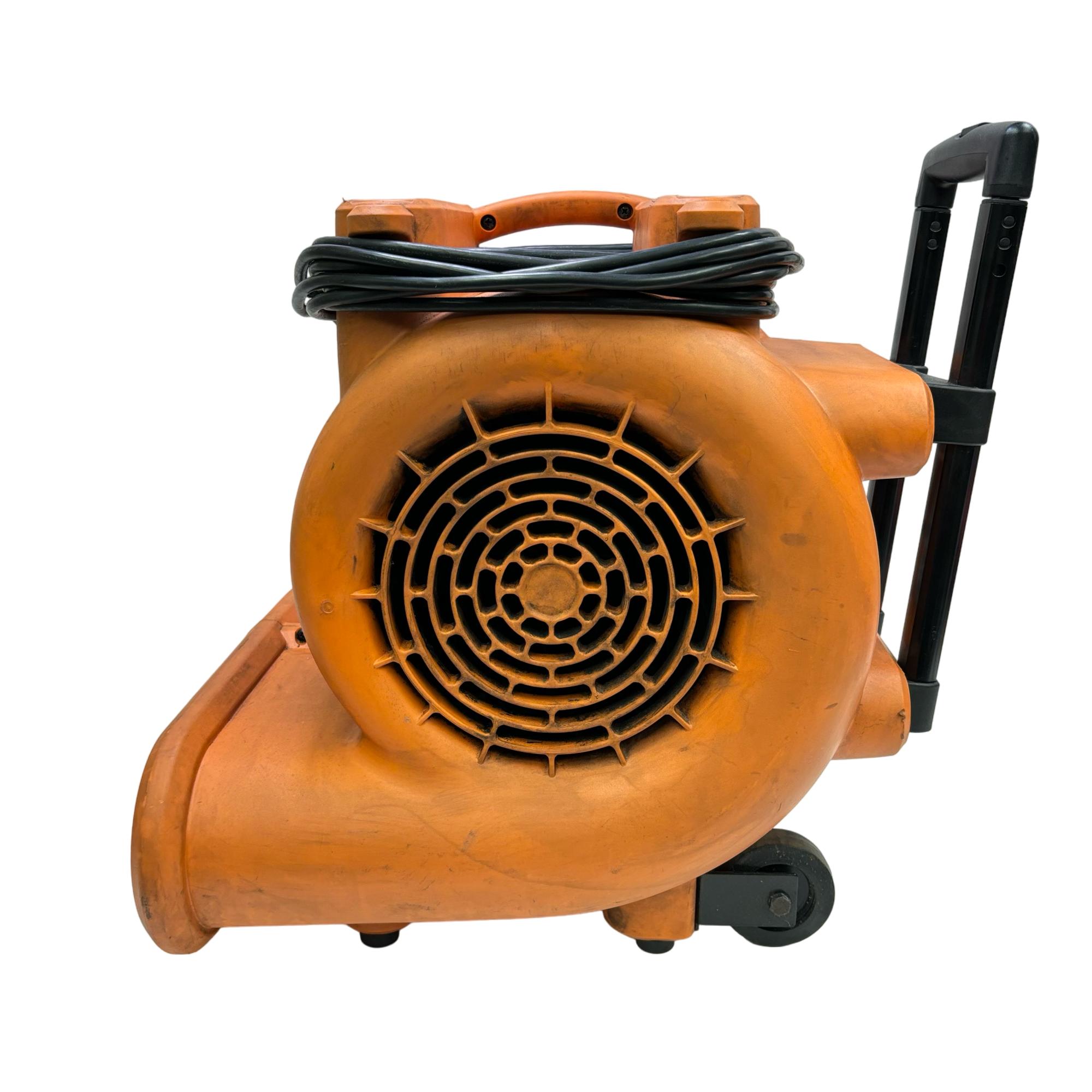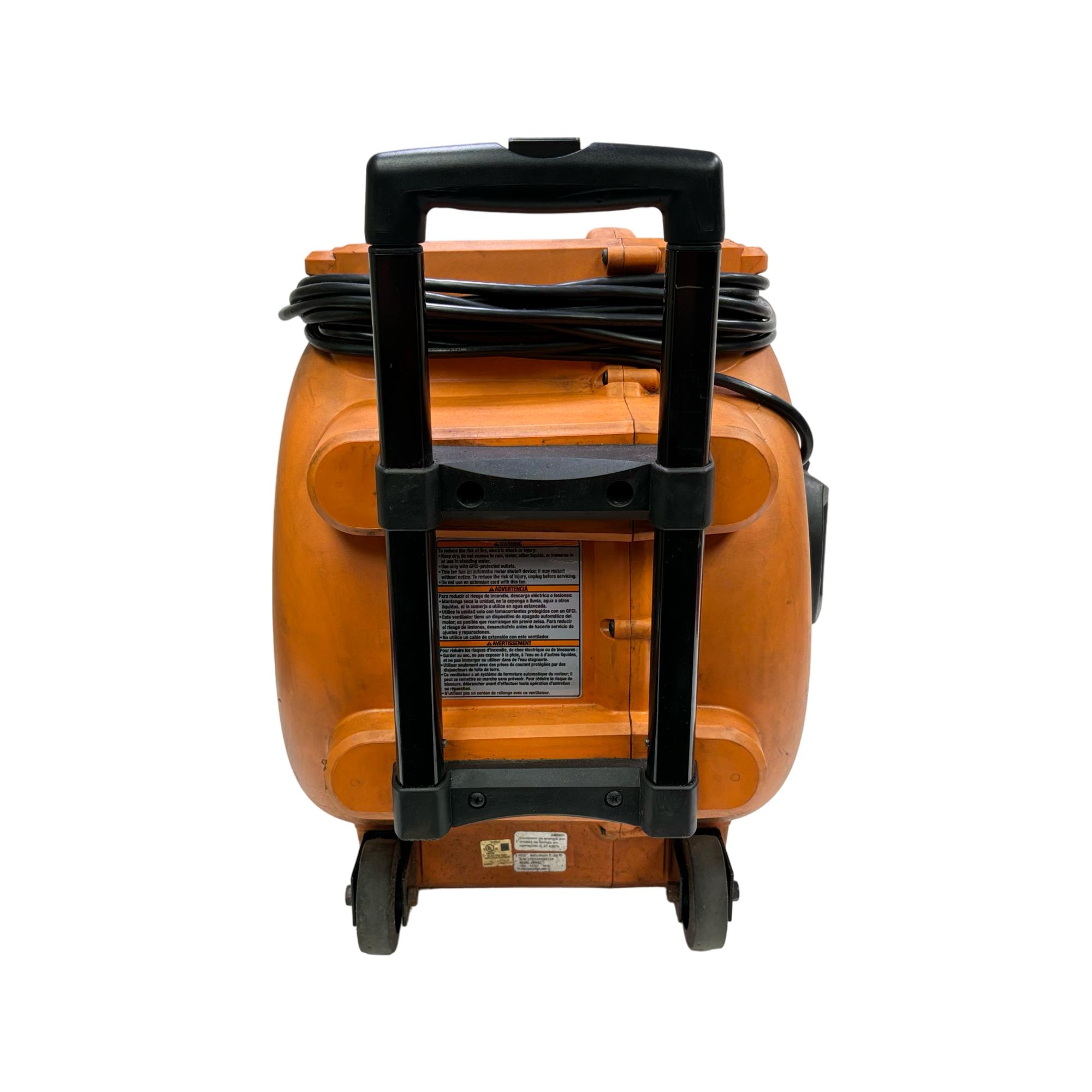 Introducing the RIDGID AM25601 Air Mover, an industrial-grade electric fan designed for superior airflow in commercial and residential spaces. With a robust orange construction and sleek black handle, this air mover is perfect for drying carpets, floors, and hard-to-reach areas efficiently. Its compact design ensures easy storage and portability, making it an essential tool for professional contractors and homeowners alike.