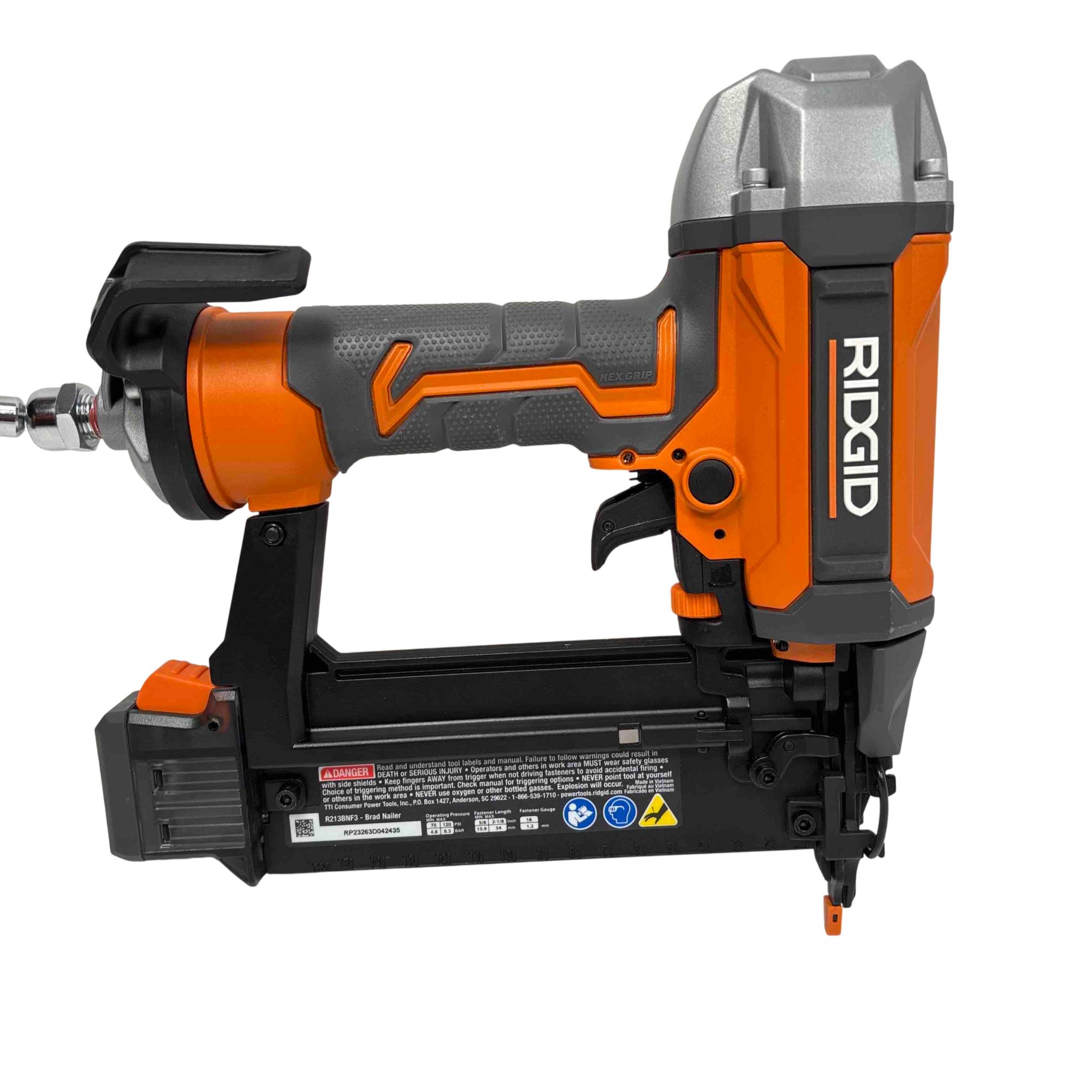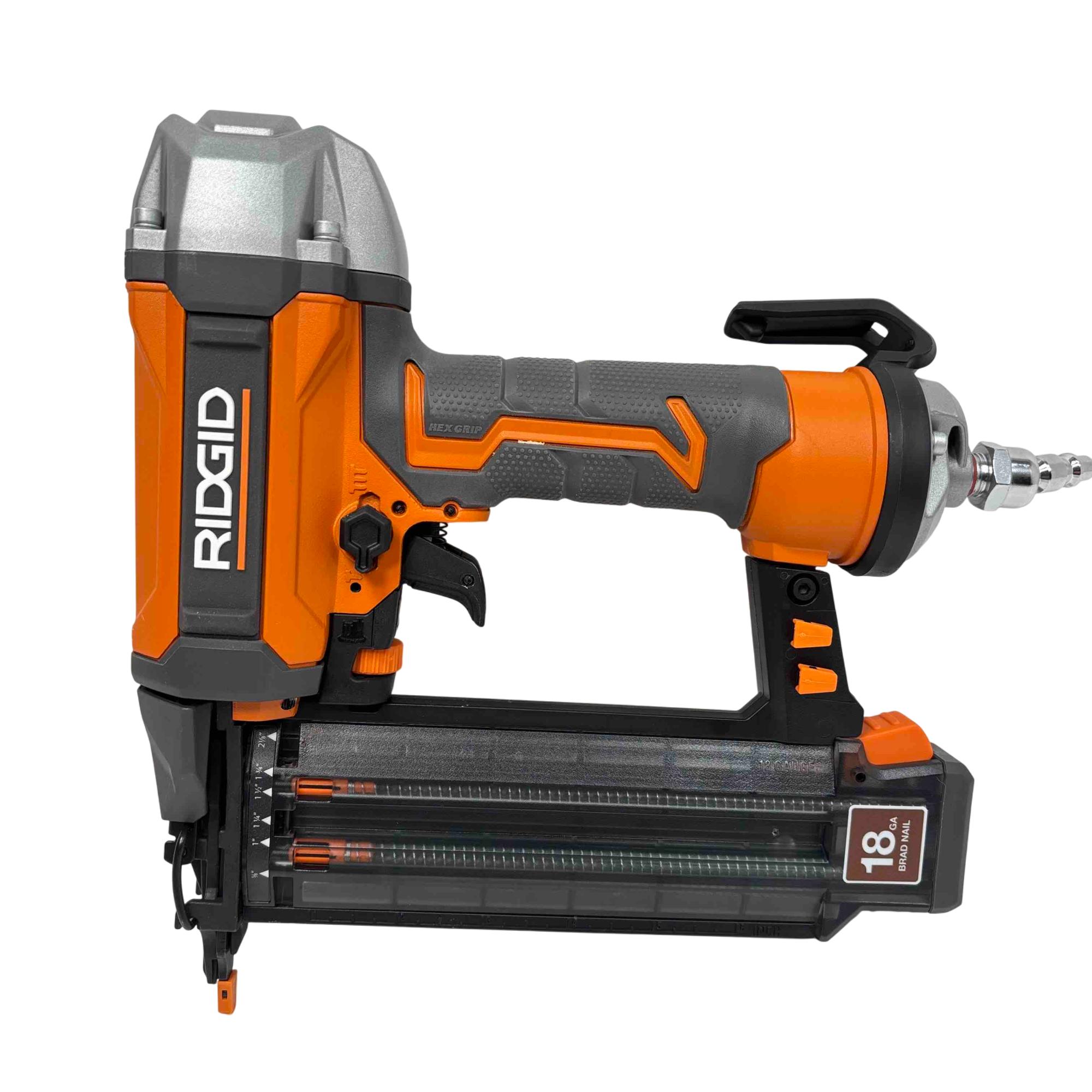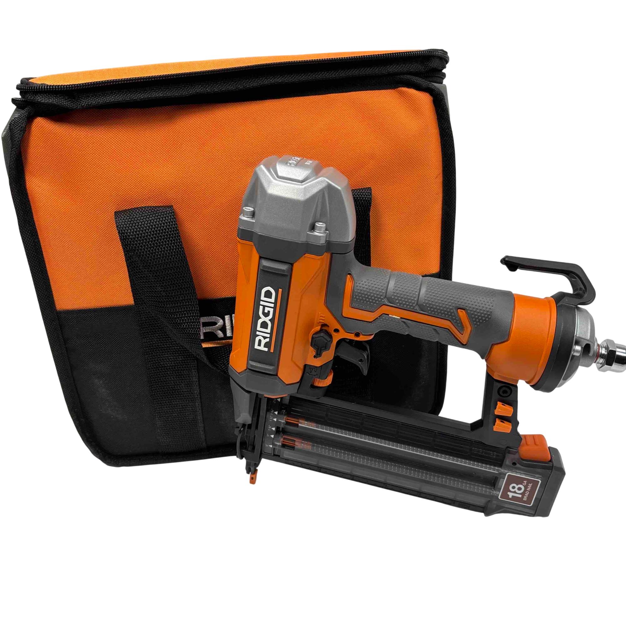 Experience precision and convenience with the RIDGID R213BNF3 18-Gauge Brad Nailer. Engineered for durability, this powerful tool features a HEX Grip for ultimate comfort and control, making it perfect for both professional and DIY projects. Comes with a protective carrying bag, ensuring easy transport and storage.