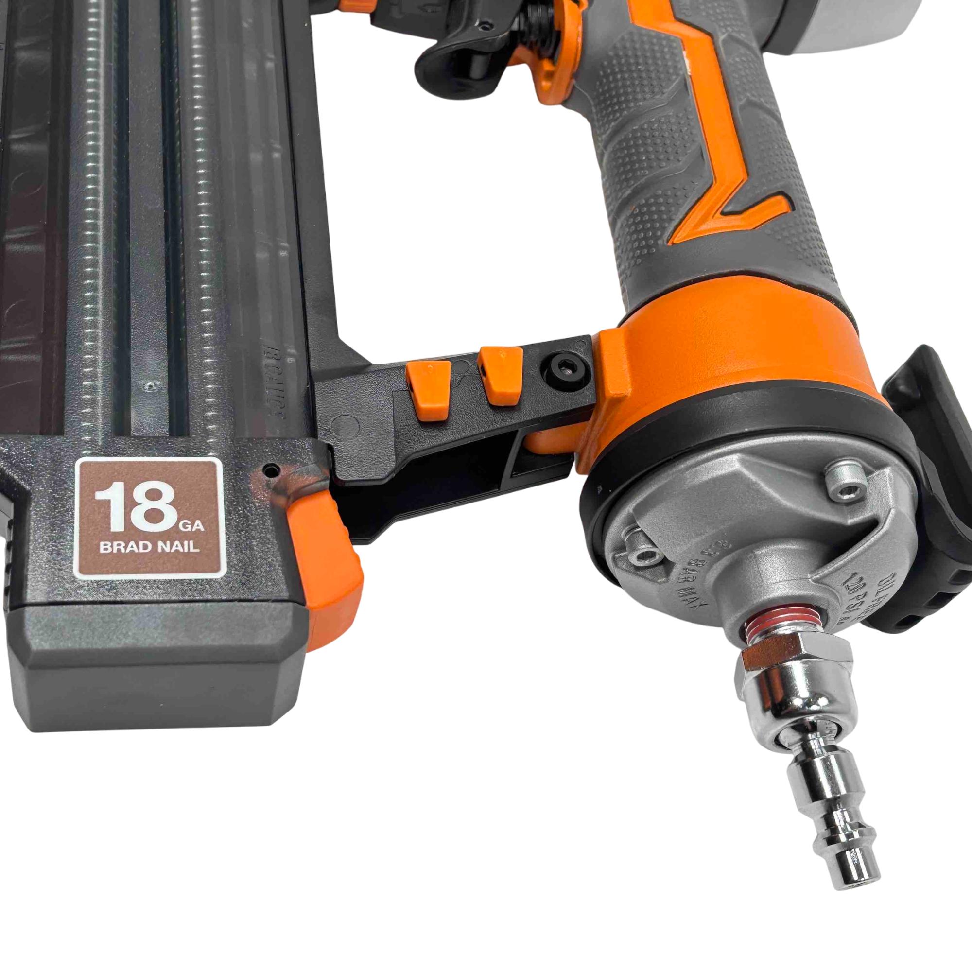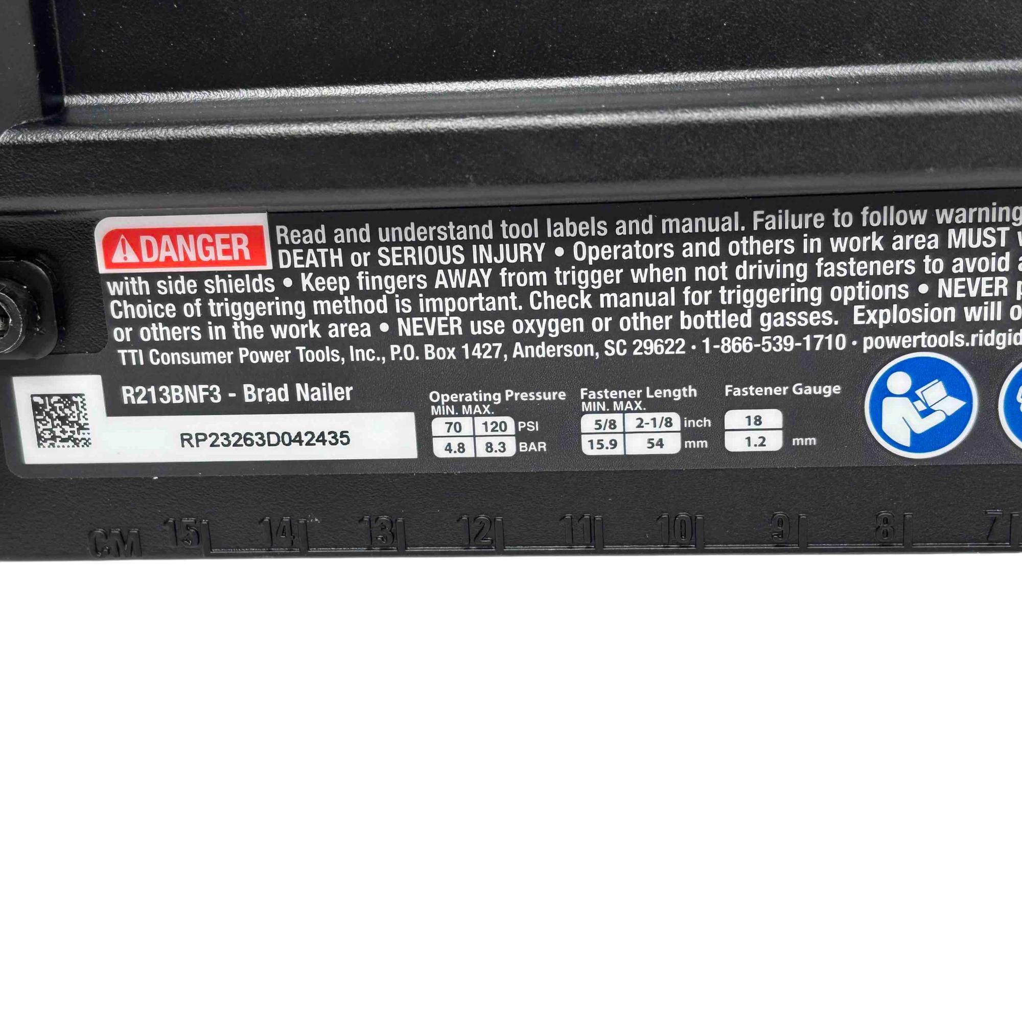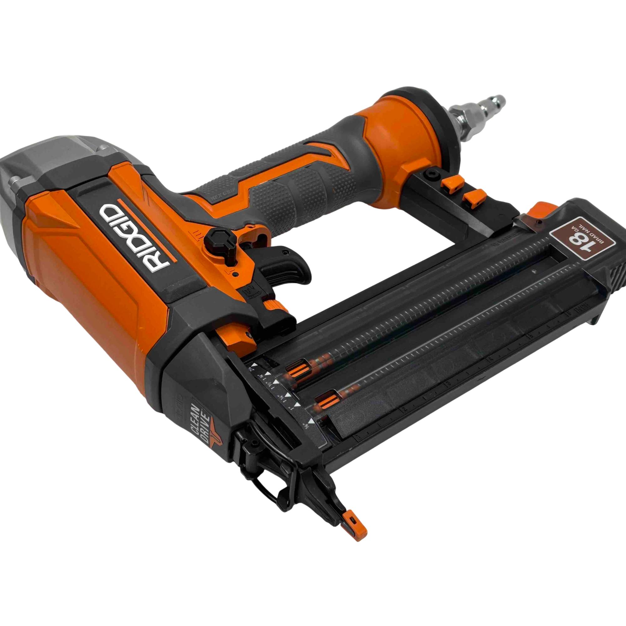 Experience precision and convenience with the RIDGID R213BNF3 18-Gauge Brad Nailer. Engineered for durability, this powerful tool features a HEX Grip for ultimate comfort and control, making it perfect for both professional and DIY projects. Comes with a protective carrying bag, ensuring easy transport and storage.
