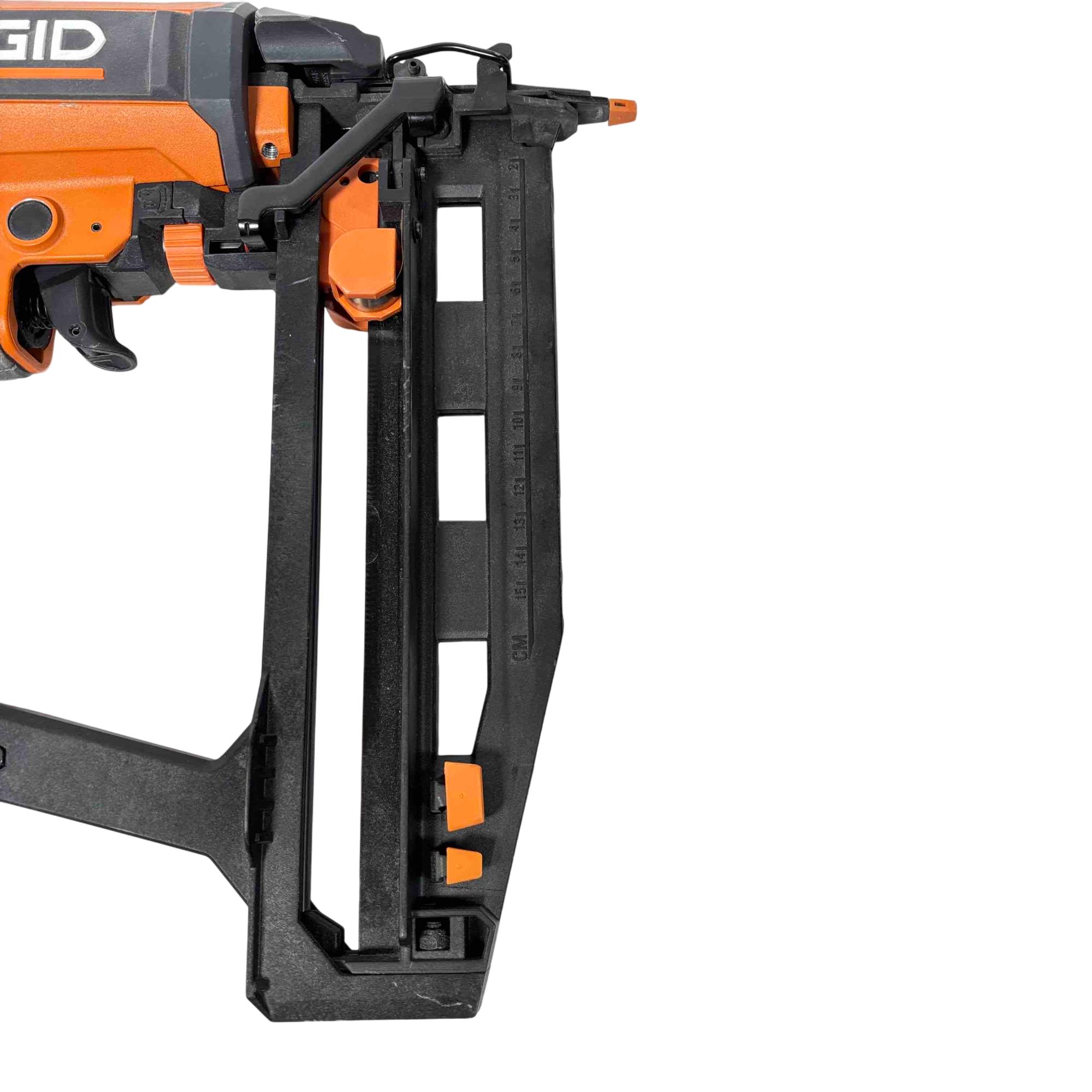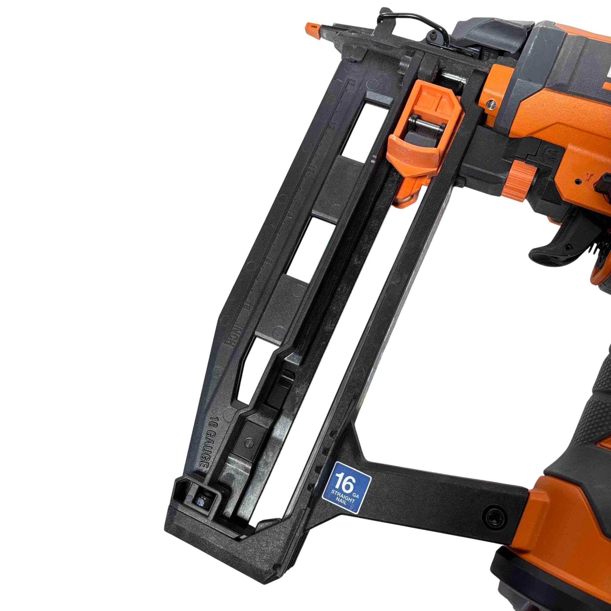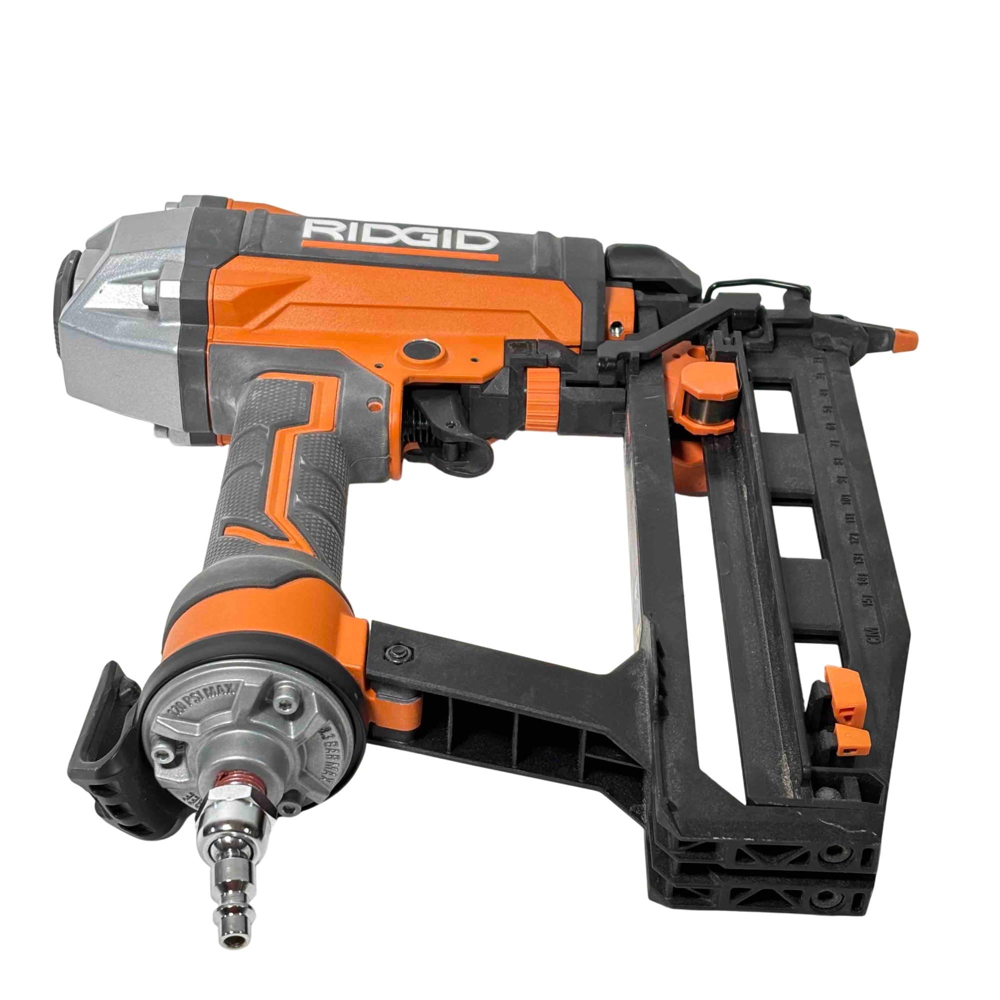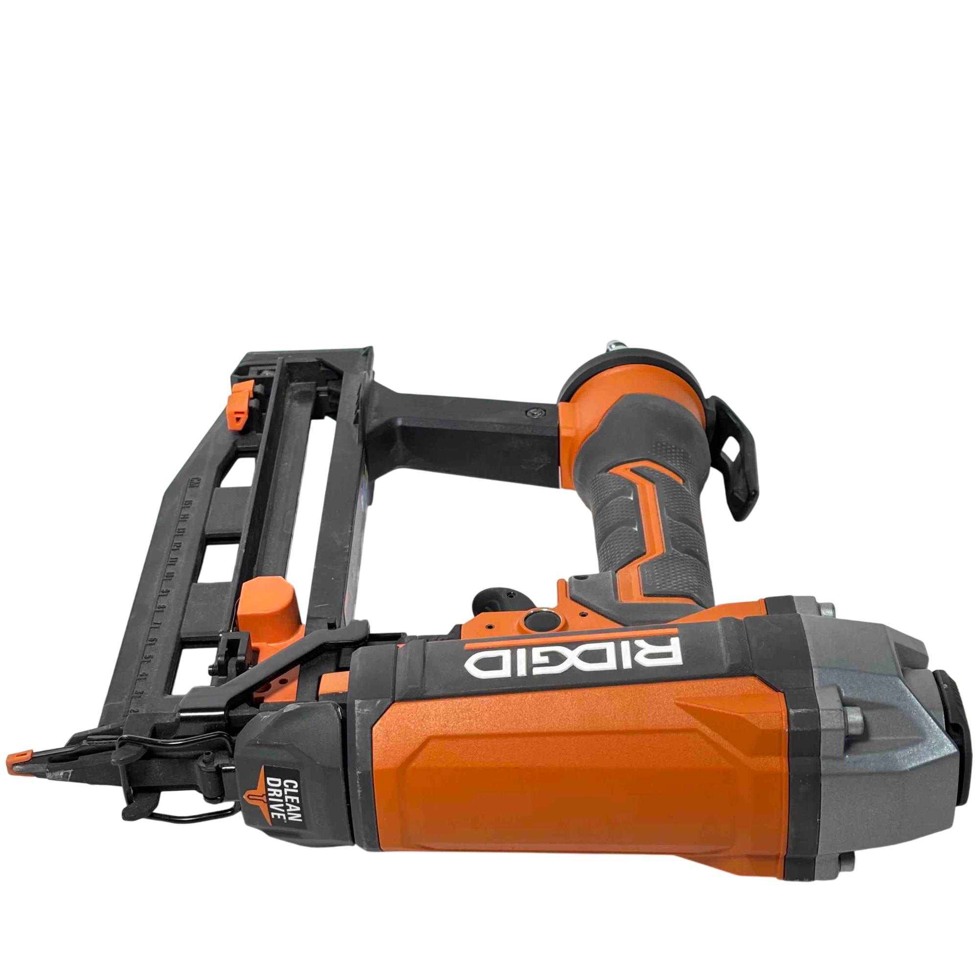 Get the job done efficiently with the RIDGID R150FSF3 16-Gauge Clean Drive Straight Finish Nailer. This durable pneumatic tool is designed for precision and power, perfect for finish carpenters, furniture builders, or anyone in need of a reliable nailing solution. With its sleek black and orange design and ergonomic handle, this nailer offers ease of use and comfort during extended periods of work.