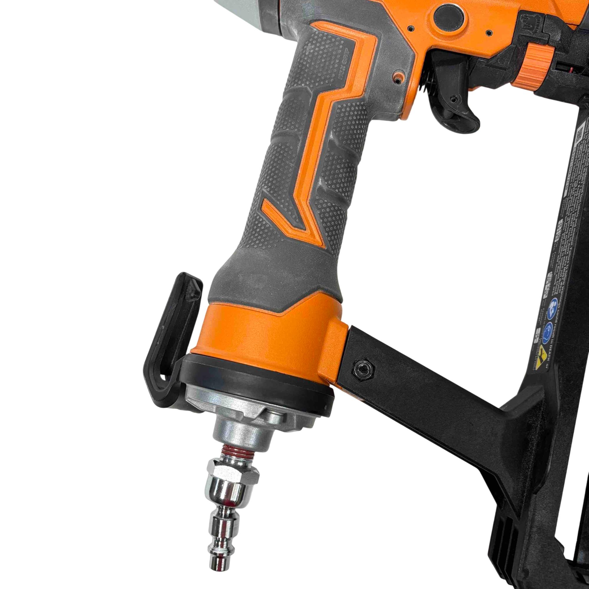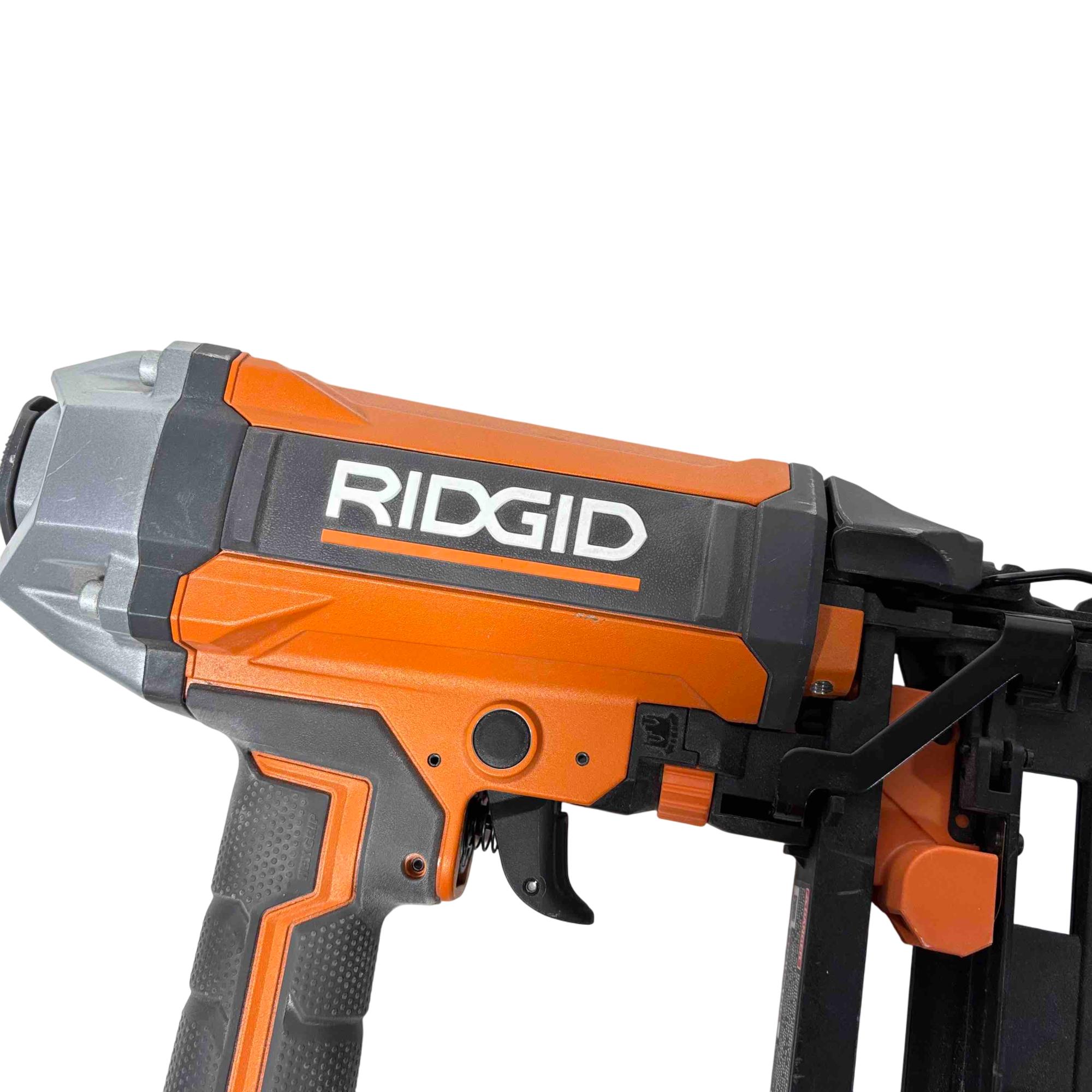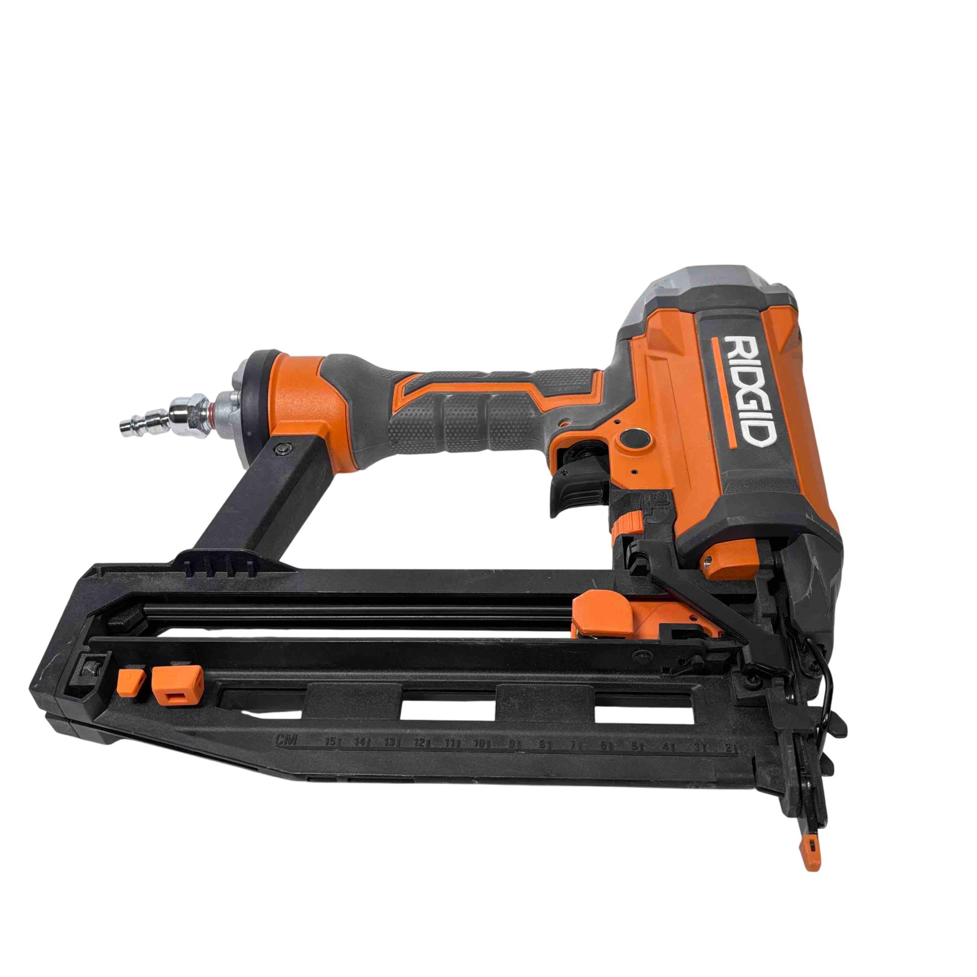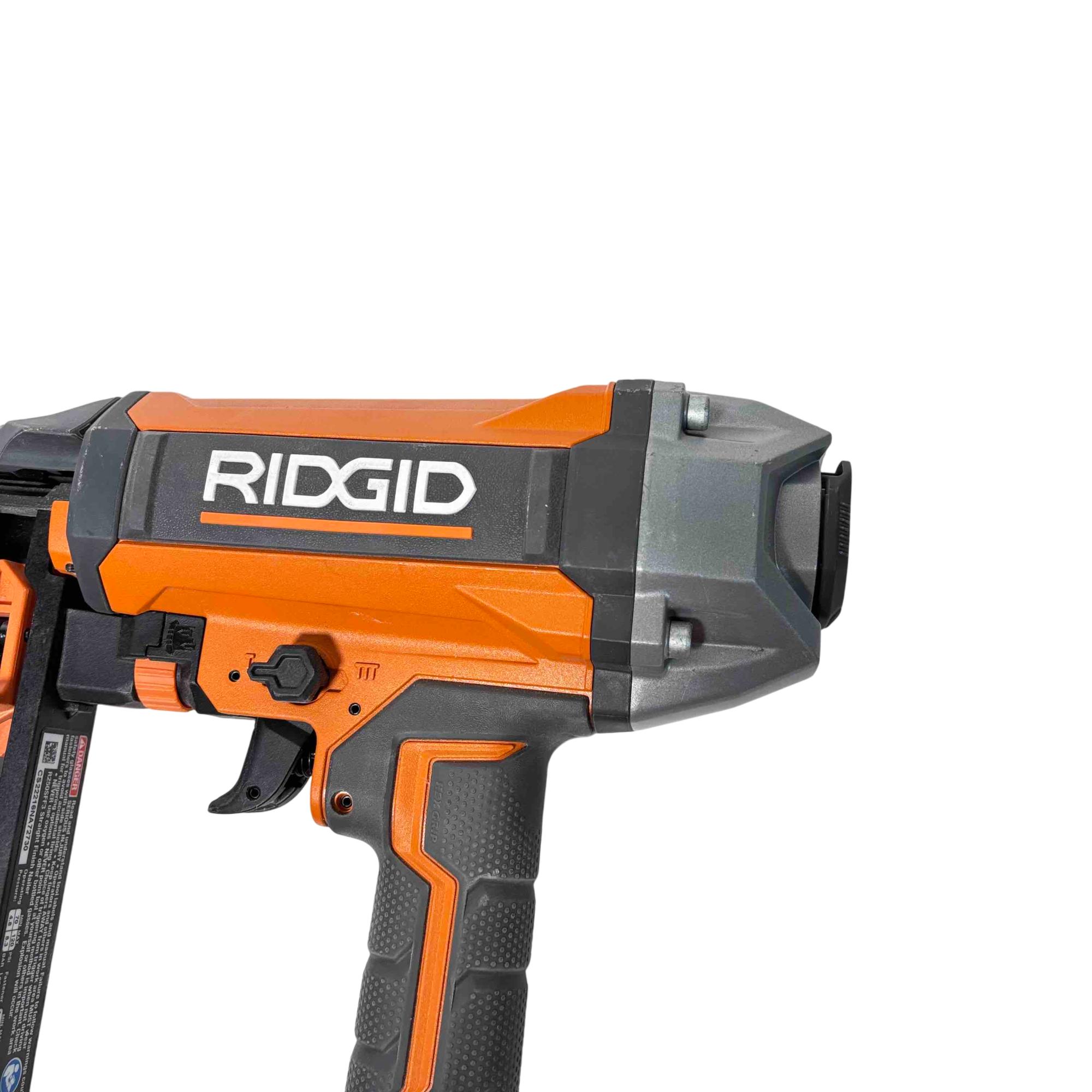 Get the job done efficiently with the RIDGID R150FSF3 16-Gauge Clean Drive Straight Finish Nailer. This durable pneumatic tool is designed for precision and power, perfect for finish carpenters, furniture builders, or anyone in need of a reliable nailing solution. With its sleek black and orange design and ergonomic handle, this nailer offers ease of use and comfort during extended periods of work.