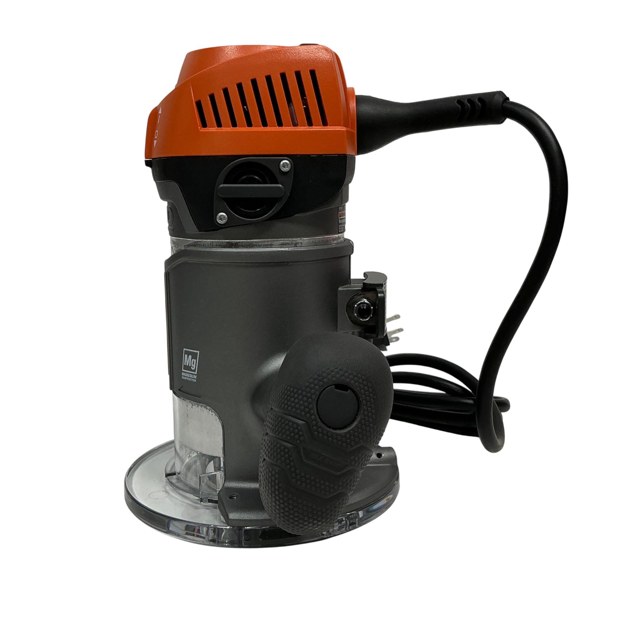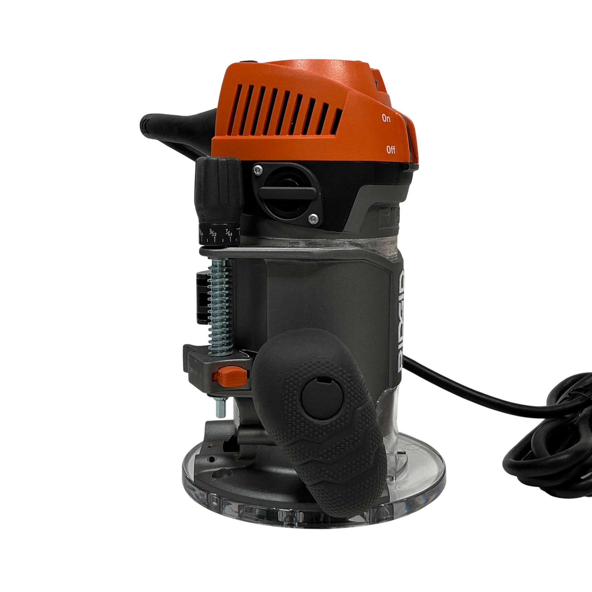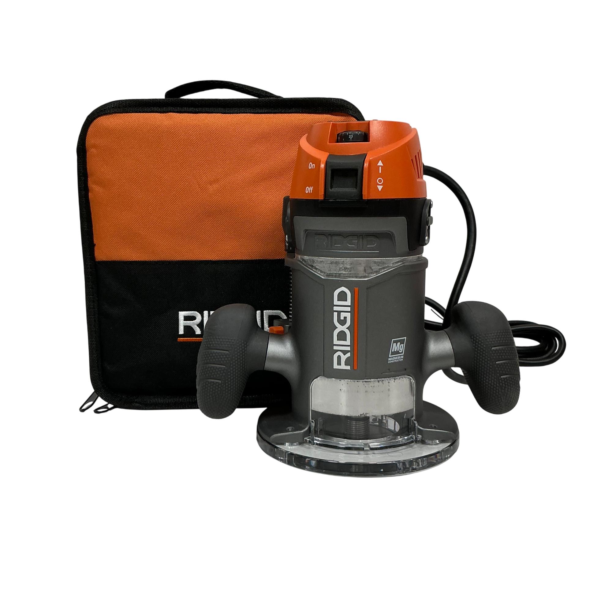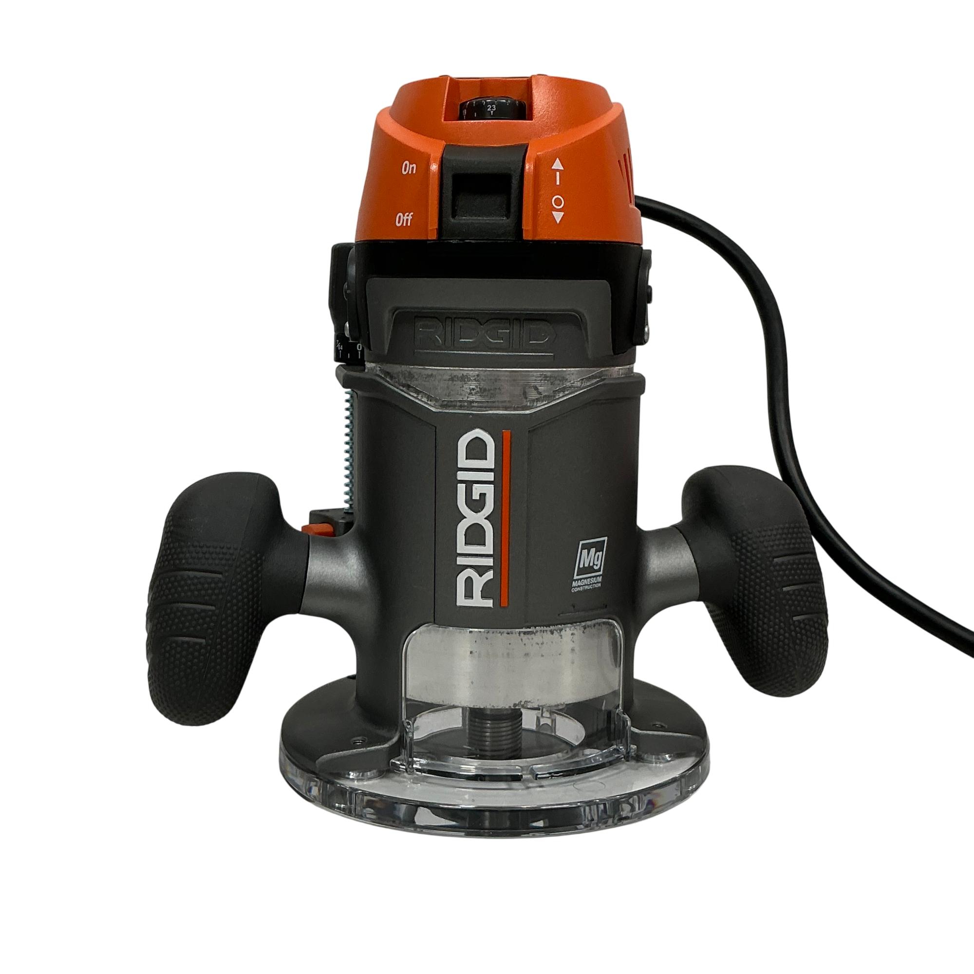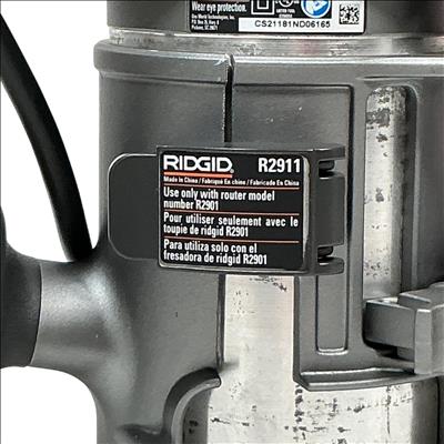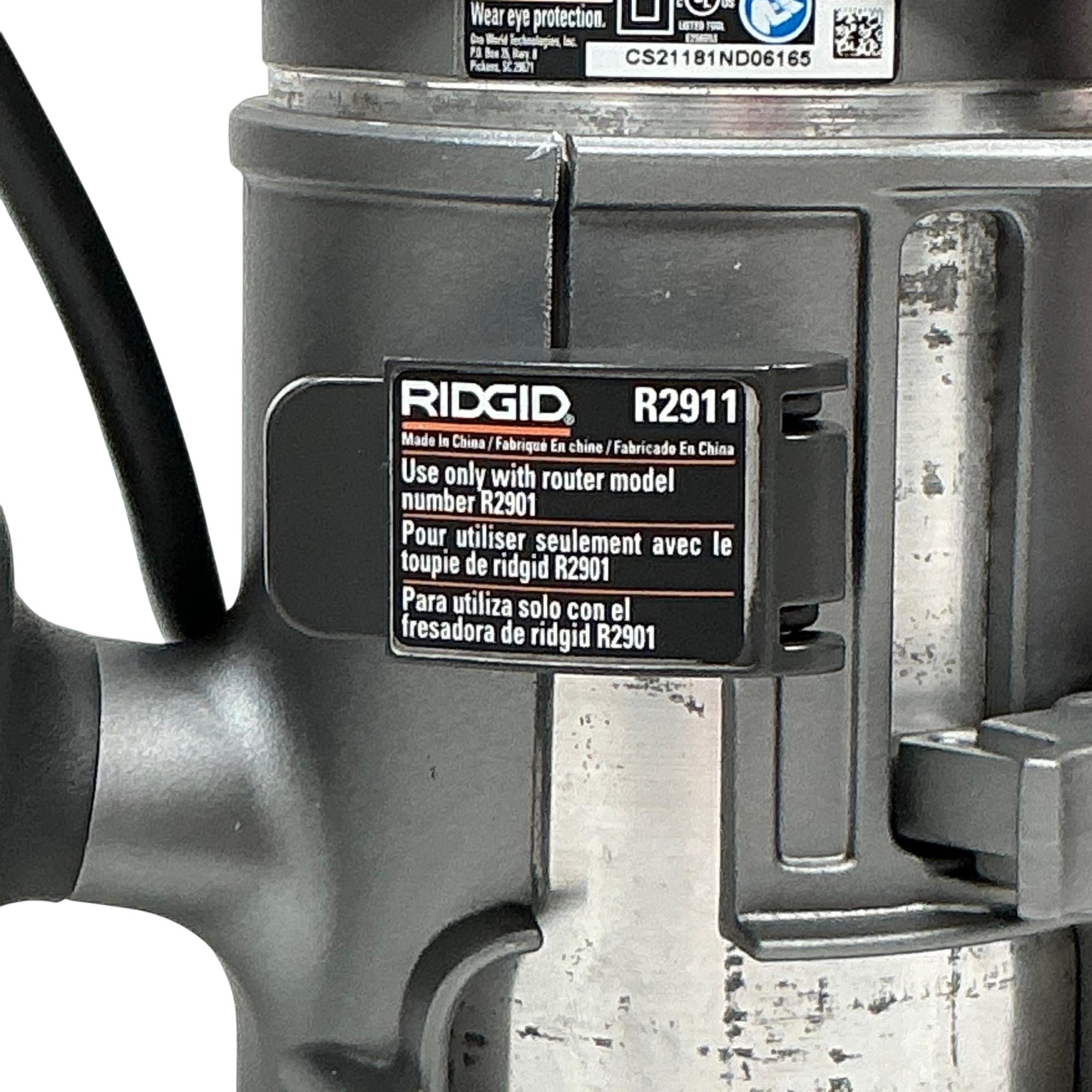 RIDGID R2911 11 Amp 2 HP 1/2 in. Corded Fixed Base Router features a durable magnesium construction designed for heavy-duty woodworking tasks. This fixed base router operates with a powerful 11 amp motor capable of delivering 2 horsepower, offering precise and reliable performance for trimming, shaping, and routing materials. Its ergonomic design ensures greater control and efficiency during use, making it ideal for professional and DIY applications.