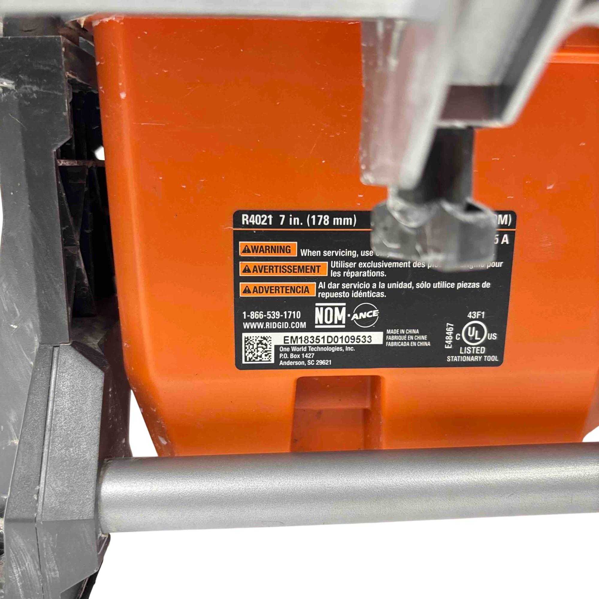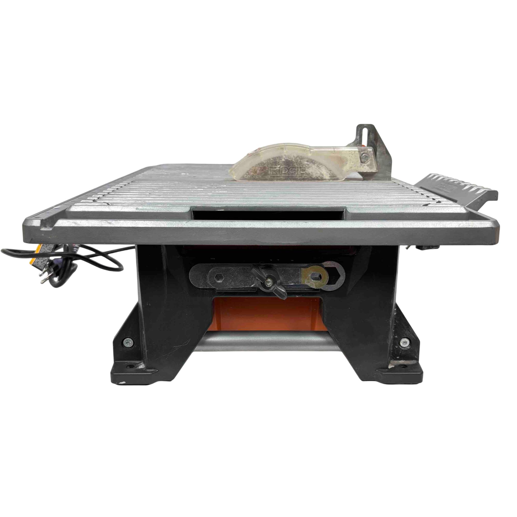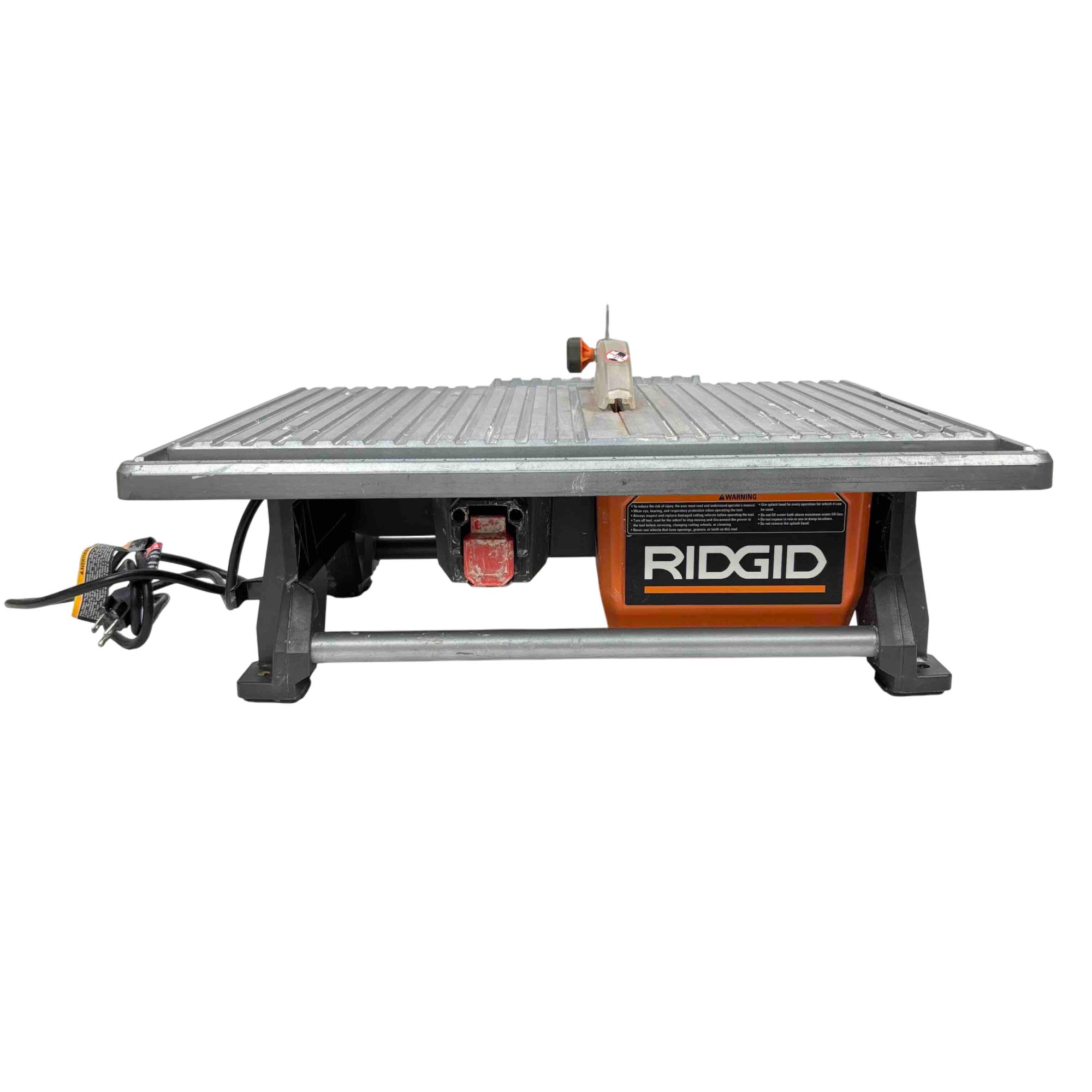 Effortlessly cut tiles with precision using the RIDGID R4021 7-inch Table Top Wet Tile Saw. This powerful, compact saw is ideal for DIYers and professionals alike, offering an easy-to-transport design and reliable results on every job. With its corrosion-resistant tabletop and robust motor, this tool makes straight, accurate cuts on a variety of tile materials.