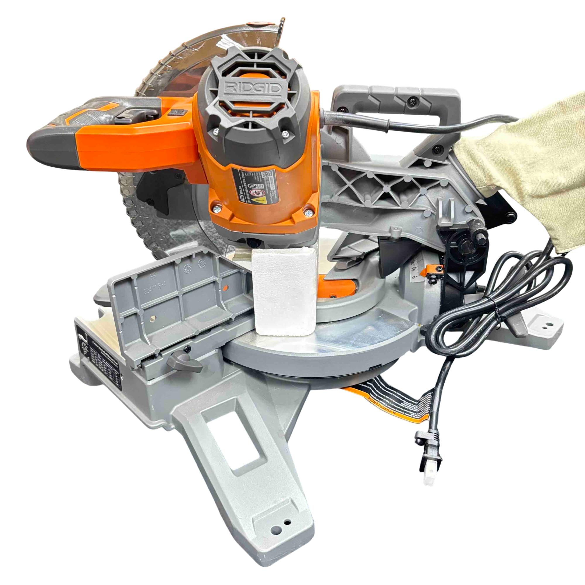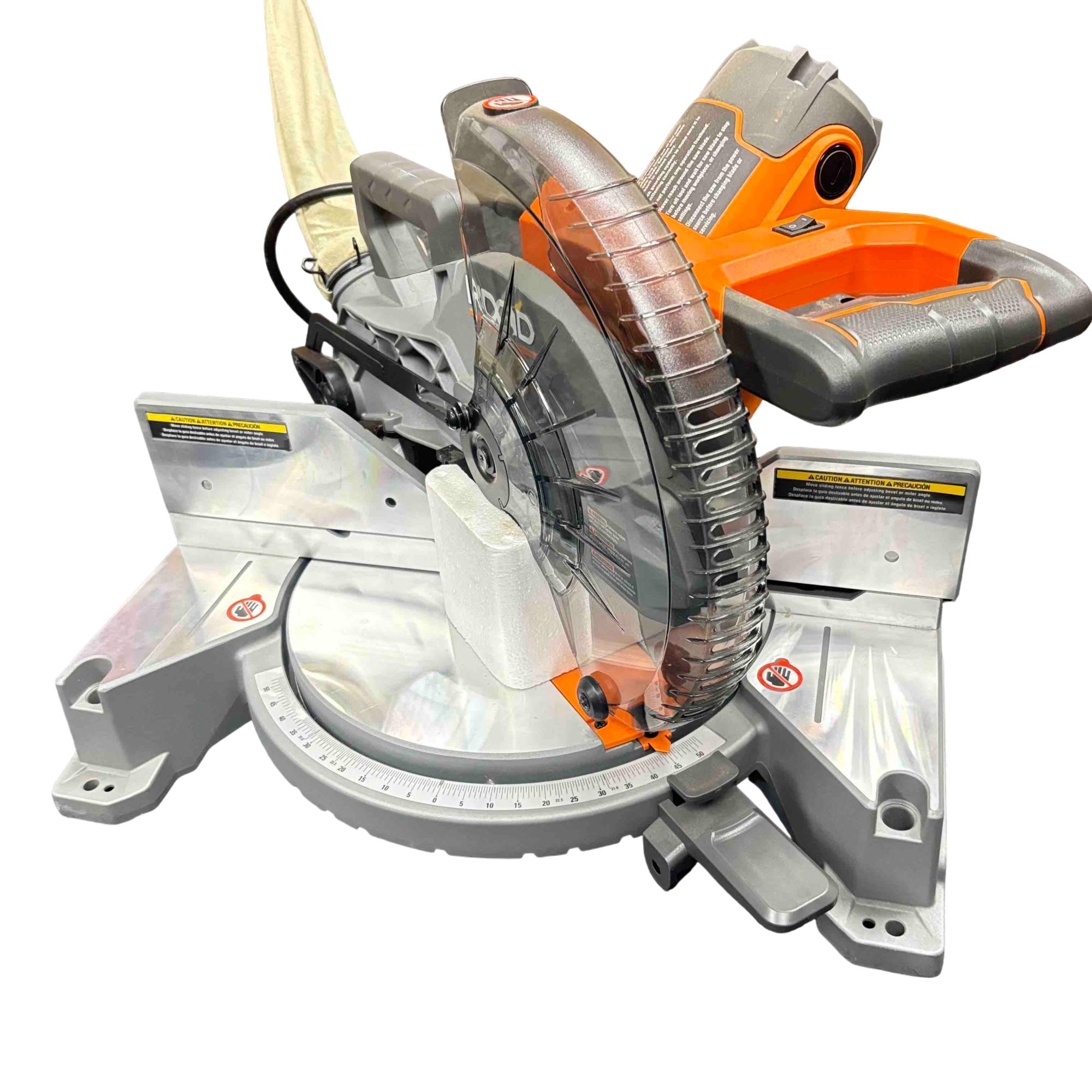 Unleash precision and power with the RIDGID R4113 15 Amp 10 in. Compound Miter Saw. Perfect for any woodworking project, this saw features an integrated laser for cutting accuracy and a dust collection bag to keep your workspace clean. Its robust design ensures reliability and ease of use, making it an essential tool for both professionals and DIY enthusiasts.