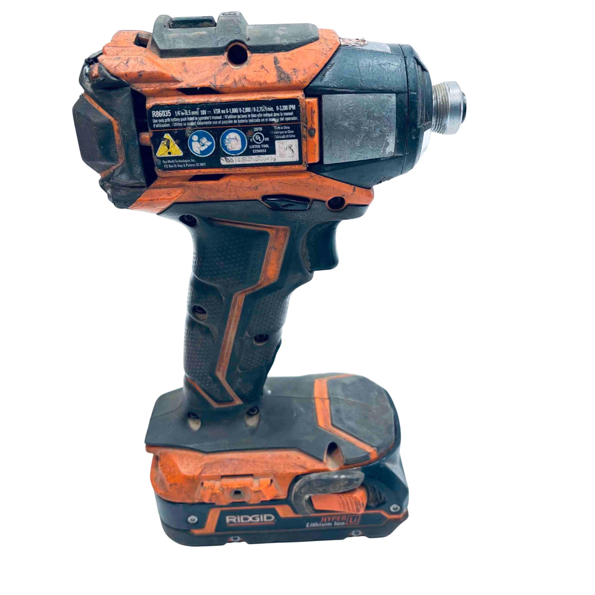 RIDGID R86035 18V Hyper Lithium-Ion Cordless Impact Driver with Rapid Max Multi-Chemistry Charger features a powerful brushless motor delivering up to 3,200 IPM and variable speeds of 0-1,000/0-2,000/0-2,750 RPM for versatile fastening tasks. Designed for compatibility with multiple battery chemistries, this black and orange impact driver includes a rapid max charger, making it ideal for professional and DIY applications requiring reliable cordless power tools.