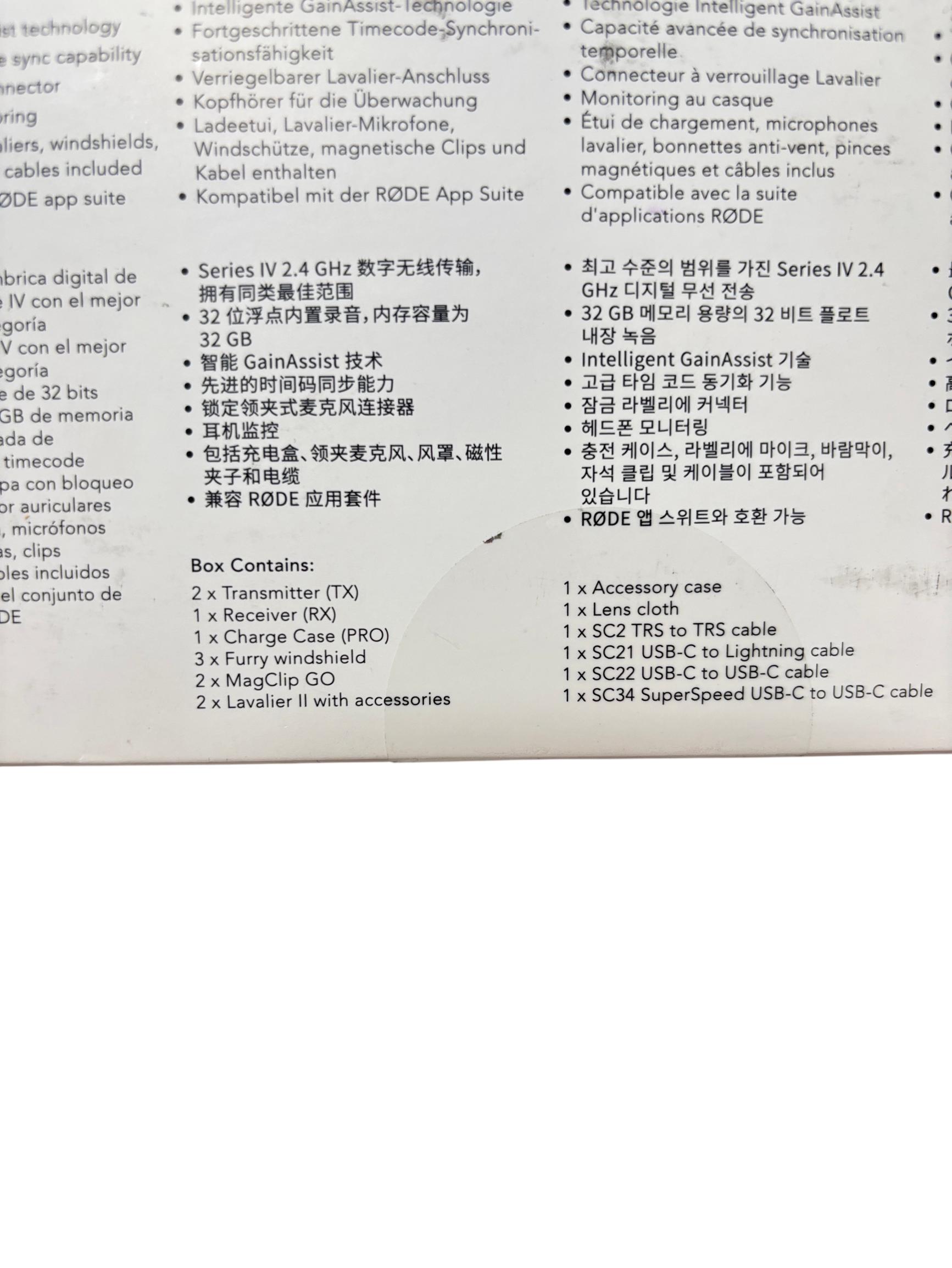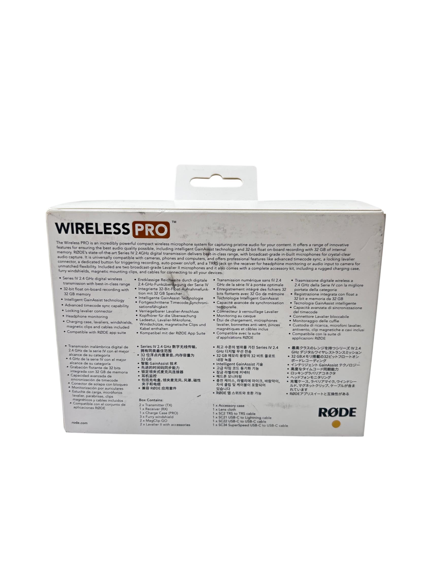 RODE Wireless PRO Compact Wireless Microphone System features advanced 32-bit float recording and precise timecode synchronization for professional-grade audio capture. This Series IV 2.4 GHz system includes intelligent GainAssist technology and secure locking lavalier connectors, offering reliable wireless performance compatible with cameras and smartphones.