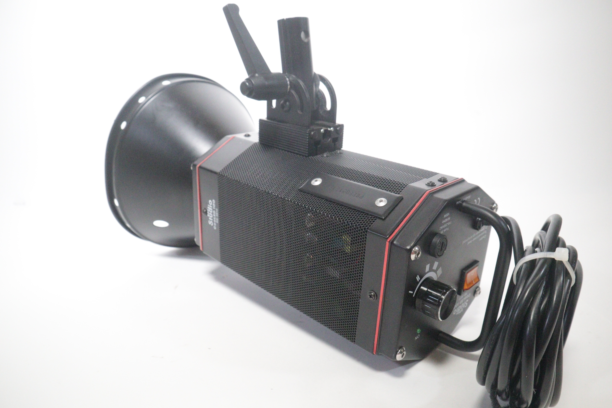 Accepts standard softbox (compatible with Bowens mount)110V-230V AC 50 or 60 HzSize: 10.8 x 5 x 8.8 in. (27.3 x 12.7 x 22.2cm) without reflector