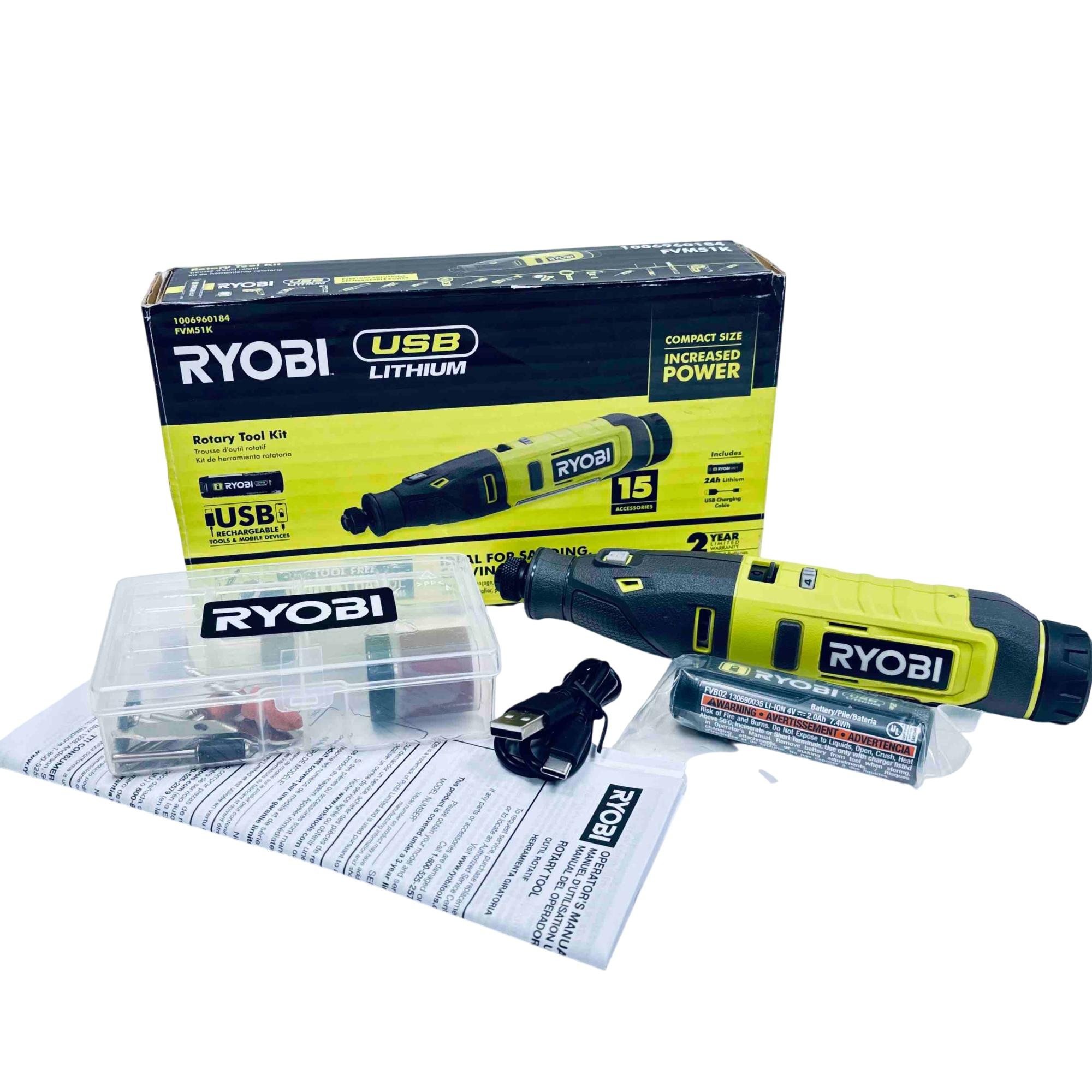 The RYOBI FVM51K USB Lithium 4V Rotary Tool Kit delivers precision and versatility for any DIY project. Featuring a compact and ergonomic design, this rotary tool is ideal for detailed work and comes with convenient USB charging capability. Perfect for light cutting, sanding, polishing, and more, it’s an essential addition to any craftsmans toolkit.