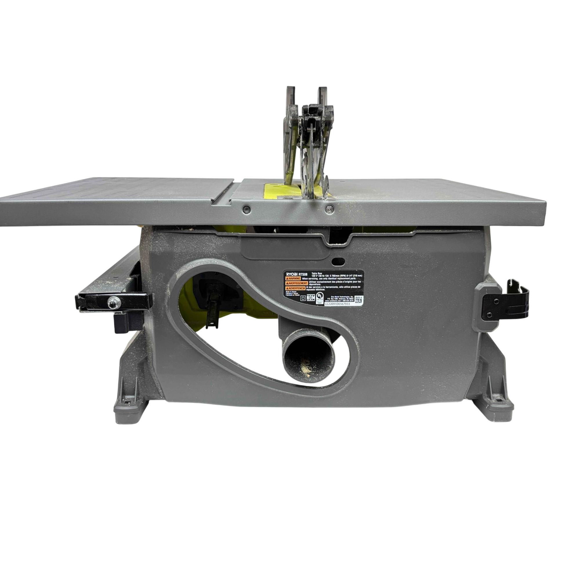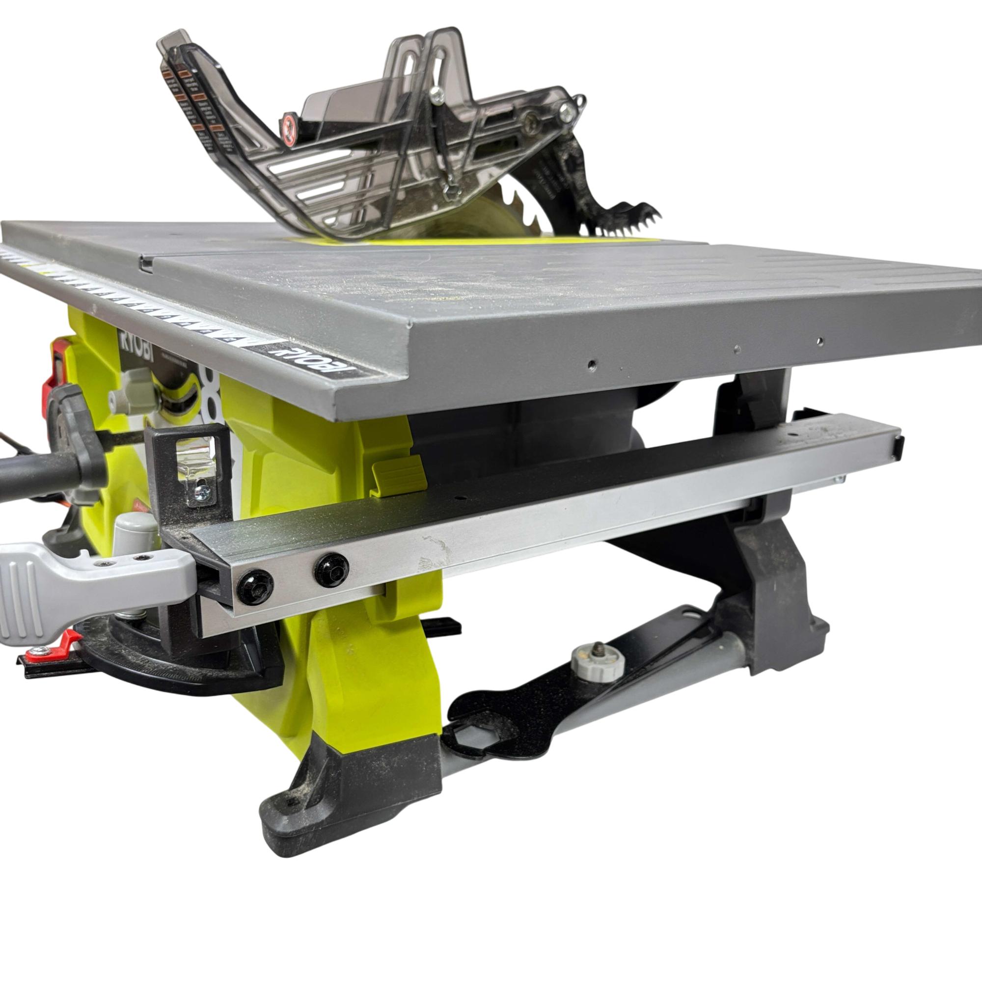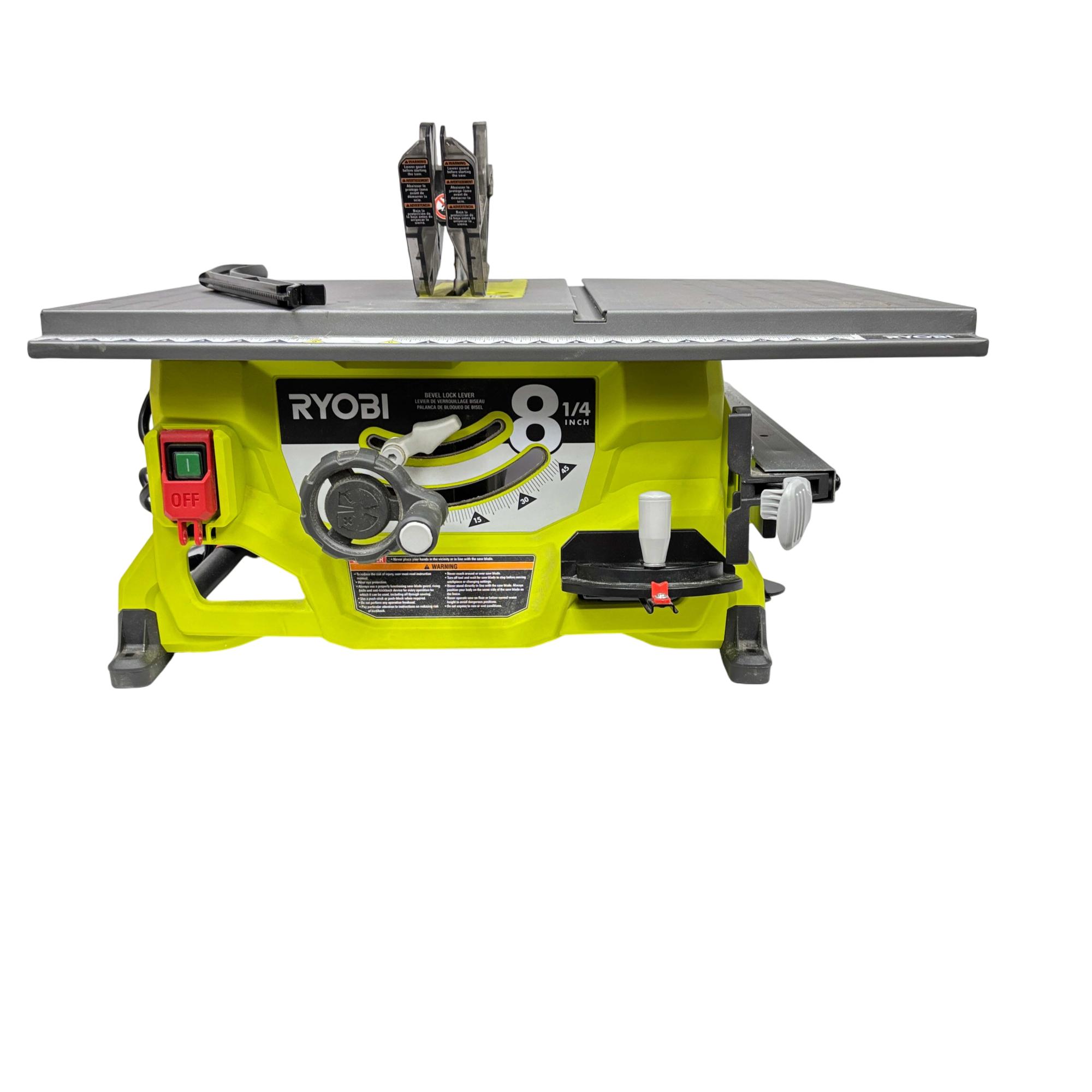 This RYOBI RTS08 13 Amp 8-1/4 in. Compact Portable Corded Jobsite Table Saw delivers powerful performance with a robust 13 amp motor and an 8-1/4 inch blade designed for precise cutting tasks. This portable table saw features a compact design with a black and yellow handle, making it easy to transport and ideal for jobsite applications requiring both durability and accuracy.