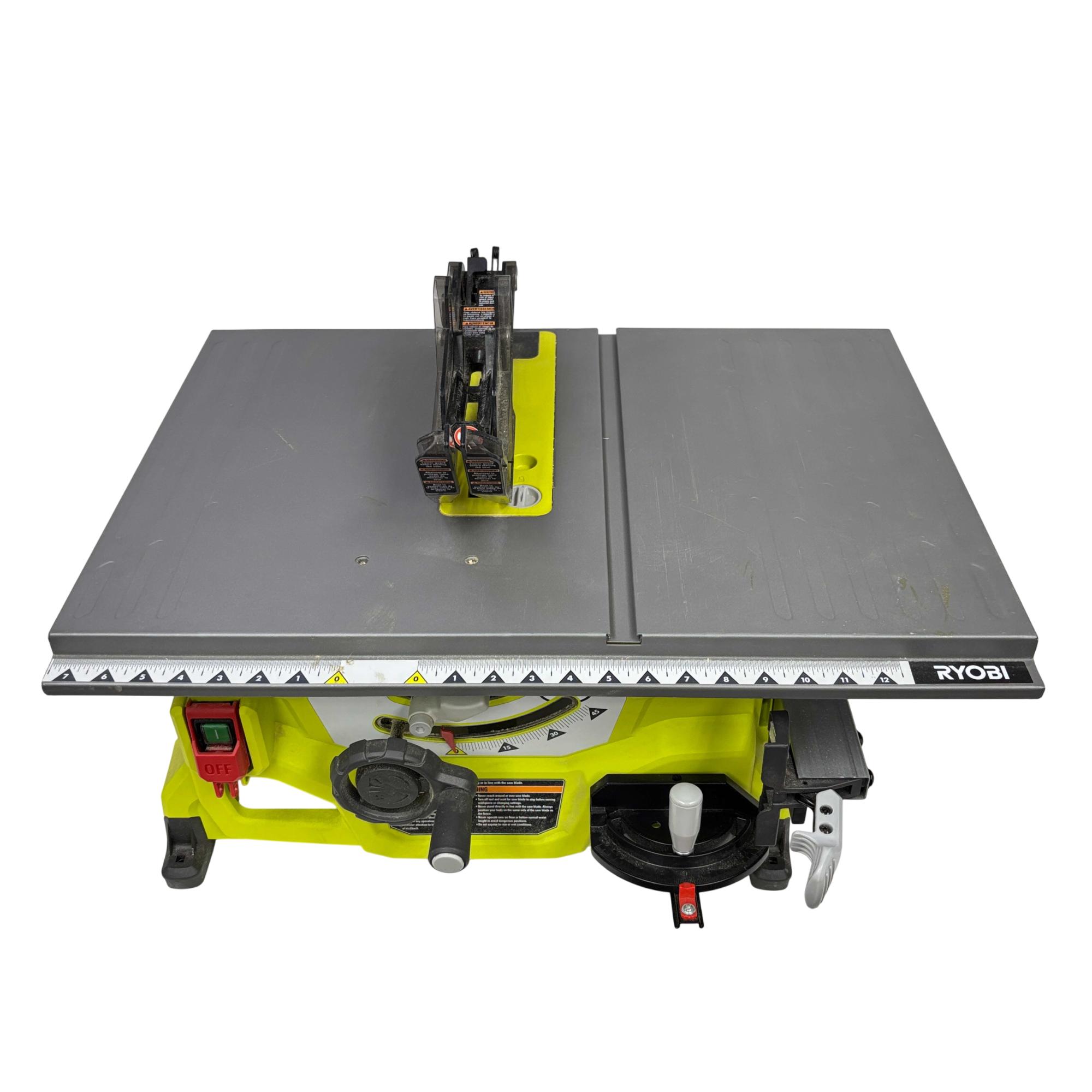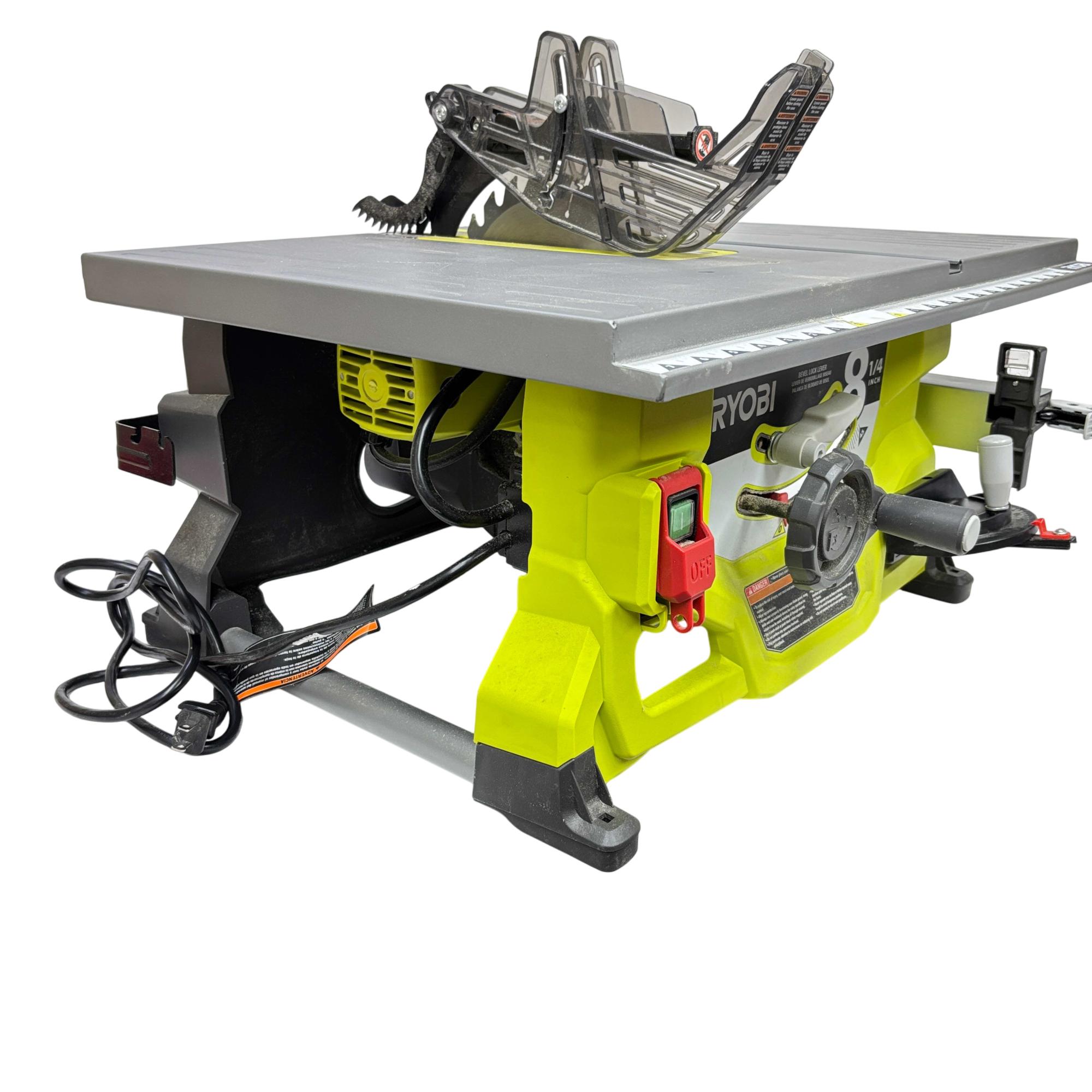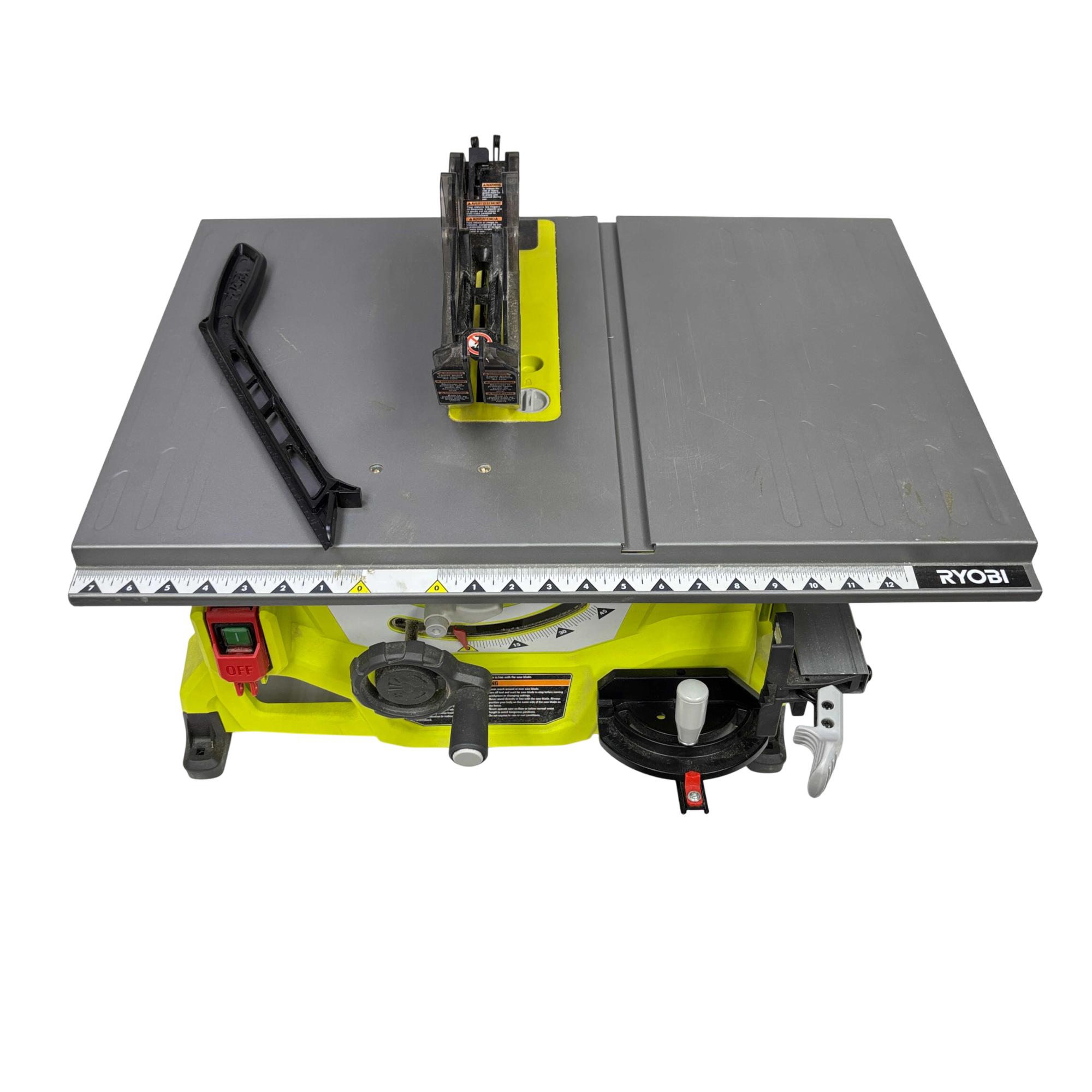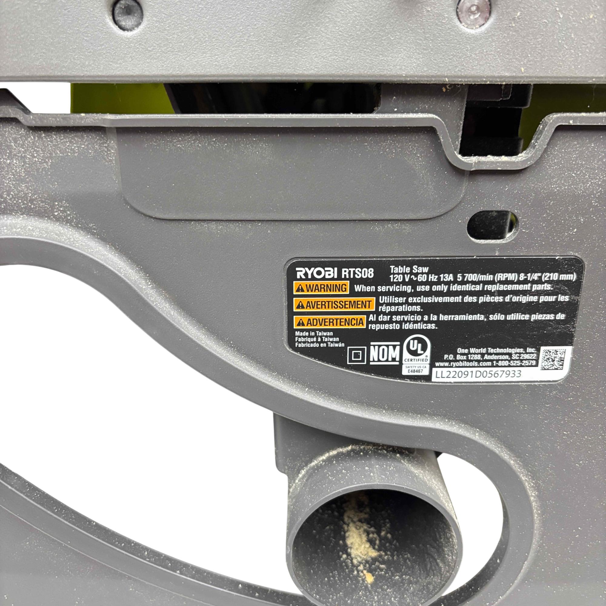 This RYOBI RTS08 13 Amp 8-1/4 in. Compact Portable Corded Jobsite Table Saw delivers powerful performance with a robust 13 amp motor and an 8-1/4 inch blade designed for precise cutting tasks. This portable table saw features a compact design with a black and yellow handle, making it easy to transport and ideal for jobsite applications requiring both durability and accuracy.