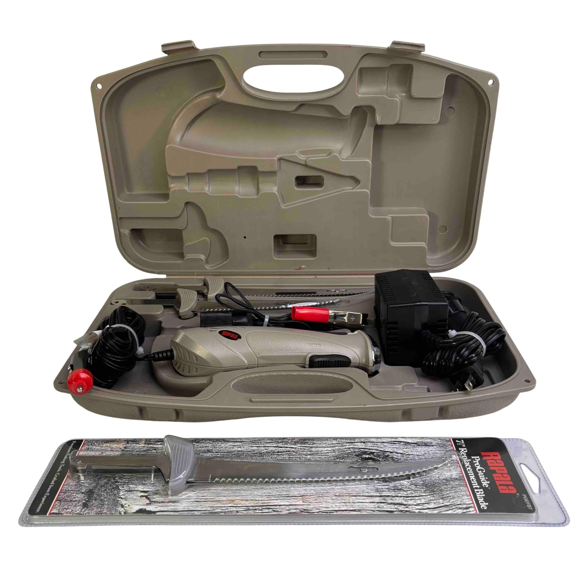 Enhance your fishing experience with the Rapala ProGuide Electric Fillet Knife Set. This top-tier set includes a 7" replacement blade and is designed to make filleting fish effortless with precision and ease. Featuring a powerful motor, ergonomic design, and durable components, its a must-have tool for any fishing enthusiast looking to streamline their catch processing.