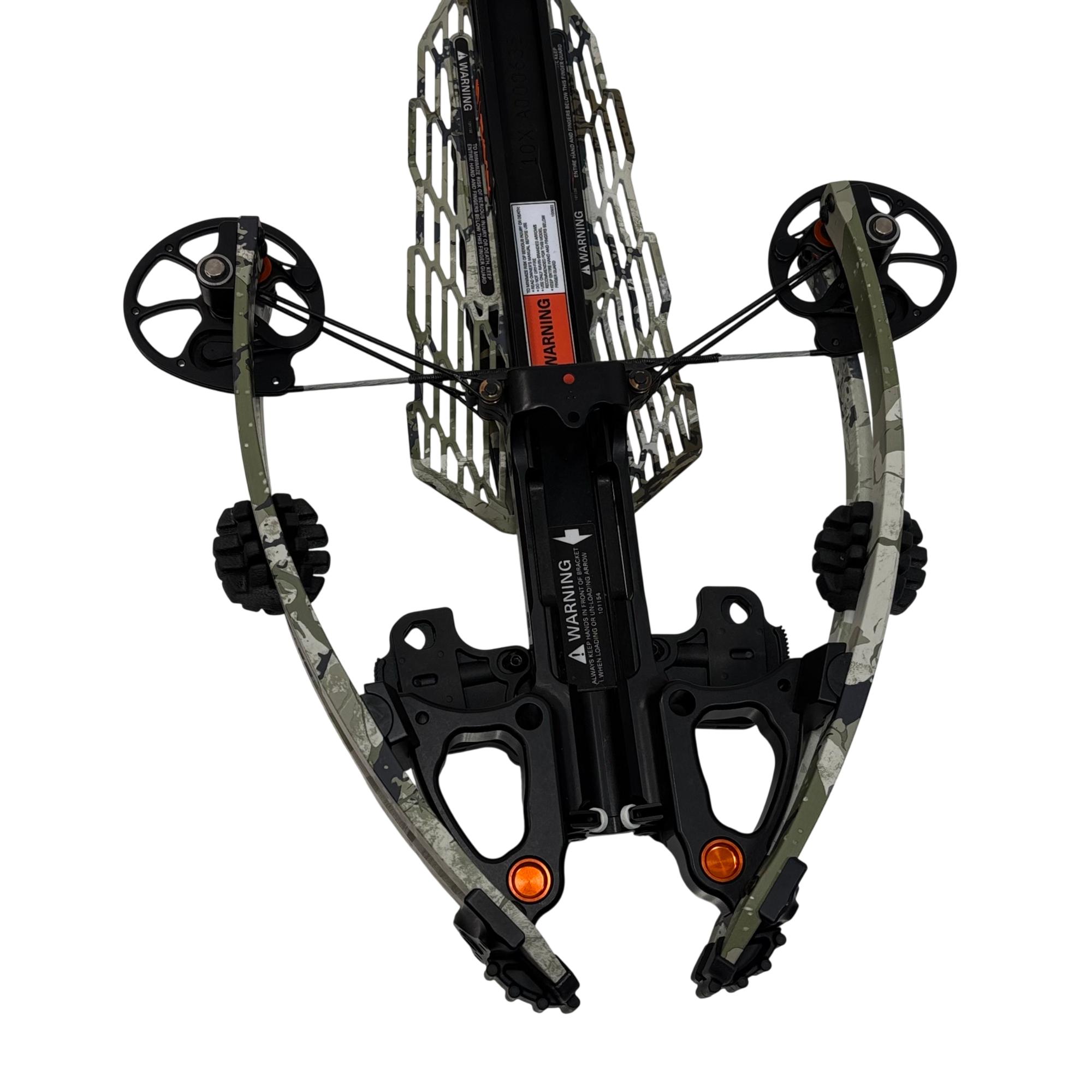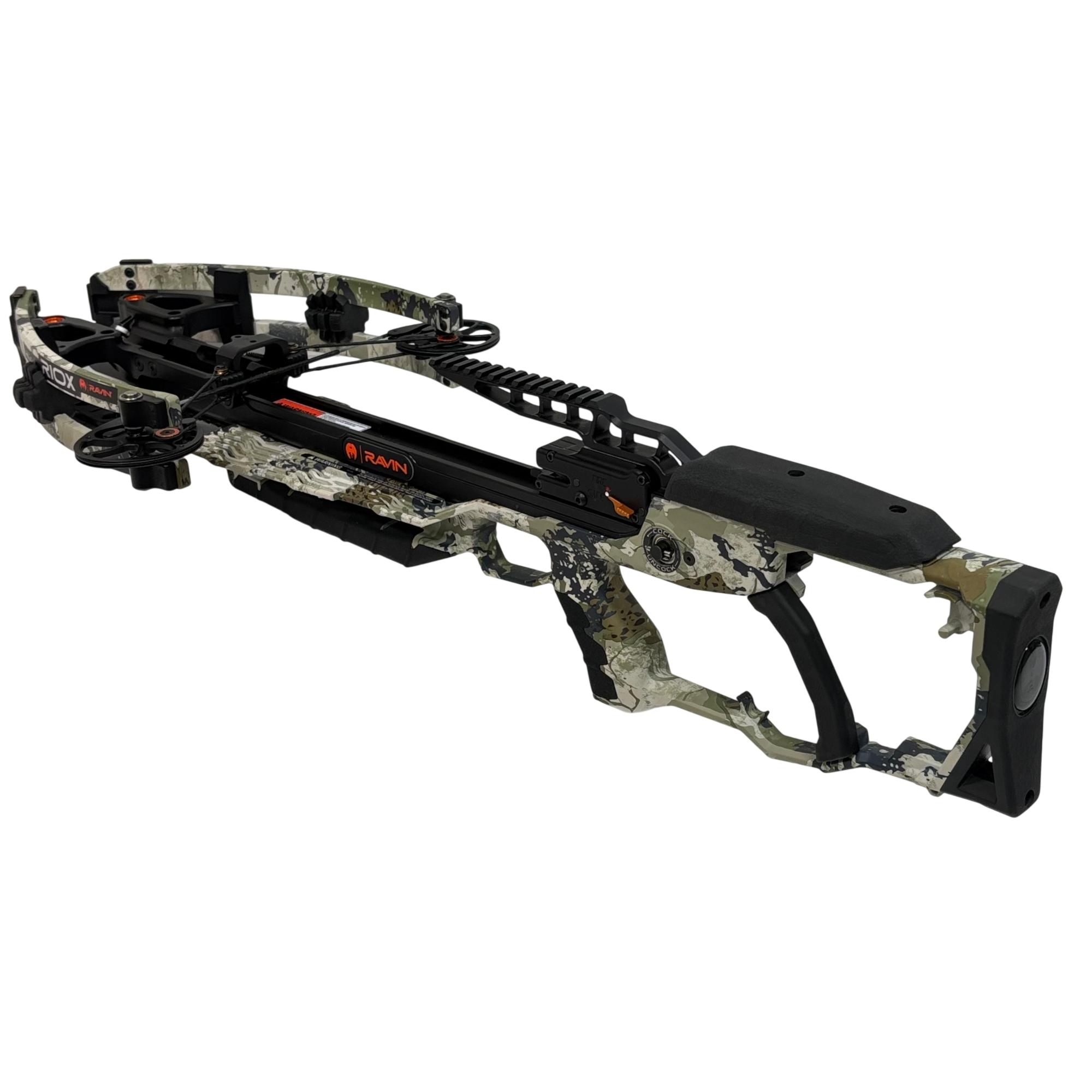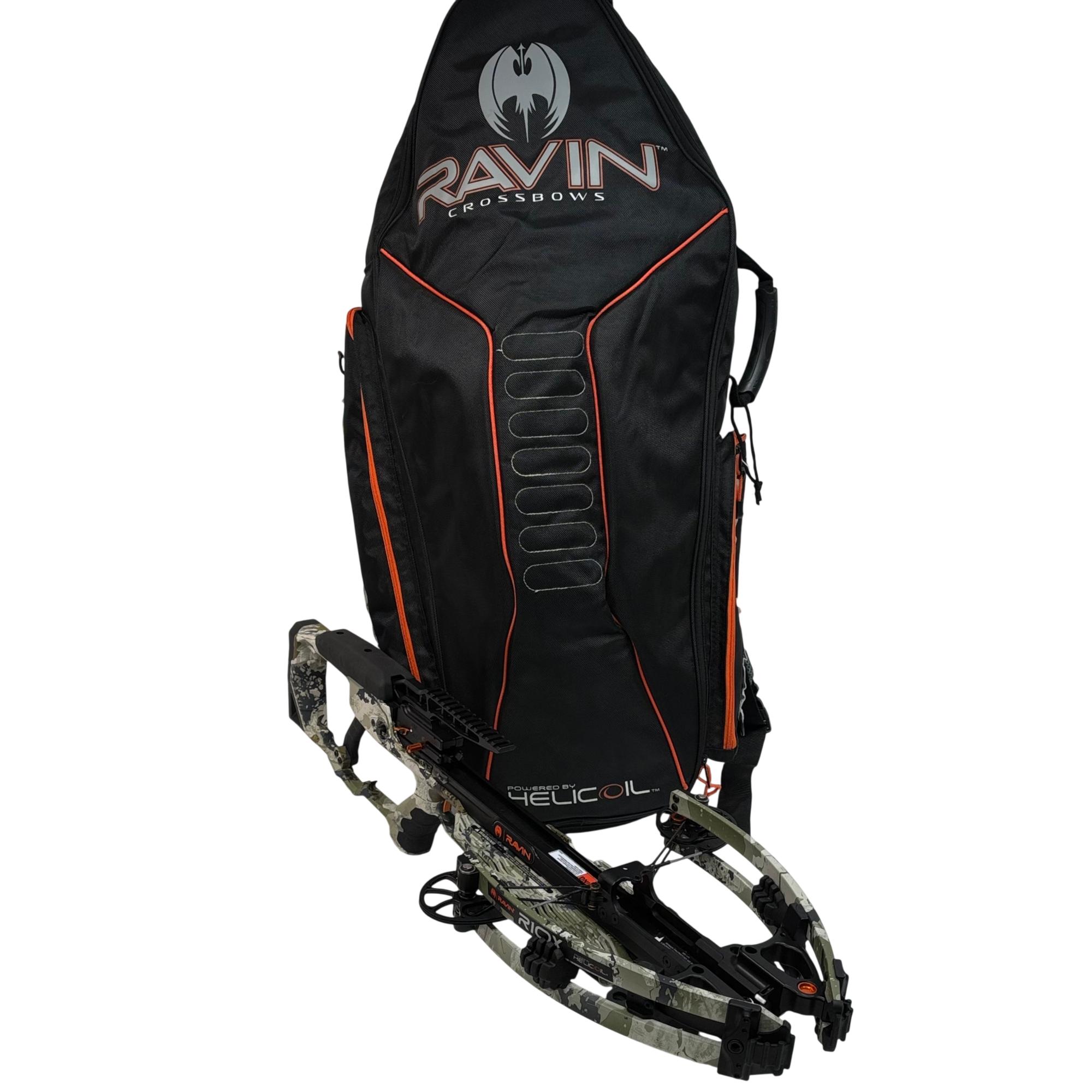 Ravin R10X Crossbow is a high-performance crossbow designed with advanced engineering for precision and power. Featuring a camo finish and ergonomic black handle, it ensures superior accuracy and ease of use. The included soft case is durable and designed to offer reliable protection during transport, with a black and orange backpack style for convenient carrying.