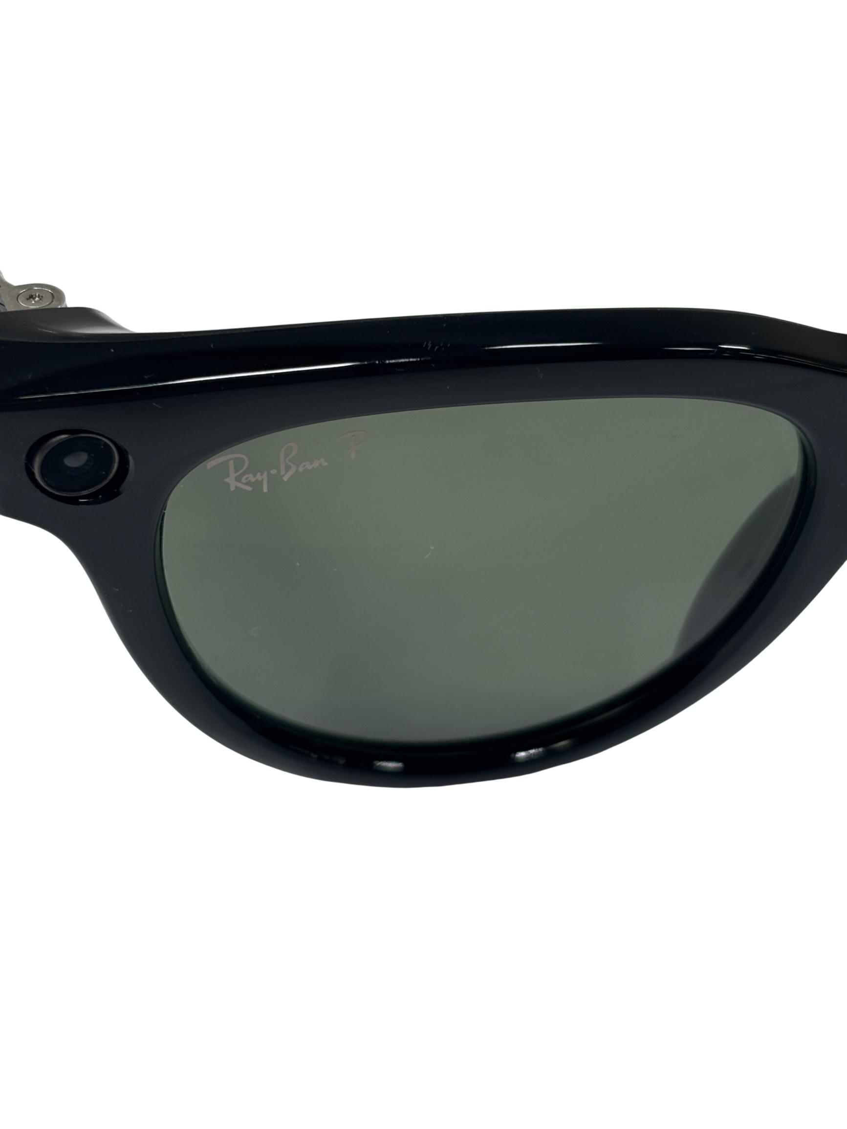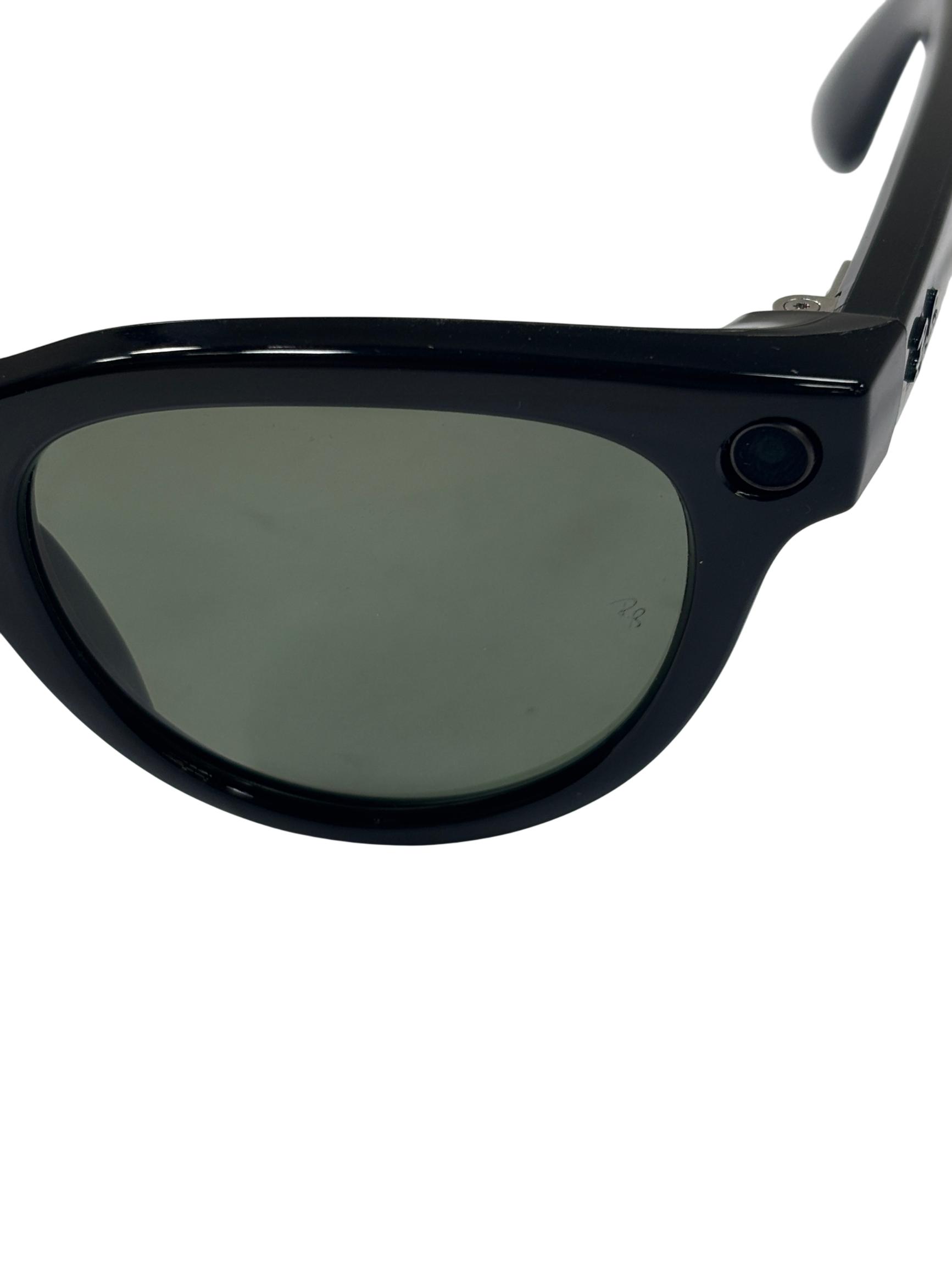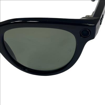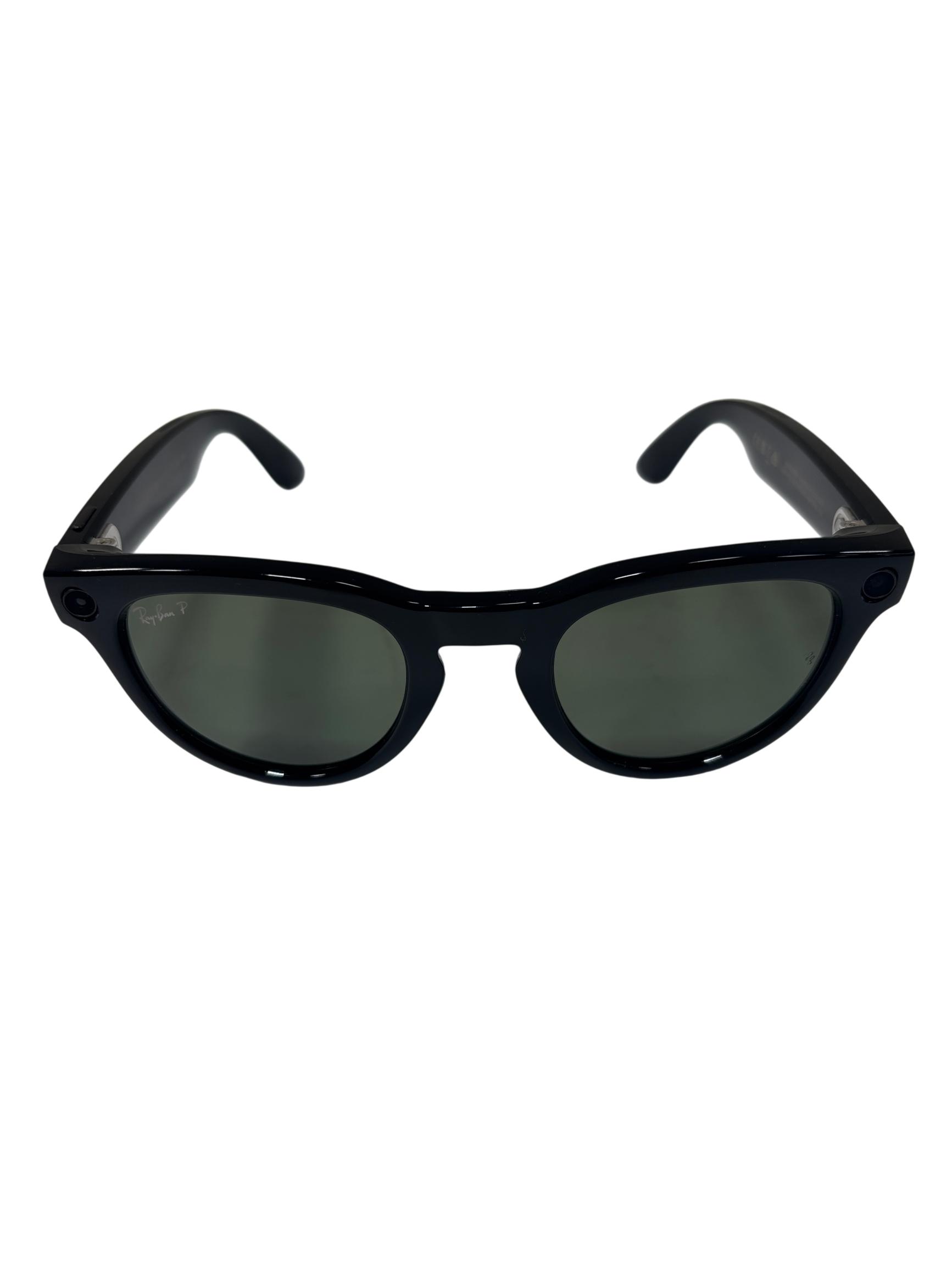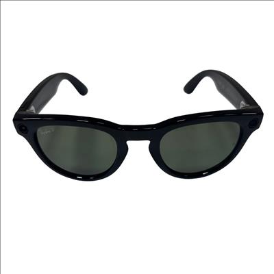Ray-Ban Meta Headliner Smart Glasses (Gen 1) feature a sleek shiny black frame paired with green lenses designed for a stylish and modern look. These smart glasses integrate advanced AI technology to support hands-free calling, listening, and livestreaming functions with clear audio performance. Crafted to combine fashionable eyewear with innovative features, they offer both functionality and style in one seamless accessory.