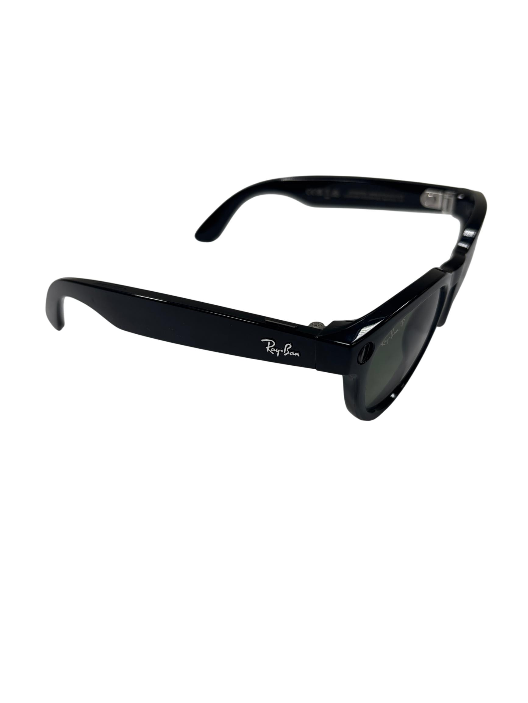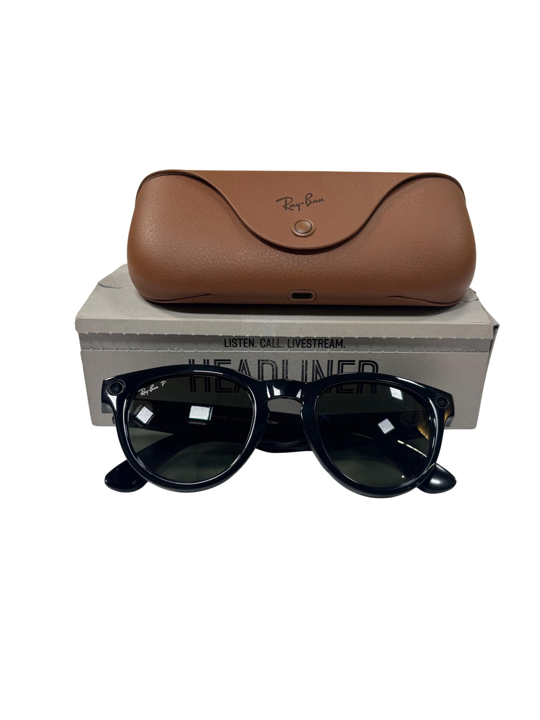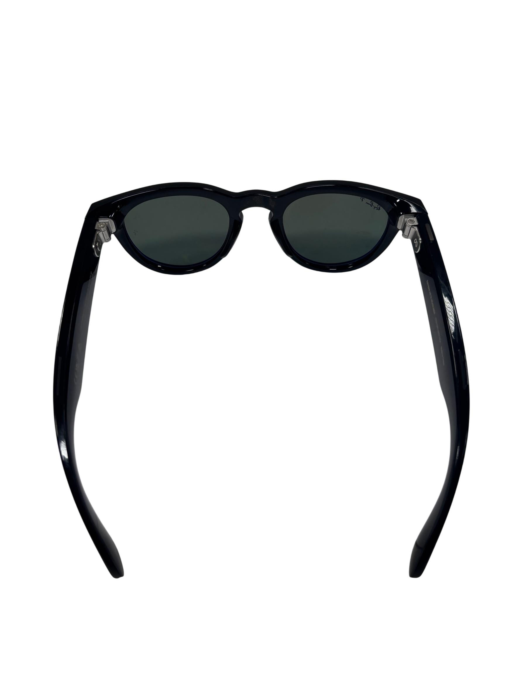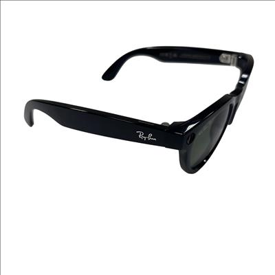 Ray-Ban Meta Headliner Smart Glasses (Gen 1) feature a sleek shiny black frame paired with green lenses designed for a stylish and modern look. These smart glasses integrate advanced AI technology to support hands-free calling, listening, and livestreaming functions with clear audio performance. Crafted to combine fashionable eyewear with innovative features, they offer both functionality and style in one seamless accessory.