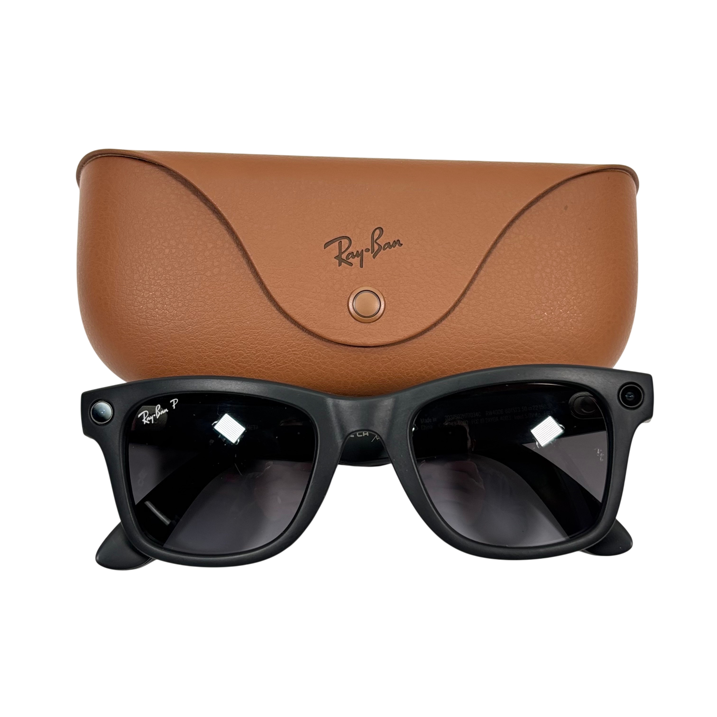 Meta RW4006 Meta Glasses combine the iconic Ray-Ban Wayfarer design with advanced smart technology developed by Meta and EssilorLuxottica. Featuring polarized lenses for superior glare reduction and integrated cameras discreetly embedded in the frame, these smart glasses offer seamless wireless connectivity with a 5V charging input. The set includes the stylish glasses and a premium Ray-Ban leather protective case, making them ideal for tech-savvy users seeking a blend of classic style and modern functionality.