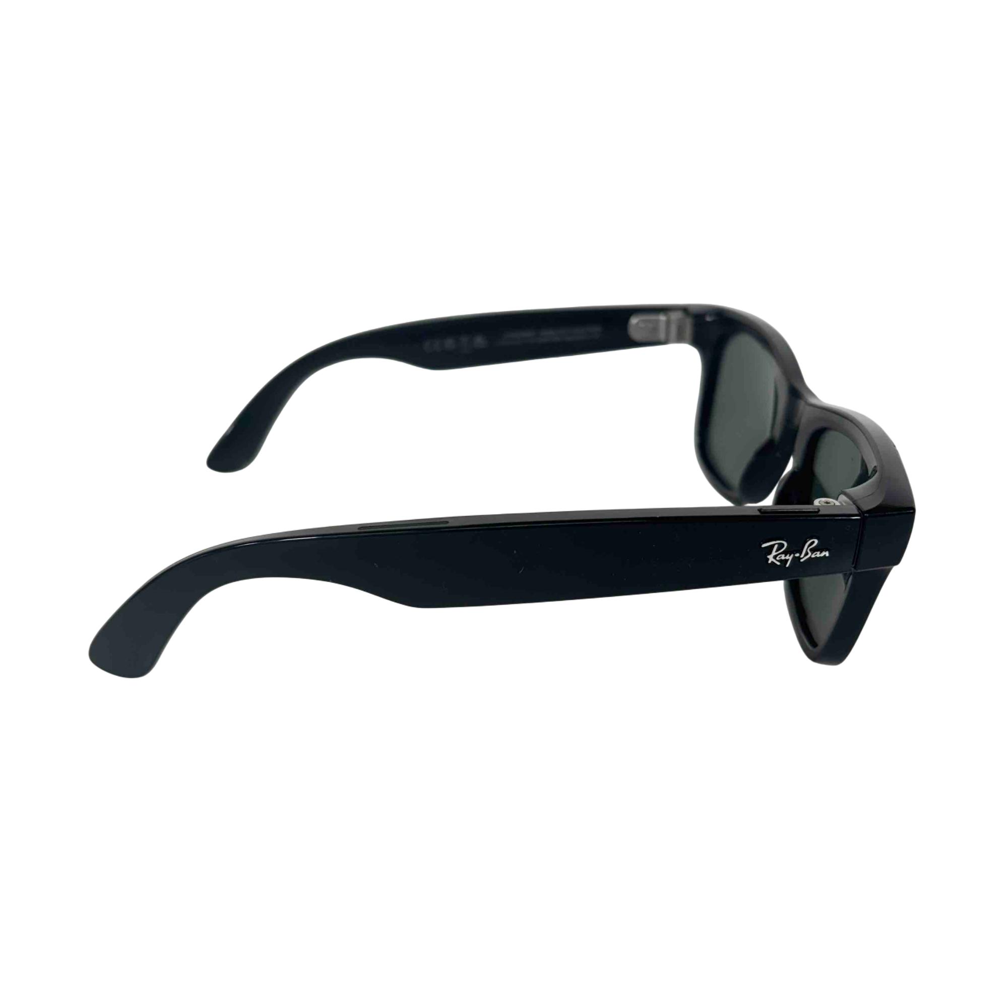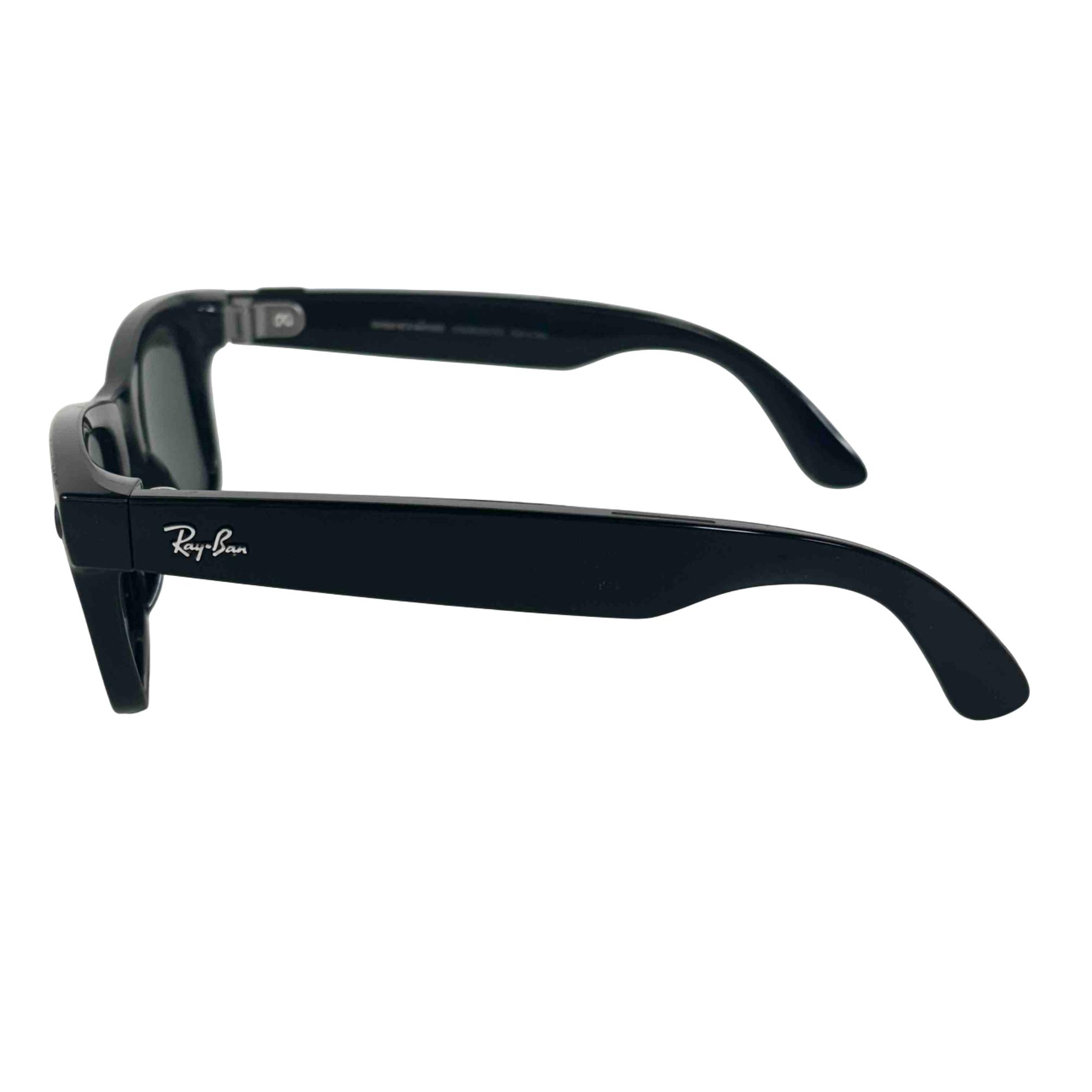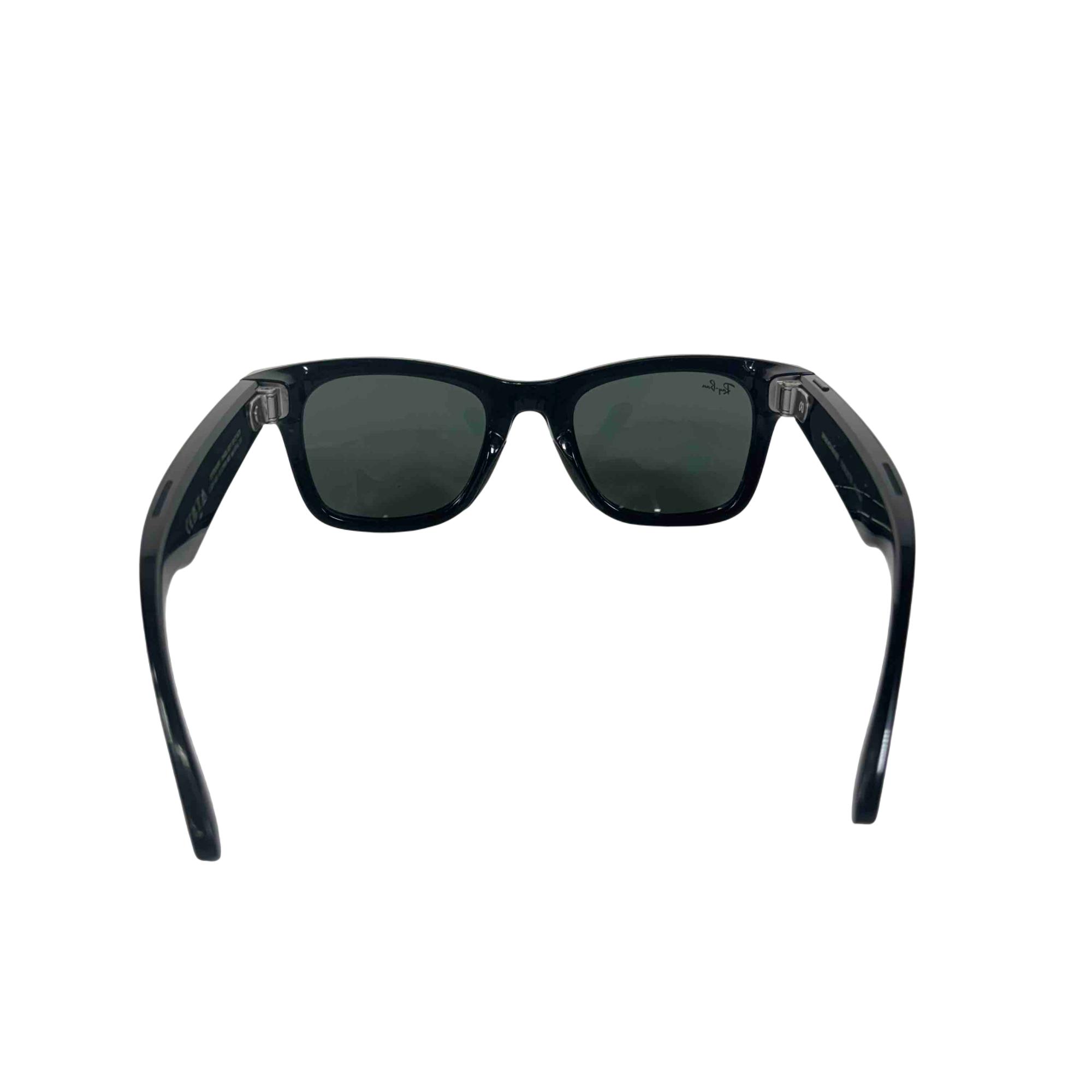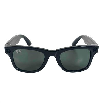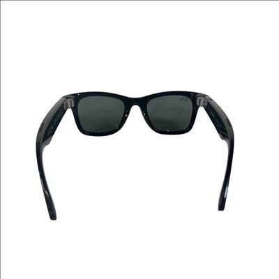 Ray-Ban Meta Wayfarer smart glasses combine classic matte black frames with gradient graphite sun lenses offering 100% UVA/UVB protection. These AI-powered glasses feature a 12 MP ultra-wide camera for high-quality photos and video, open-ear Bluetooth speakers, and a 5-mic array for clear audio. Built-in Meta AI allows hands-free voice interaction, real-time translation, and smart assistant features like reminders and landmark info. Stay connected with messaging, calling, and music streaming capabilities. Equipped with 32GB of storage, Wi-Fi 6, and Bluetooth 5.2, and compatible with iOS 15.2+ and Android 10+.