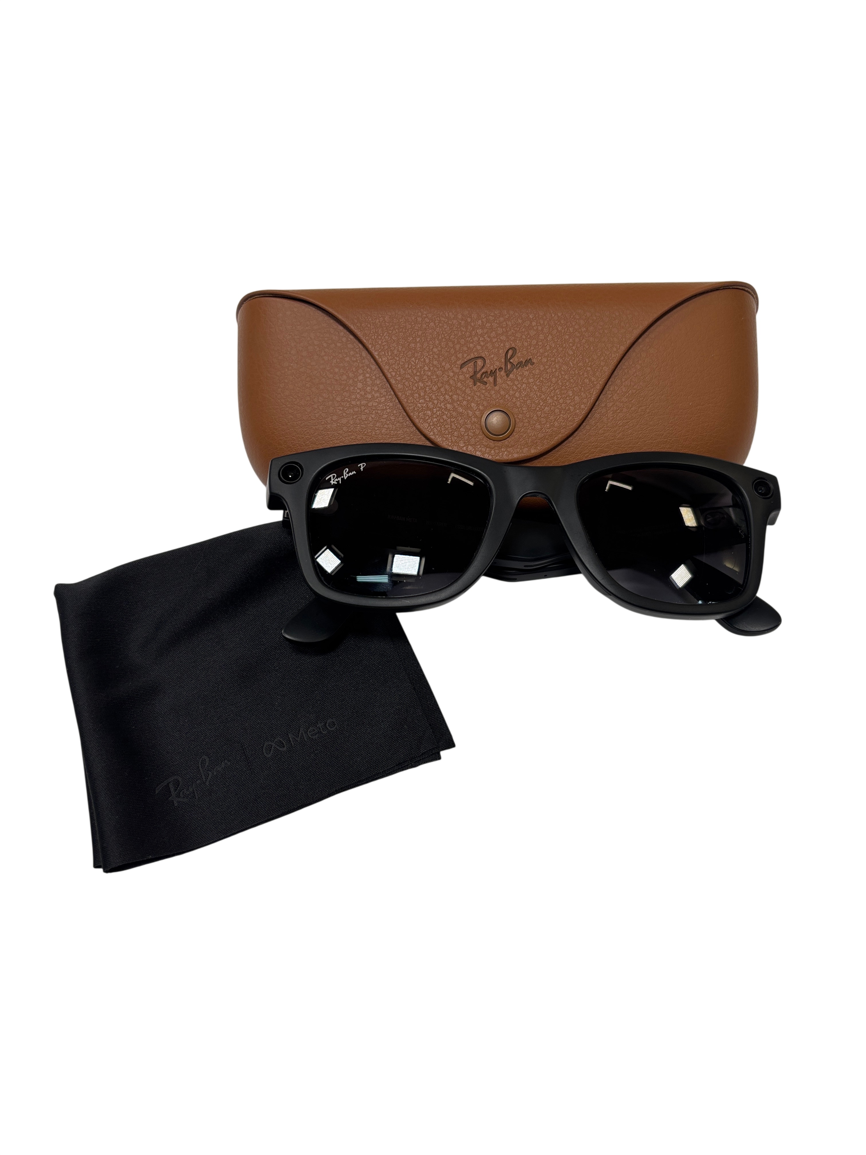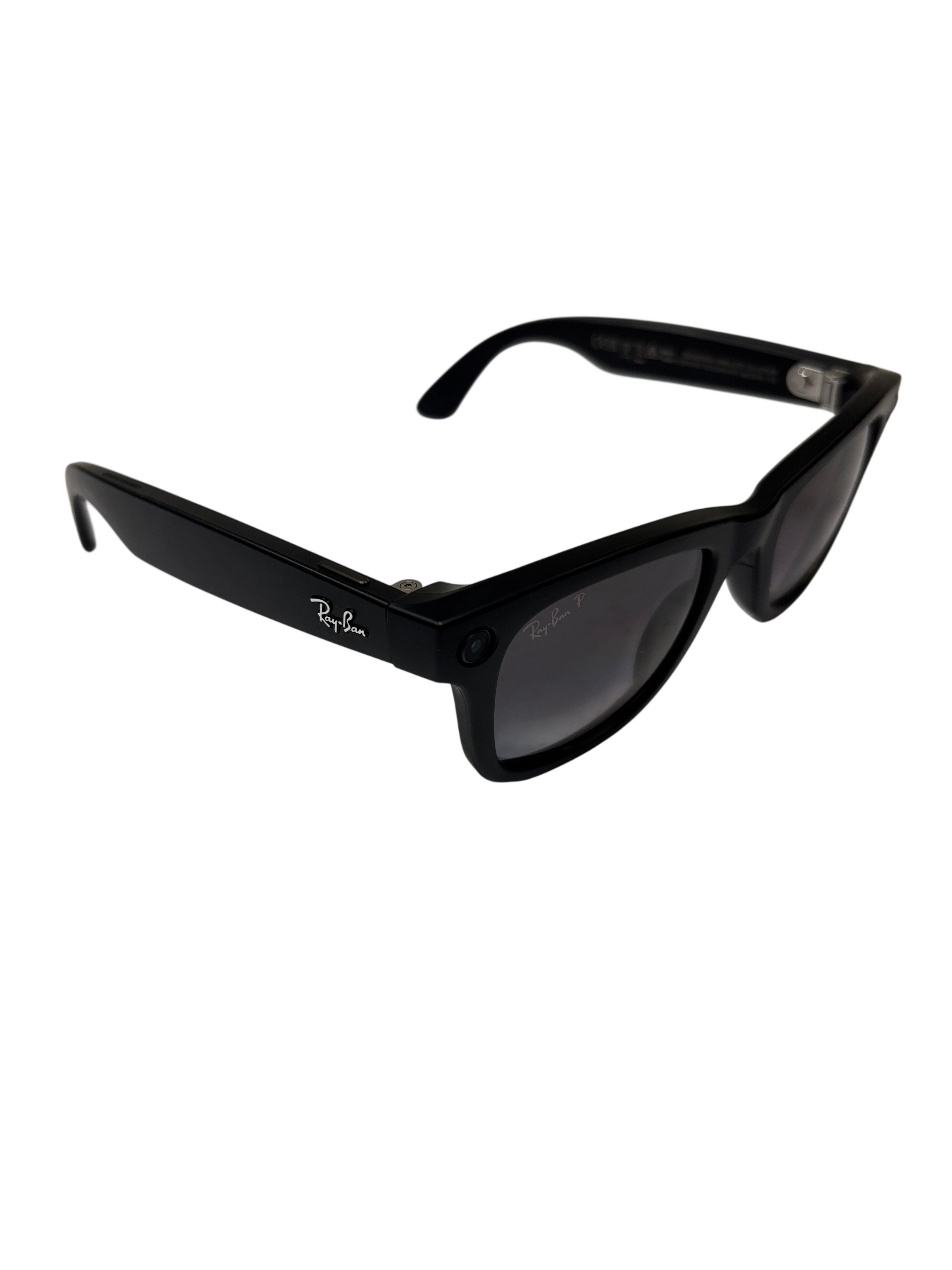 These unisex smart glasses feature a classic matte black Wayfarer frame with gradient lenses that provide full UVA/UVB protection. Equipped with a 12 MP ultra-wide camera, open-ear Bluetooth speakers, and a 5-mic array, they enable high-quality photos, clear audio, and hands-free voice interaction. Built-in AI supports real-time translation, reminders, and smart assistant functions, while connectivity options include messaging, calls, music streaming, Wi-Fi 6, and Bluetooth 5.2, with 32GB of storage for apps and media.