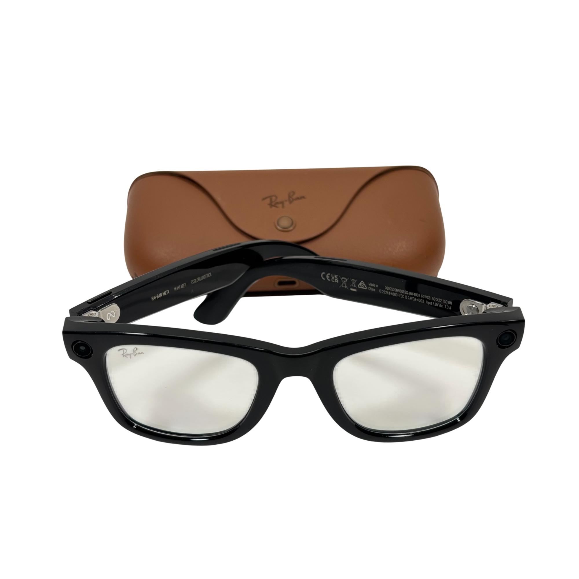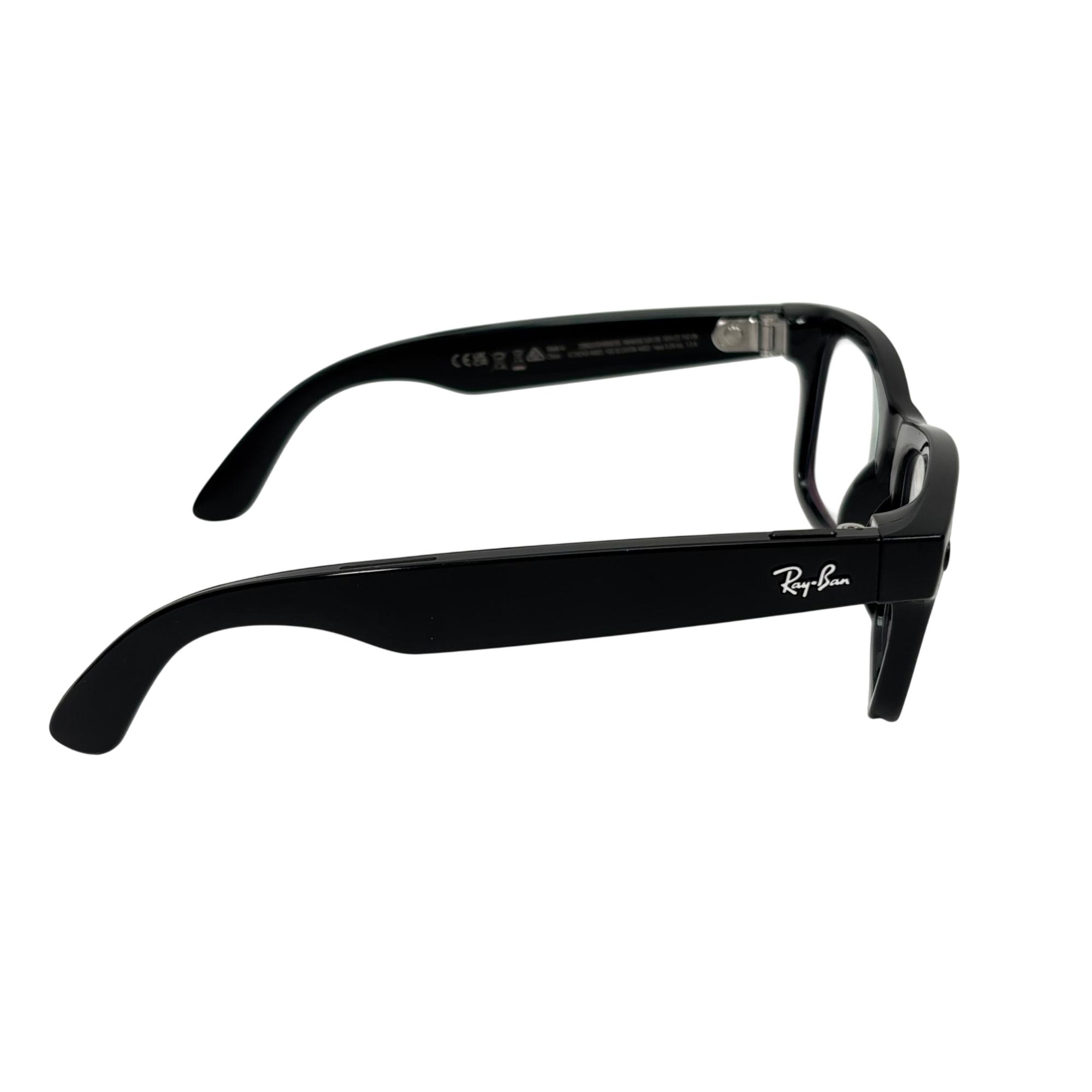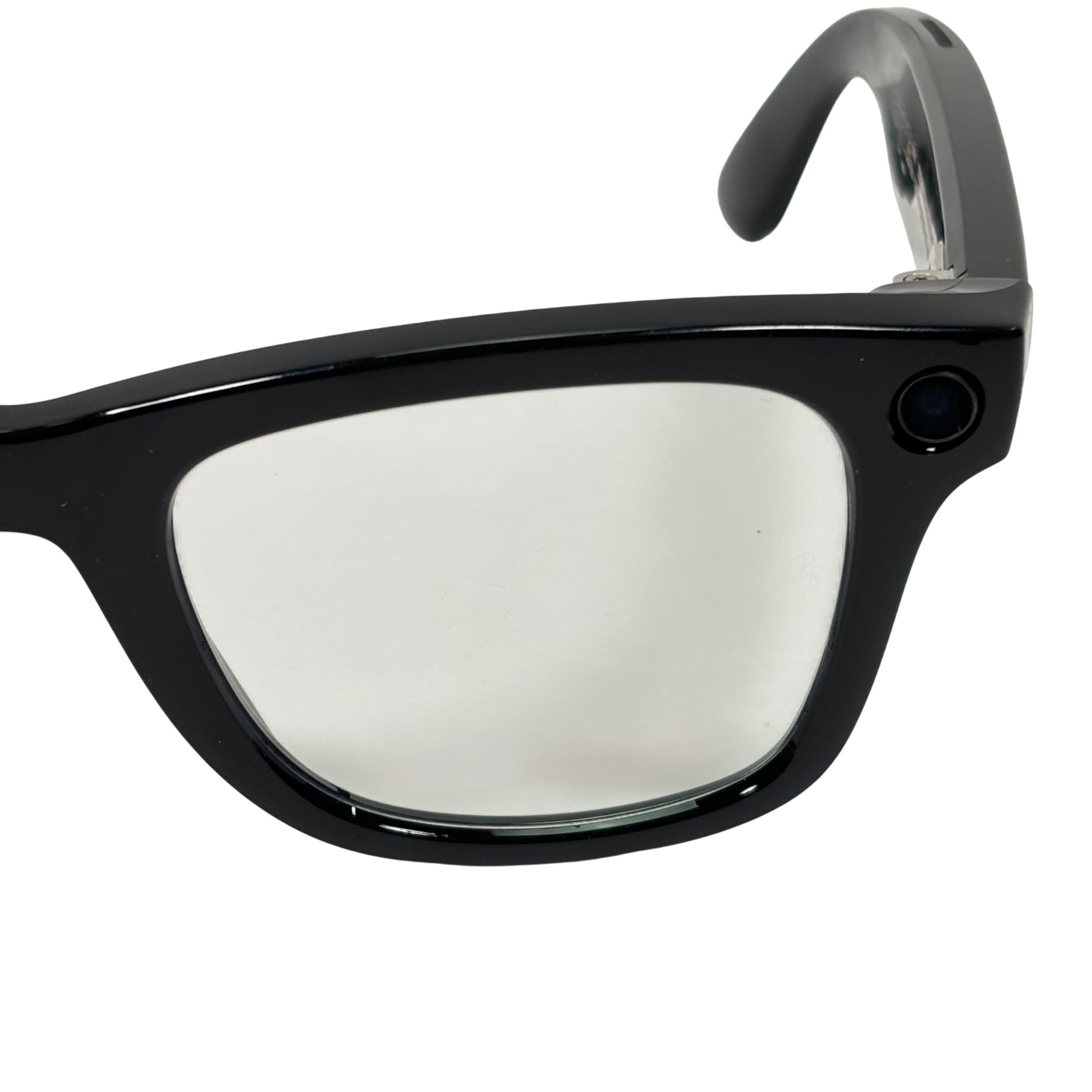 Ray-Ban Meta Wayfarer Smart Glasses feature a sleek matte black frame designed to combine classic Wayfarer style with modern smart technology. These glasses offer a seamless blend of fashion and function, incorporating advanced AI capabilities within a lightweight, comfortable design suitable for everyday use.