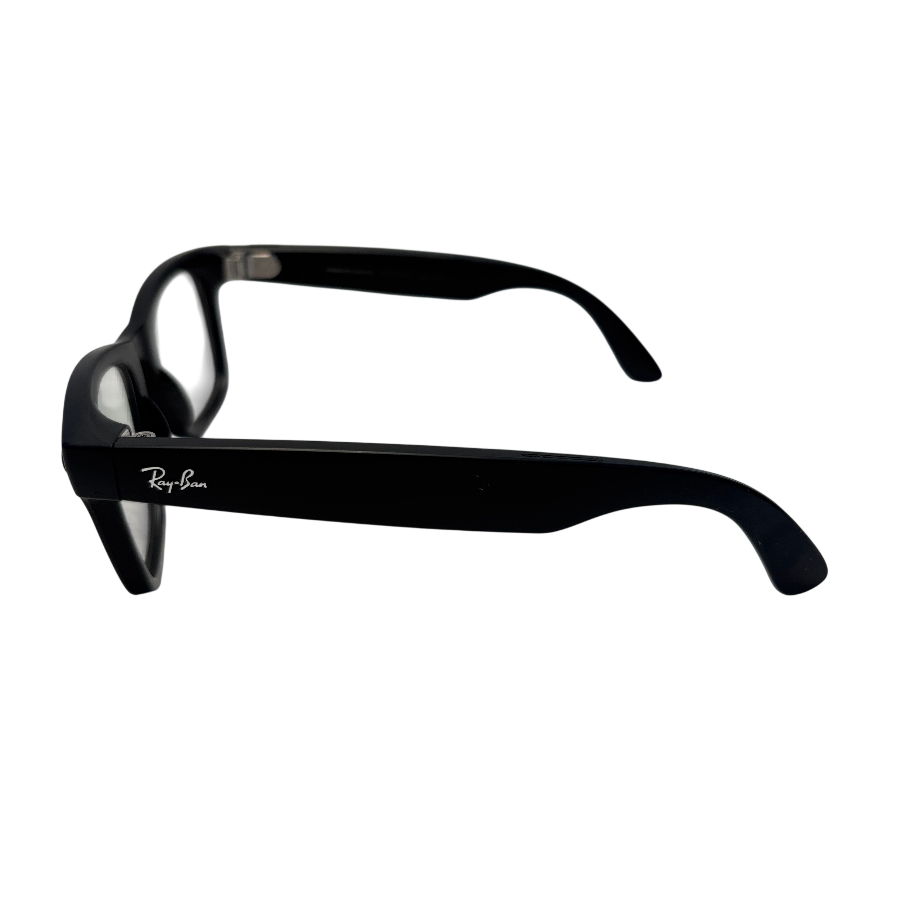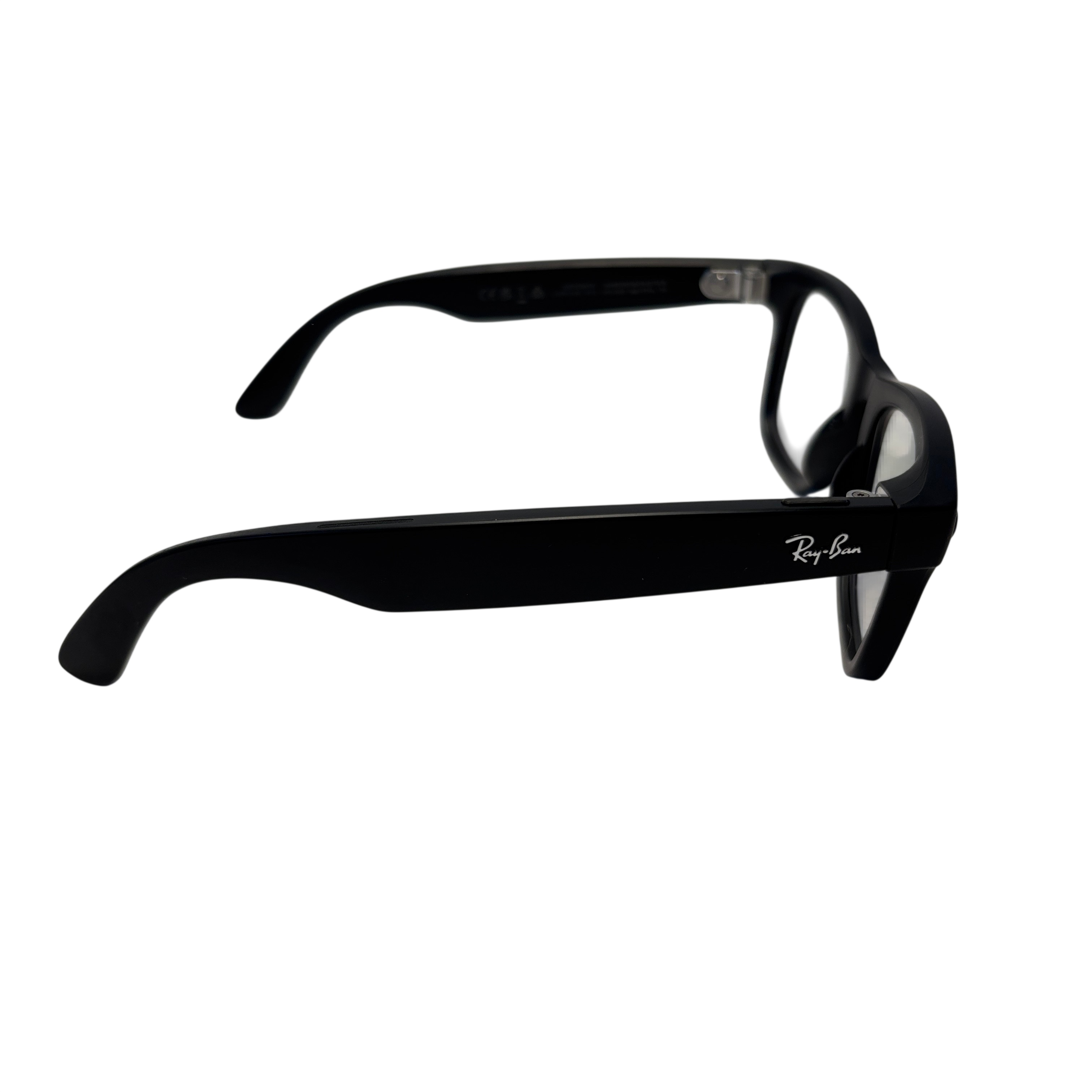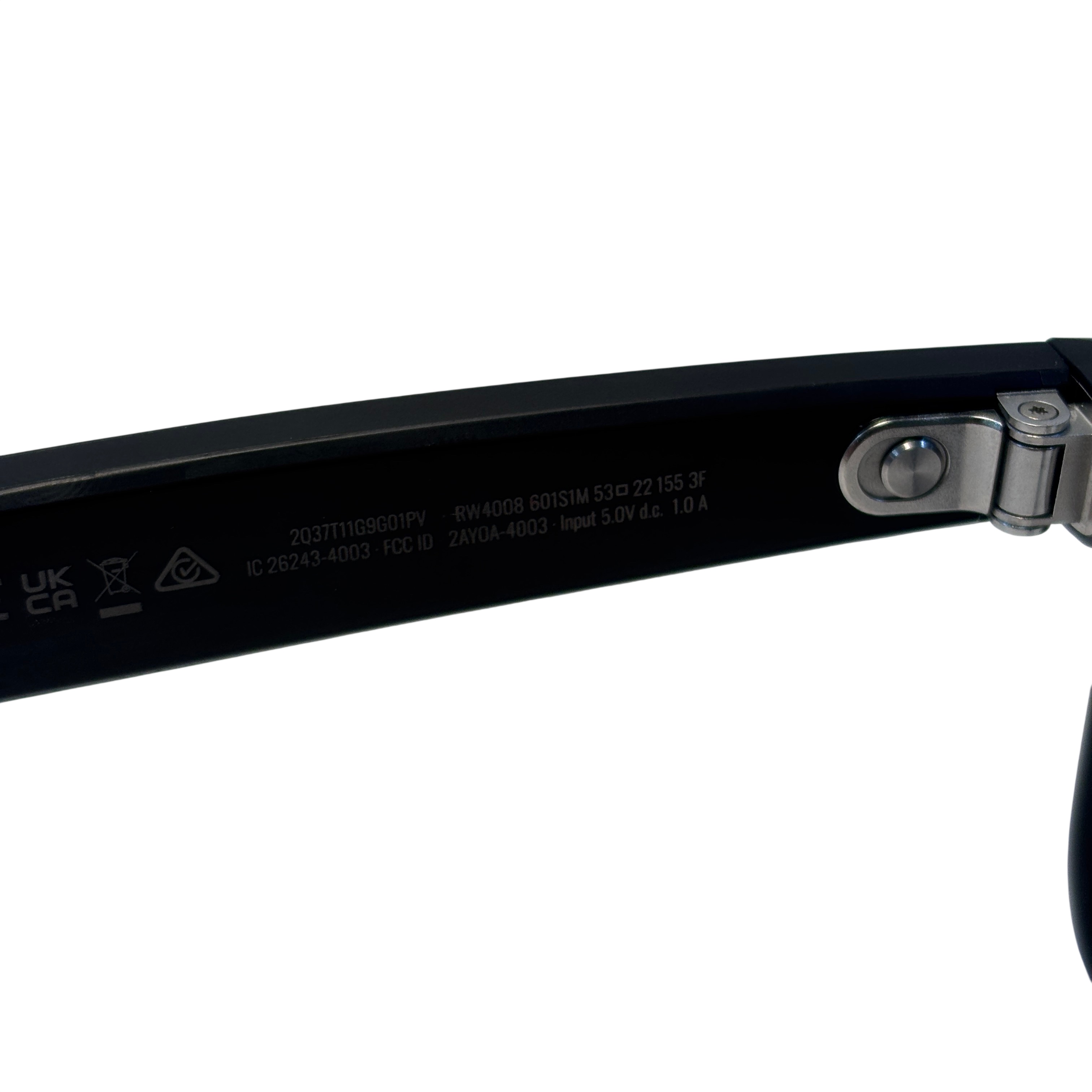 Ray-Ban Meta RW4008 Smart Glasses combine the iconic Wayfarer design with advanced smart technology. Featuring a black plastic frame and clear lenses, these glasses provide a stylish yet functional wearable experience. The model RW4008 includes integrated electronics powered via 5V DC input, with FCC and IC certification. Included is a premium Ray-Ban protective case for safe storage. These smart glasses are perfect for users seeking classic eyewear with modern connectivity features.