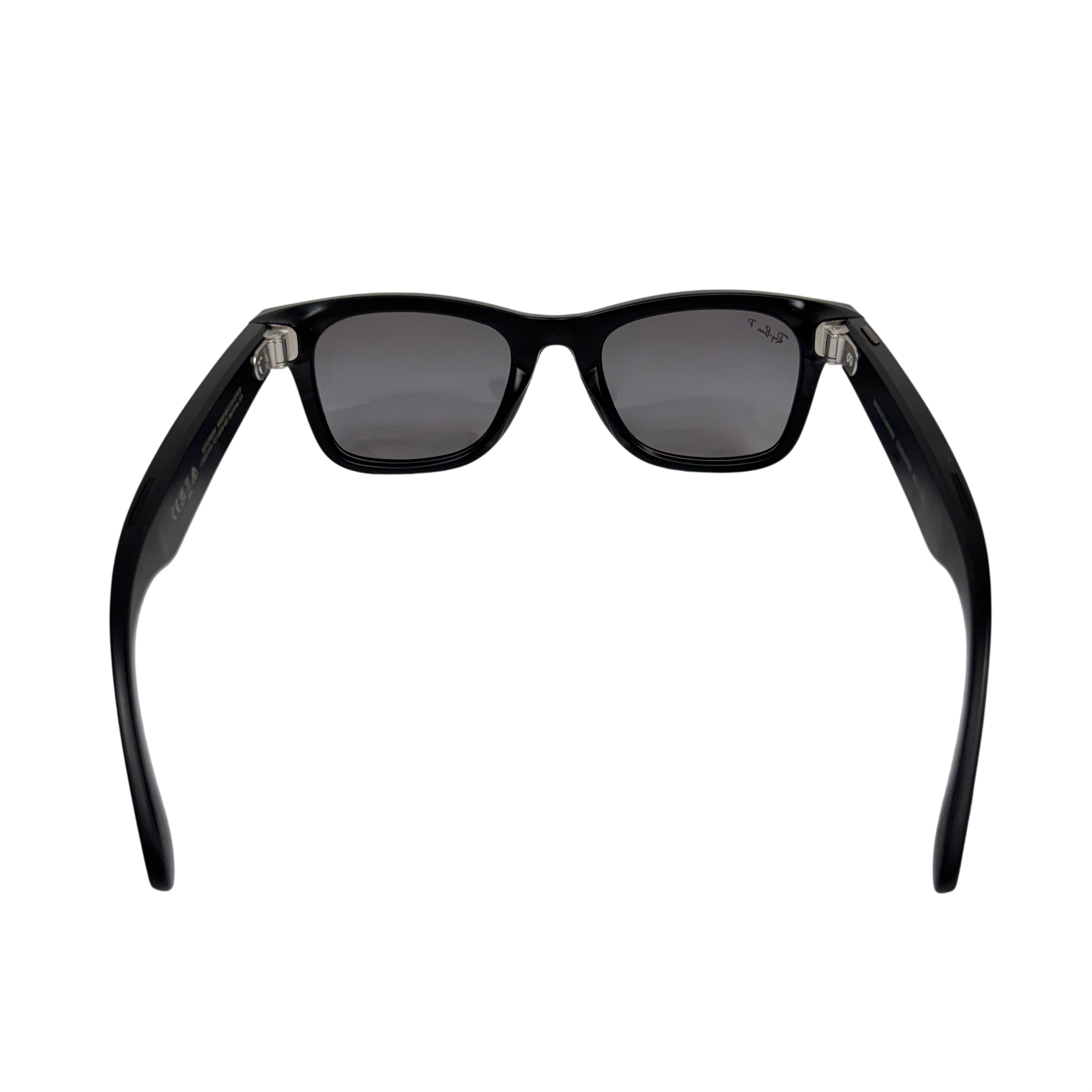 These Ray-Ban RW4008 Meta Wayfarer Polarized Sunglasses feature a timeless black plastic frame paired with gray polarized lenses that reduce glare and enhance visual clarity. The lightweight design ensures comfortable all-day wear, while the included brown Ray-Ban case offers convenient protection and storage. These sunglasses combine classic style with modern lens technology, making them ideal for everyday use and outdoor activities.