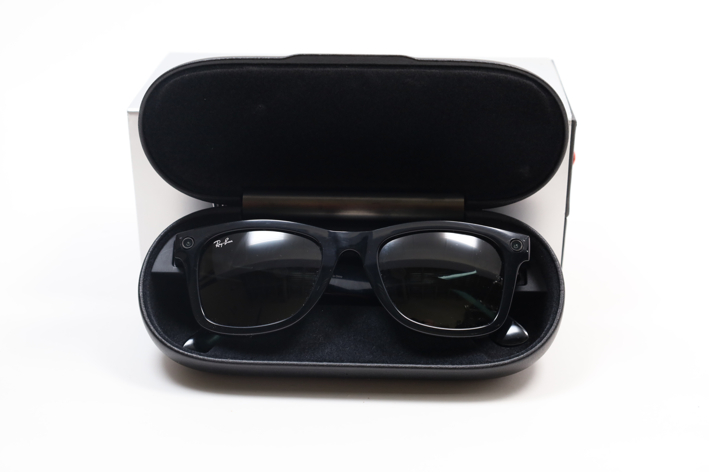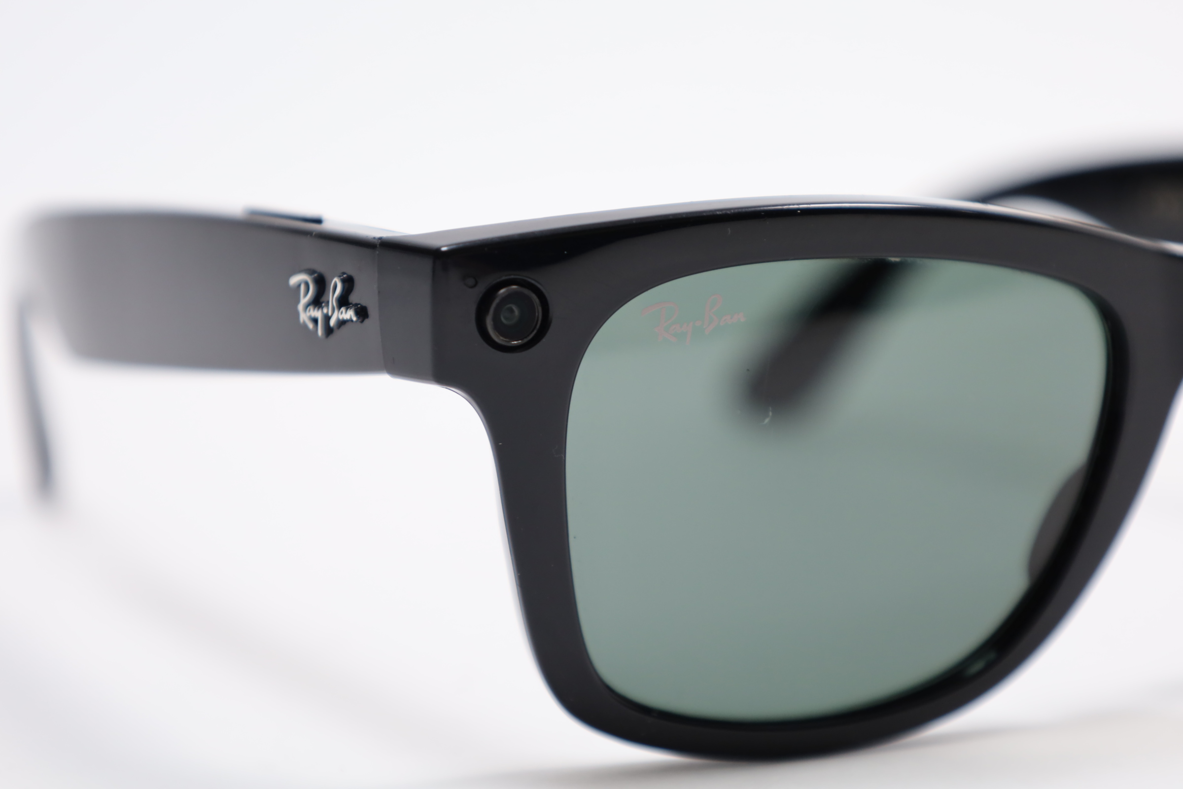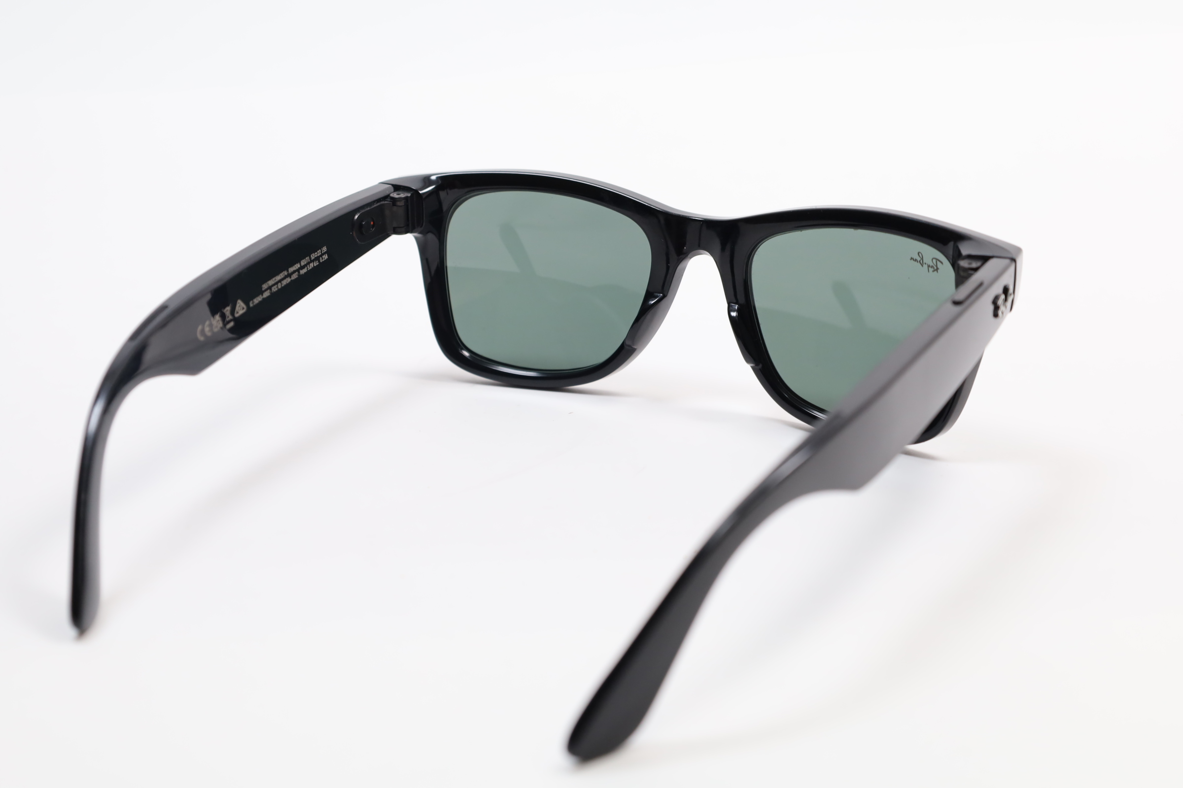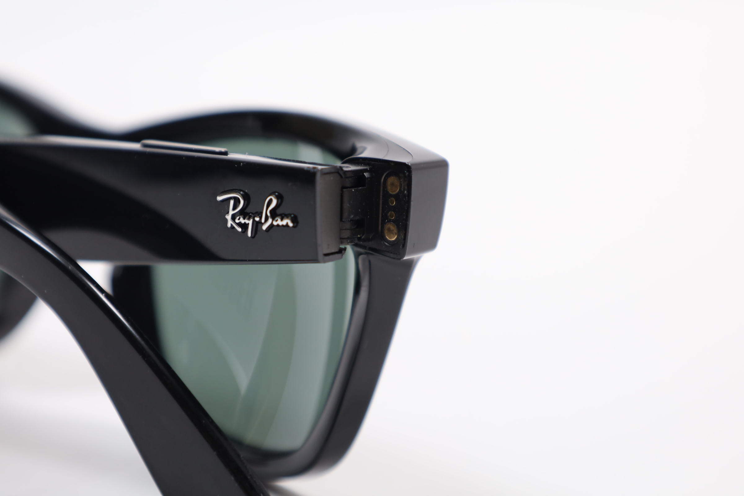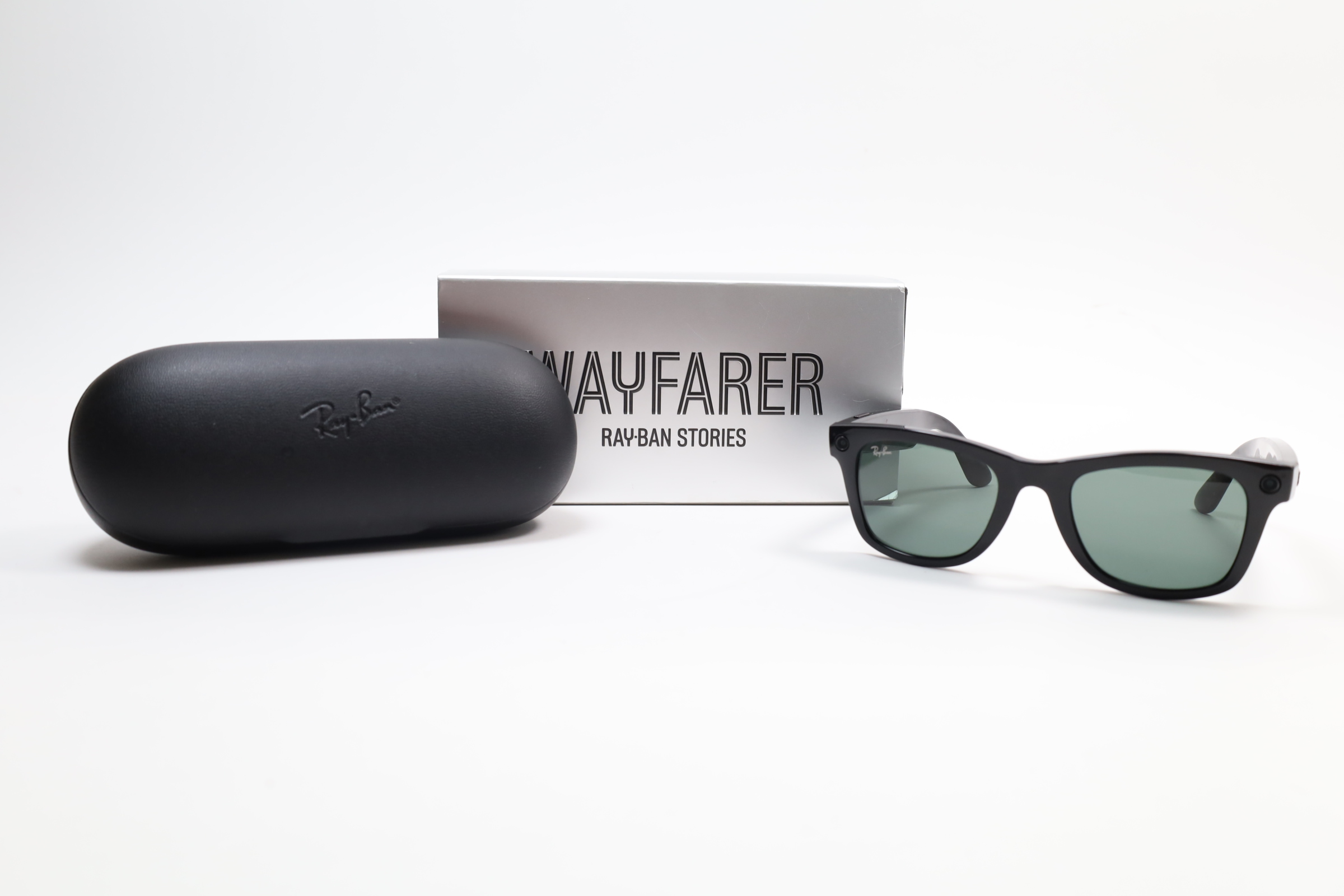 Introducing the Ray-Ban Stories Wayfarer Large RW4004 Smart Sunglasses, a modern twist on the classic Wayfarer design. These sunglasses feature G-15 green lenses and wearable technology that allows you to capture photos and videos, make phone calls, and listen to music. They offer glare protection, water resistance, smudge protection, and enhanced durability with a high-quality, scratch-resistant coating. The frame is made of plastic and the glasses come with a cleaning cloth and a hard case. Lens Width: 53 mm, Lens Height: 43.6 mm, Bridge Width: 22 mm, SportRx Frame Width (SFW): 141 mm, Temple Arm Length: 155 mm. Experience the perfect blend of style and technology with these smart sunglasses.
