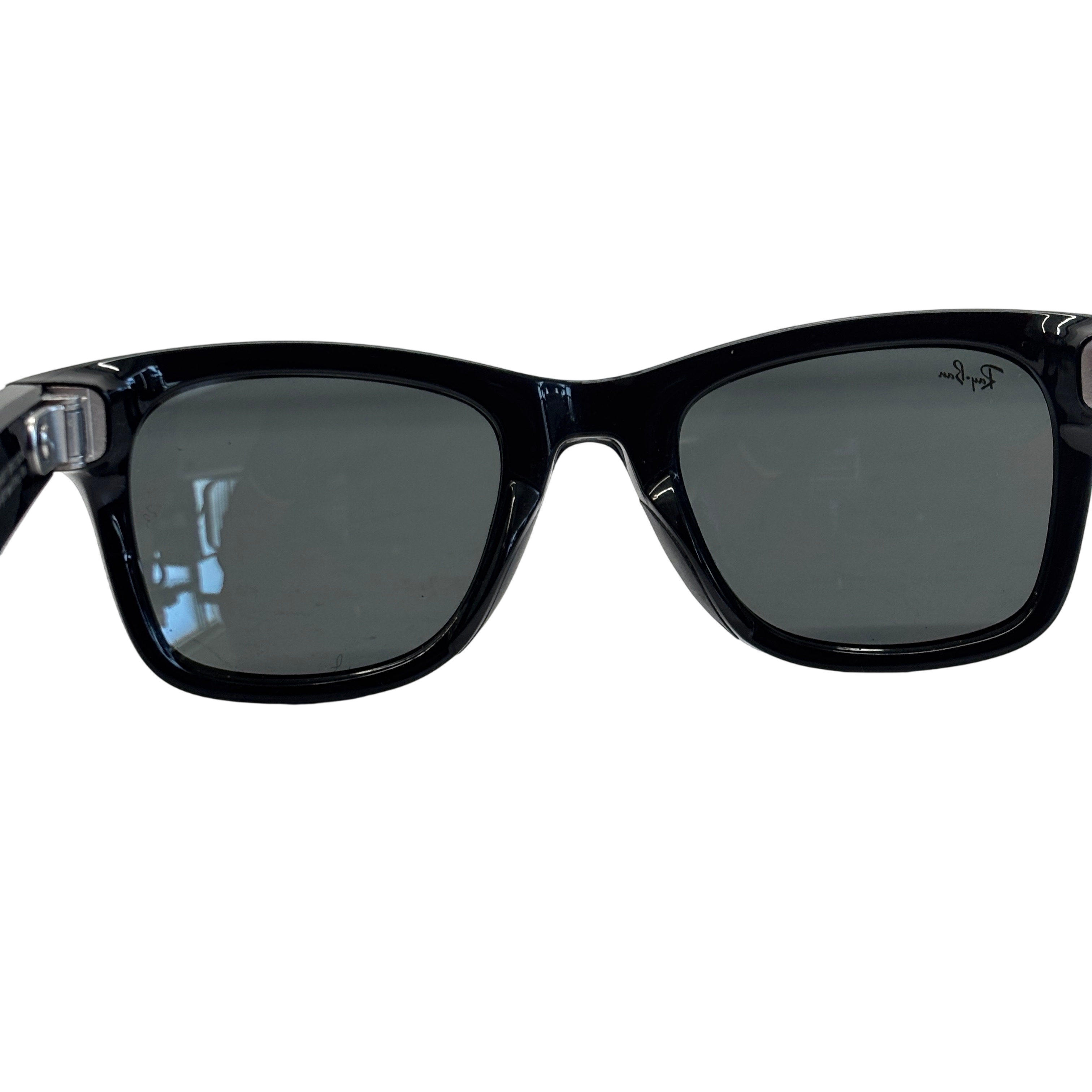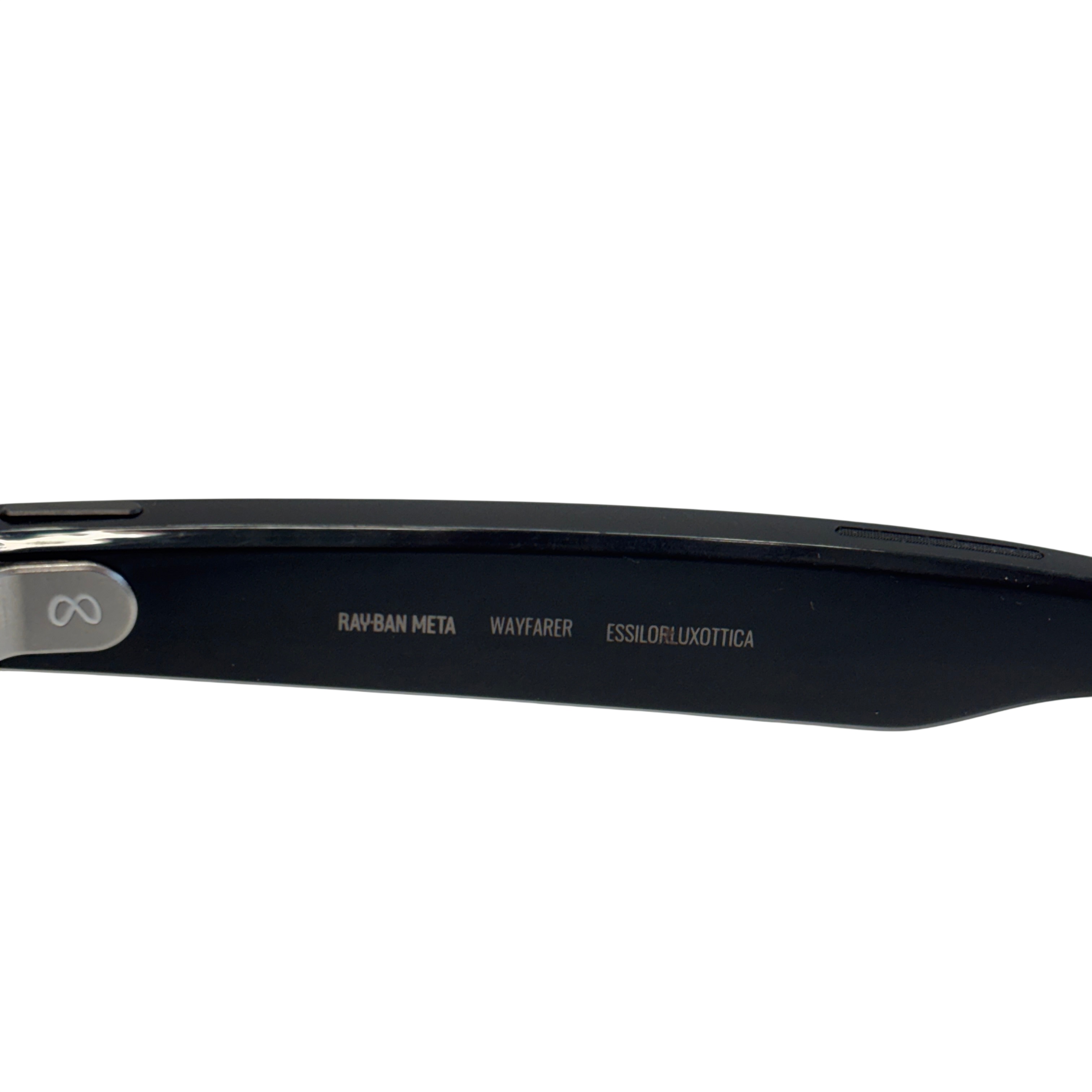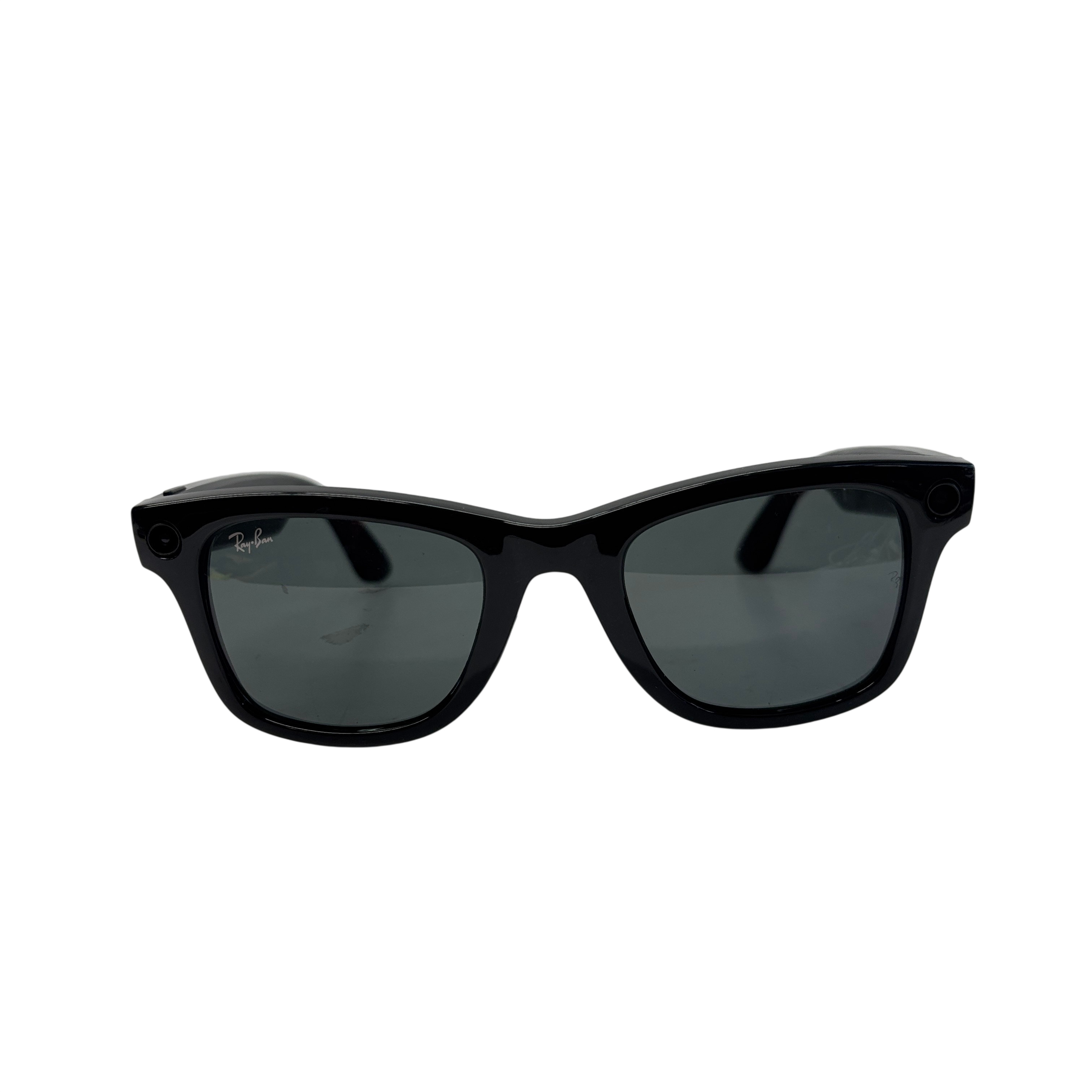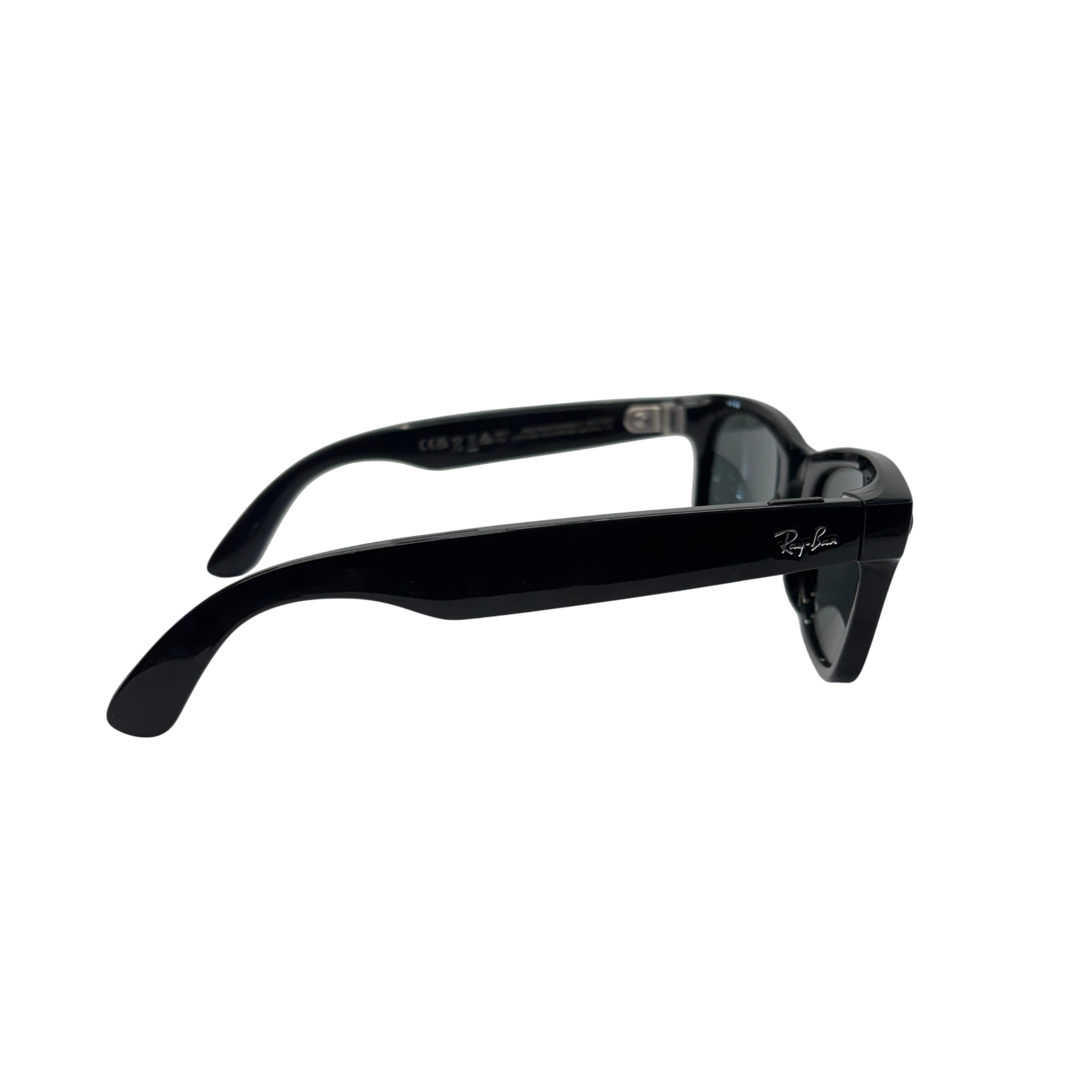 Rayban RW4006 META Wayfarer Smart Sunglasses combine classic Wayfarer style with modern smart technology. These black-framed sunglasses feature dark lenses and integrated electronics powered by a 5V DC input. The size measures 50mm lens width, 22mm bridge, and 150mm temple length, offering a comfortable fit. Included is a brown Rayban hard case for secure storage. Ideal for those seeking stylish eyewear with smart features in a trusted Rayban design.