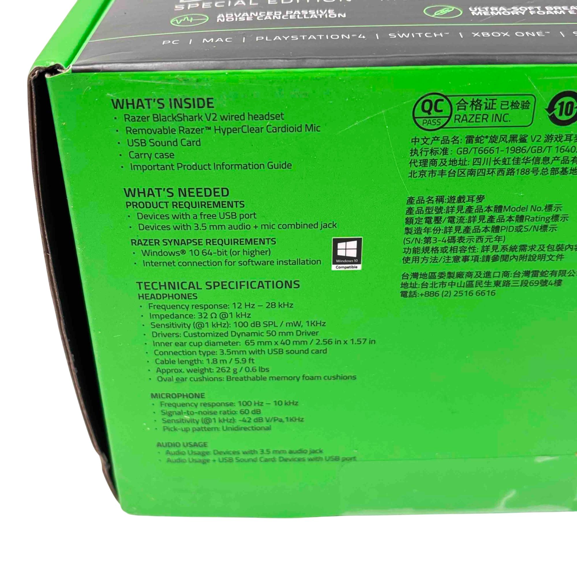 Experience immersive gaming audio with the Razer BlackShark V2 Special Edition Wired Gaming Headset. Equipped with THX Spatial Audio and HyperClear Cardioid Mic, this headset delivers crystal-clear sound and communication for esports enthusiasts. Its lightweight design and ultra-soft breathable memory foam ear cushions ensure maximum comfort during extended play sessions.