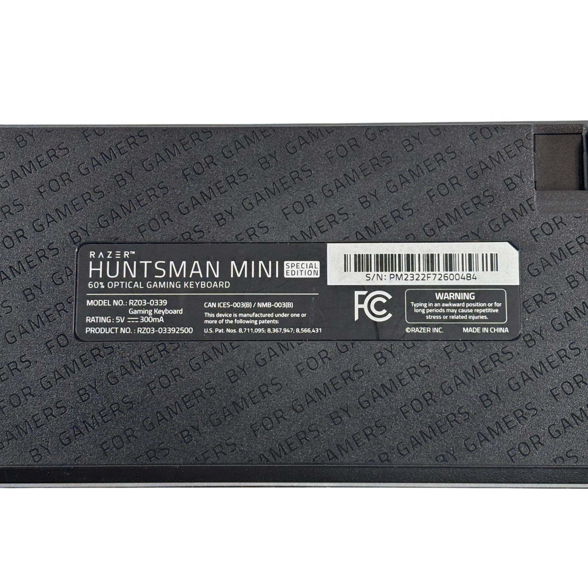 Razer Huntsman Mini Special Edition 60% optical gaming keyboard features fast optical switches for responsive keystrokes and durable double shot PBT keycaps. The compact layout saves desk space while remaining portable, with onboard memory for storing settings and a detachable USB-C cable for convenient setup and transport.