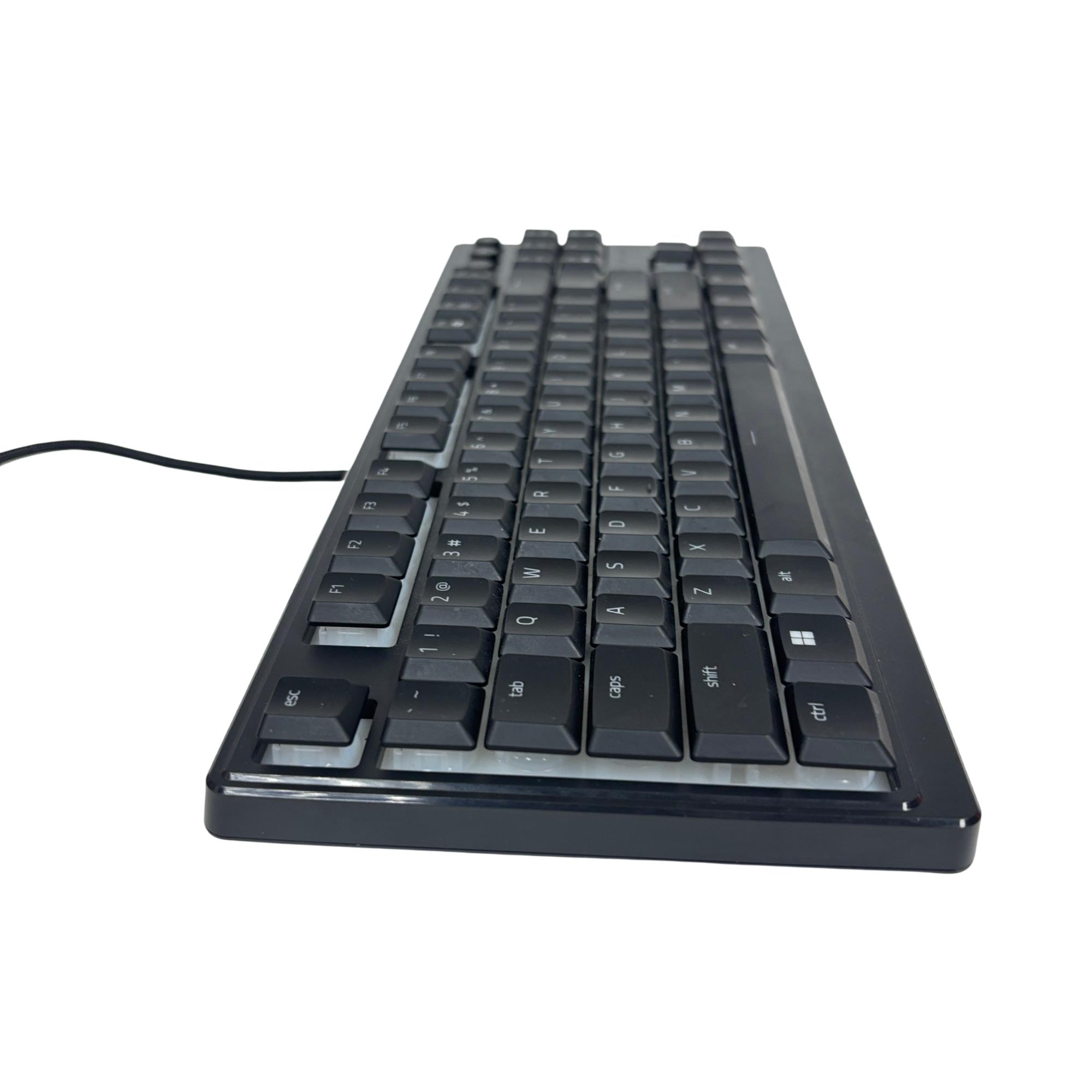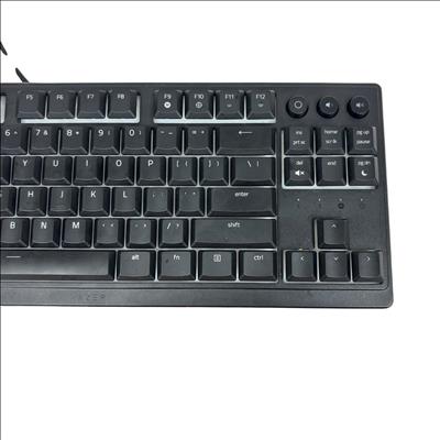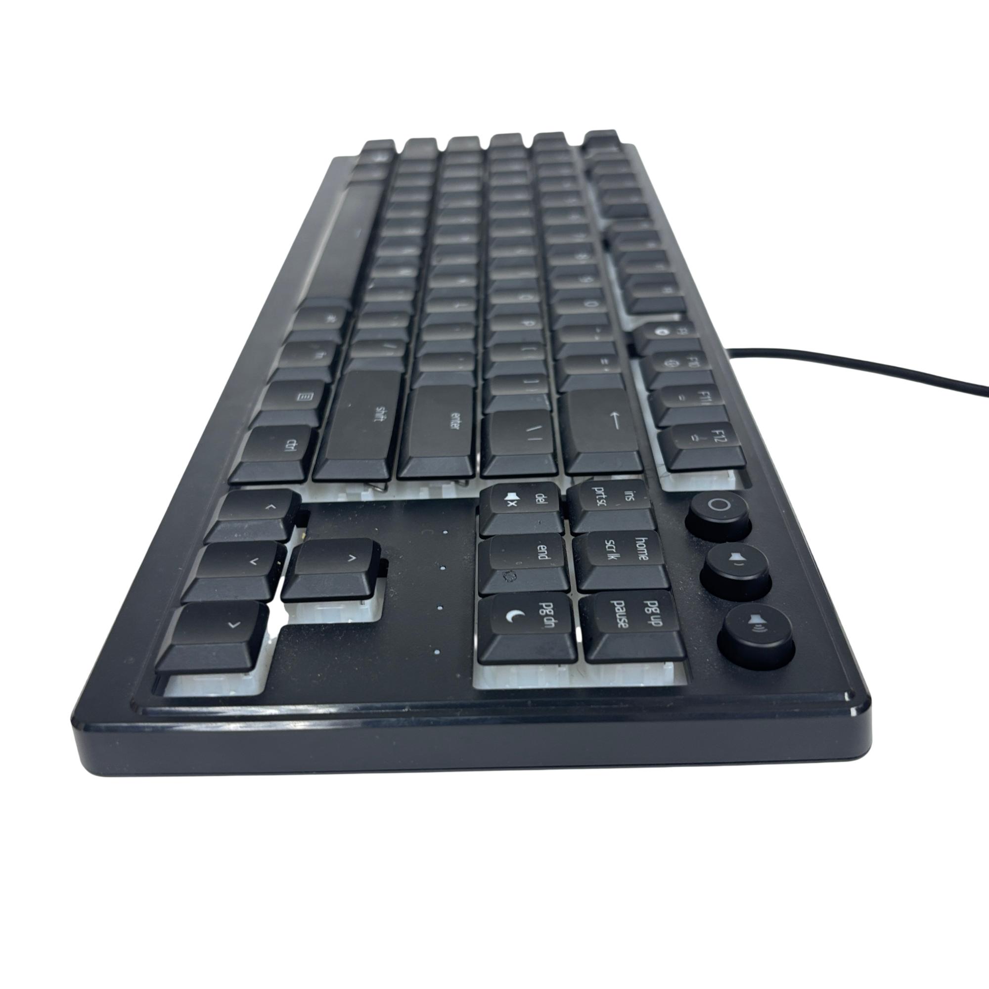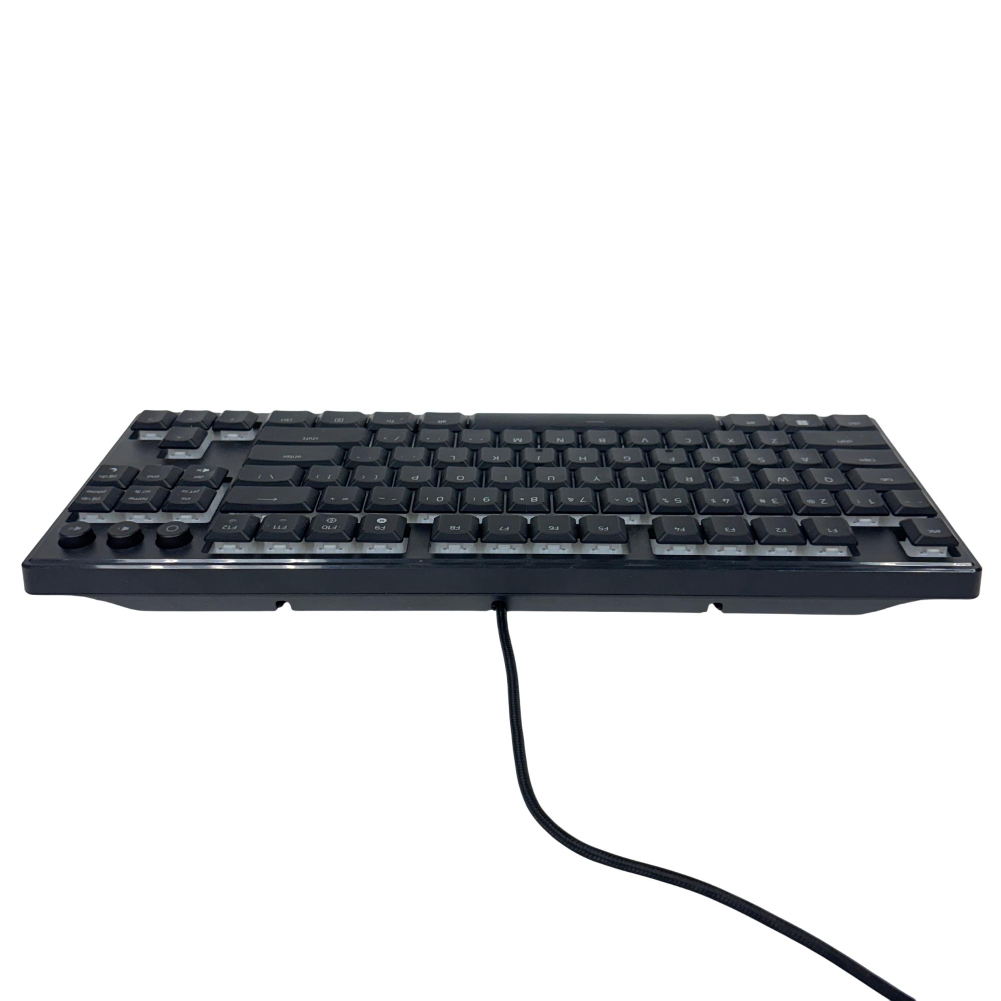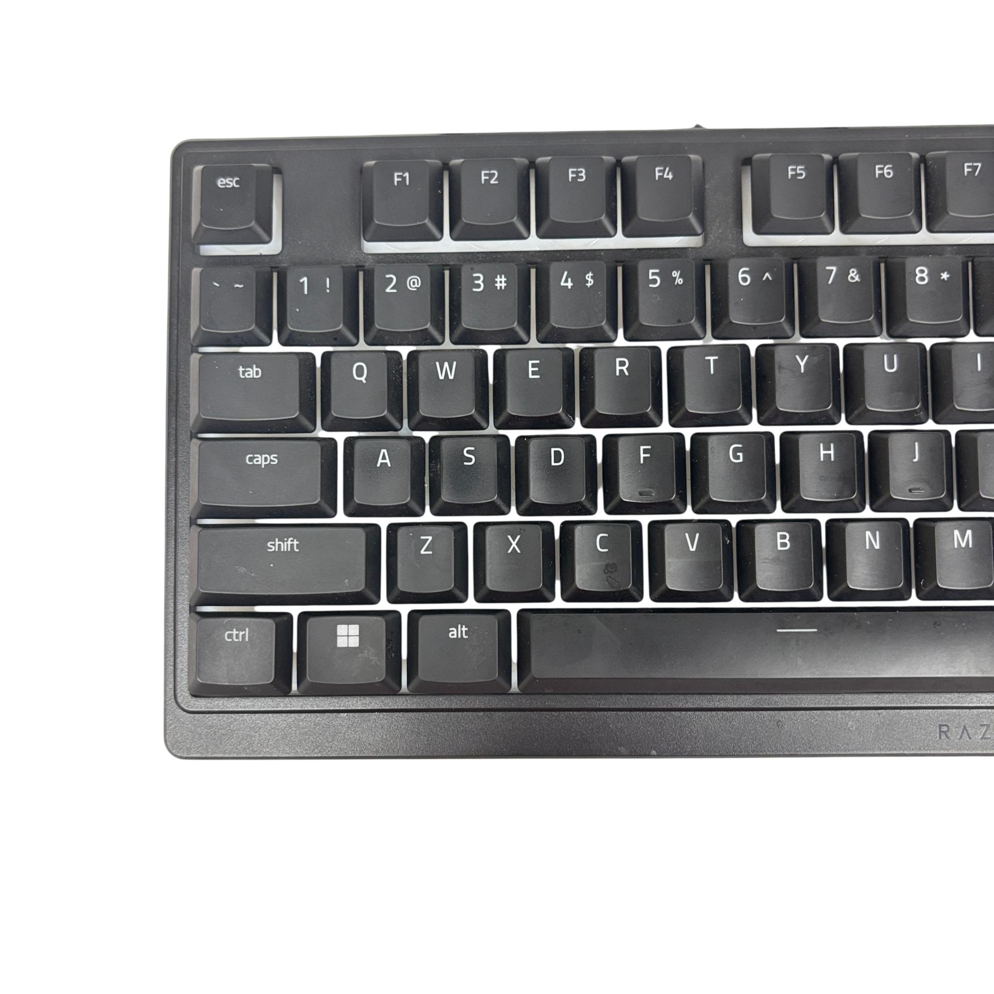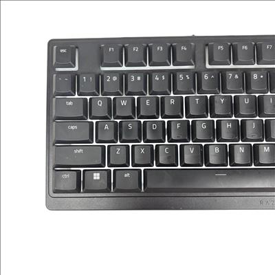 The Razer Ornata V3 TKL Mecha-Membrane Wired Gaming Keyboard features a tenkeyless design with low-profile keys that combine mechanical and membrane switch technologies for responsive and tactile feedback. Its wired connection ensures stable performance, while the sleek black finish with white lettering offers an ergonomic and durable gaming experience optimized for precision and speed.