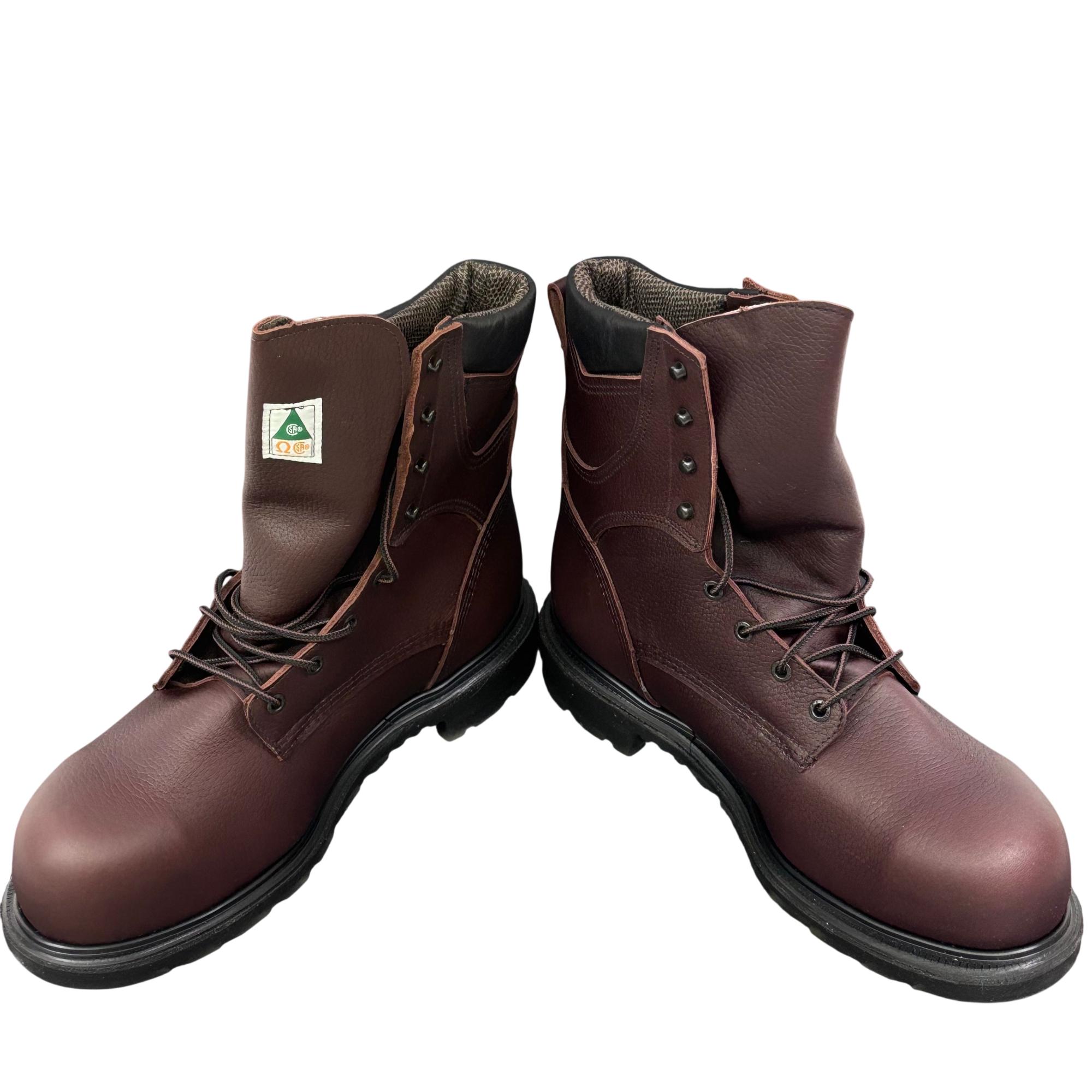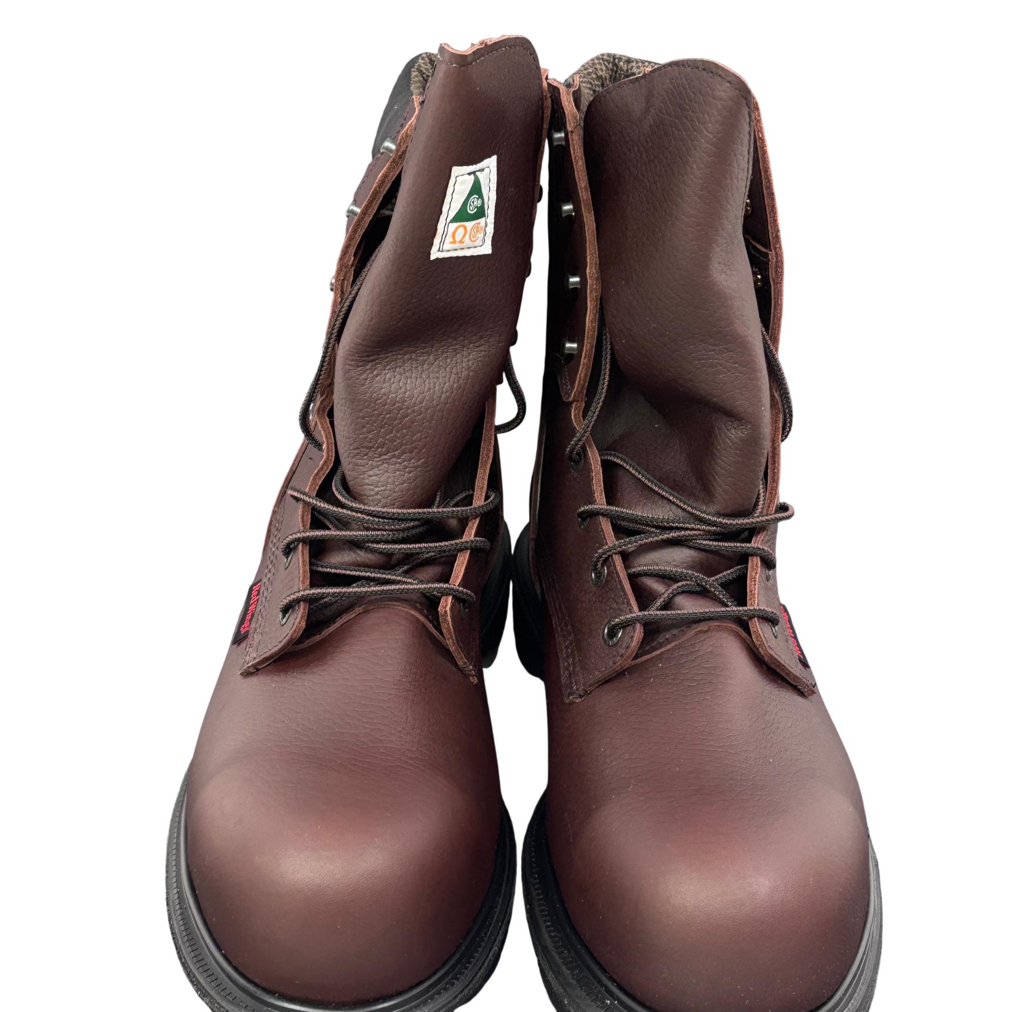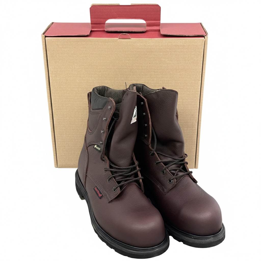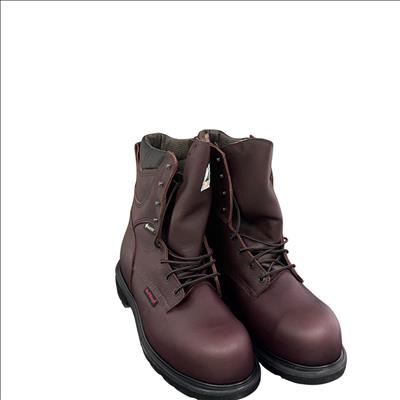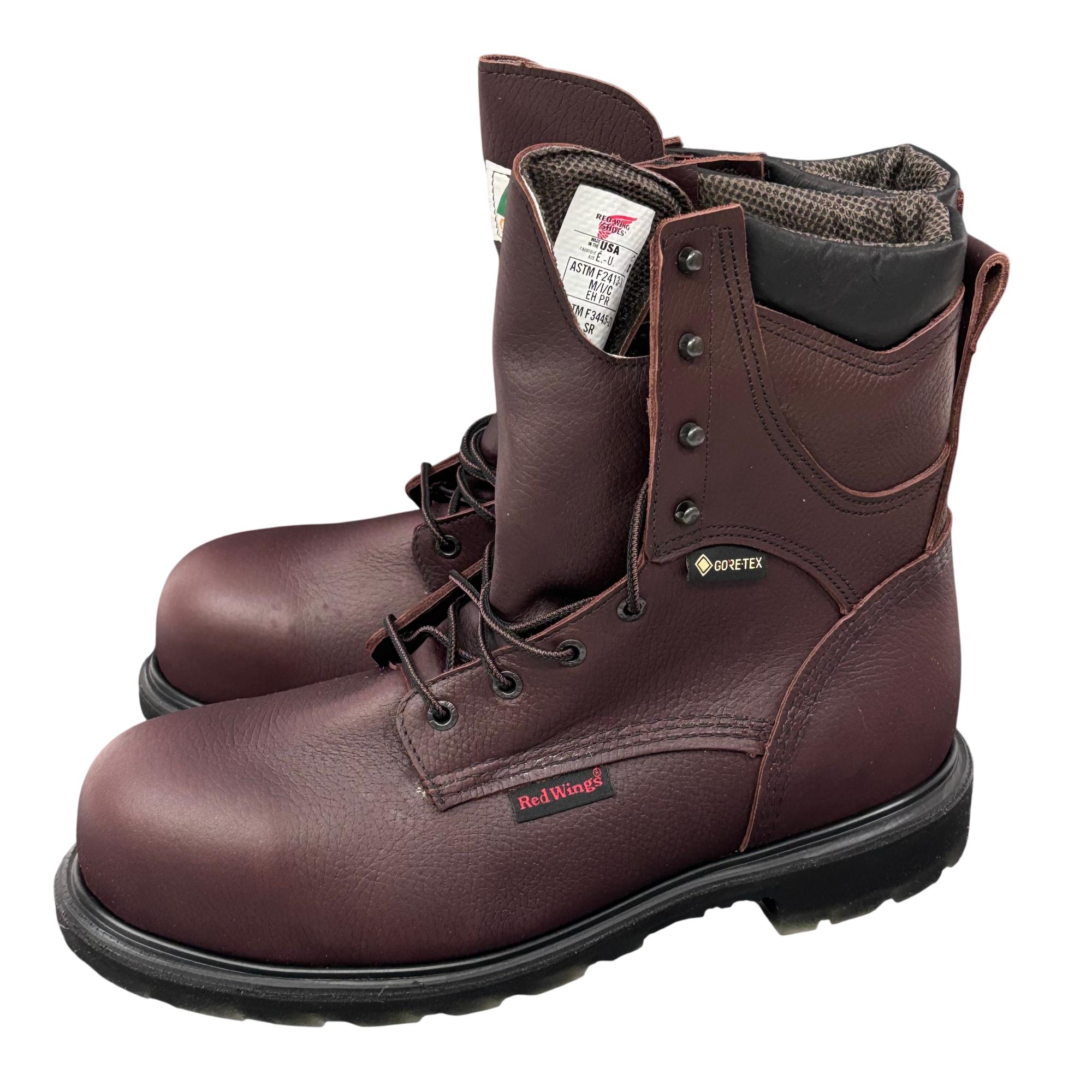 Red Wing Mens SuperSole 2.0 8-Inch Waterproof Work Boot 2412 features premium brown leather construction combined with GORE-TEX technology for reliable waterproof performance. Designed with a durable 8-inch height and a broad 11EE width, this work boot offers exceptional support and comfort suitable for demanding environments.