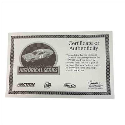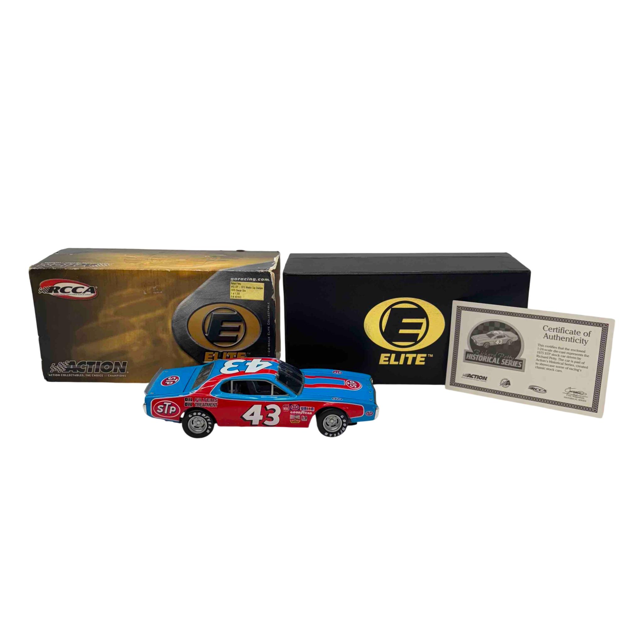 Own a piece of racing history with this highly detailed 1:24 scale die-cast model of Richard Pettys iconic 1975 STP Dodge Charger, produced by Action RCCA Elite. Featuring authentic race day graphics, official sponsor logos, and the legendary #43, this collectible comes with its original packaging and a certificate of authenticity, making it a must-have for NASCAR enthusiasts and serious collectors alike.