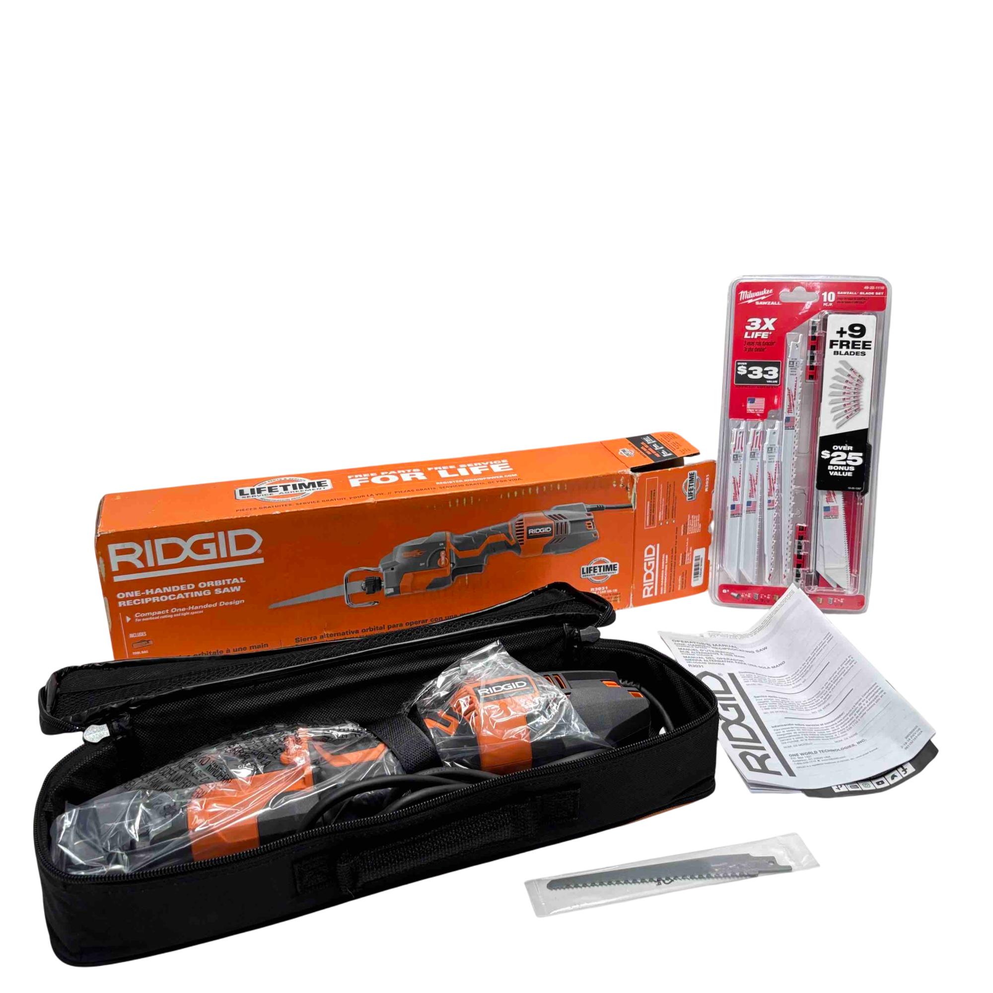 Experience ultimate control and power with the RIDGID R3031 One-Handed Orbital Reciprocating Saw, designed for convenience and performance in tight spaces. This bundle includes the original carrying case, owners manual, and a bonus Milwaukee SAWZALL Blade Set (10-pc, 3X Life), making it ideal for professionals and DIYers ready to take on demanding cutting tasks. Take advantage of RIDGIDs renowned durability and the added value of extra saw blades for a complete cutting solution.